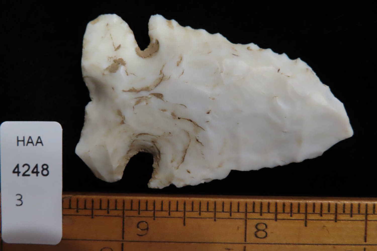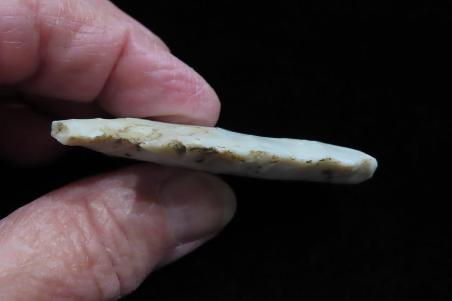 2 5/16″ Thebes made from Burlington flint found by Brandon Hunt in Greene Co, Illinois.