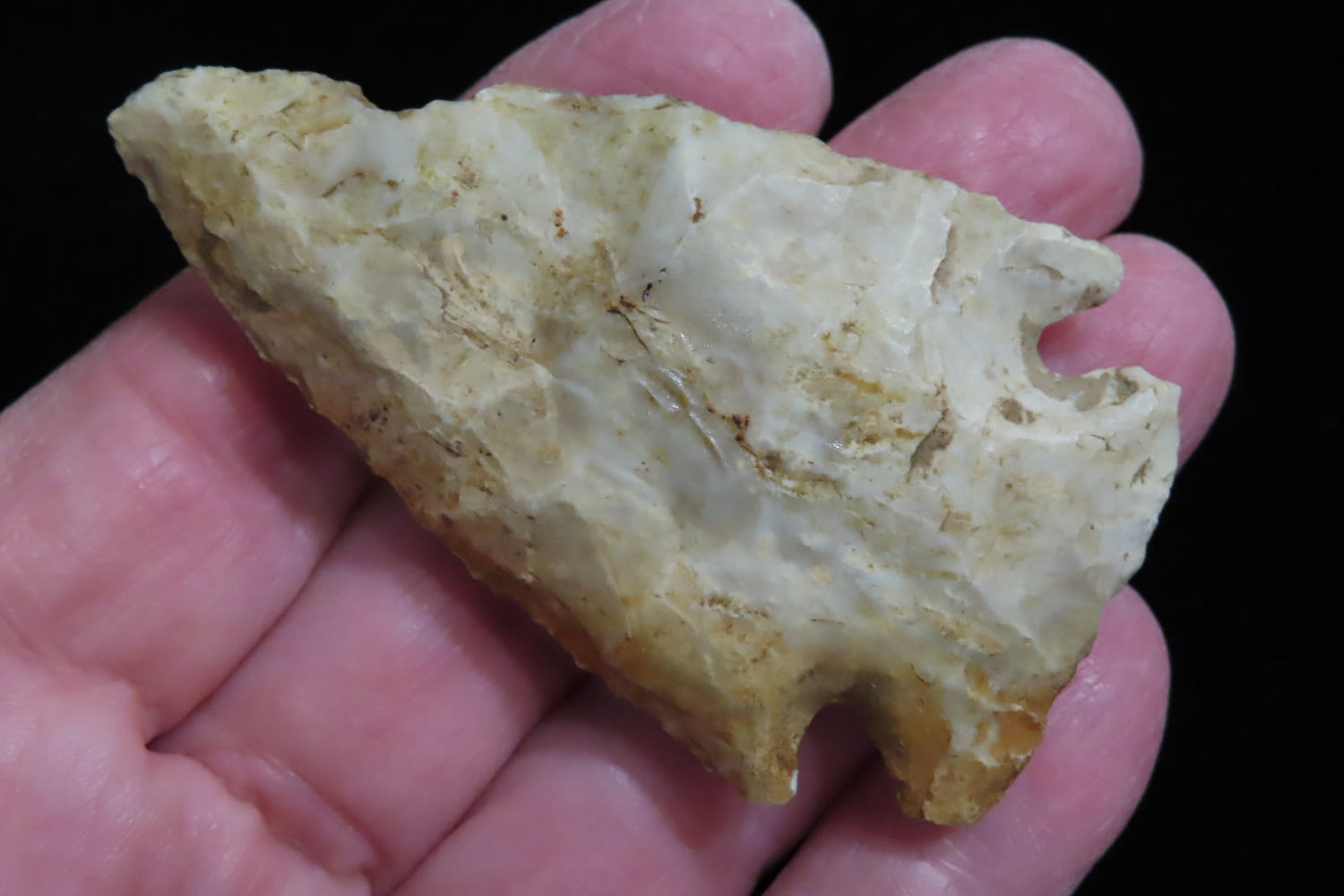2 1/2″ Kirk Corner Notched found by Brandon Hunt in Greene Co, Illinois.