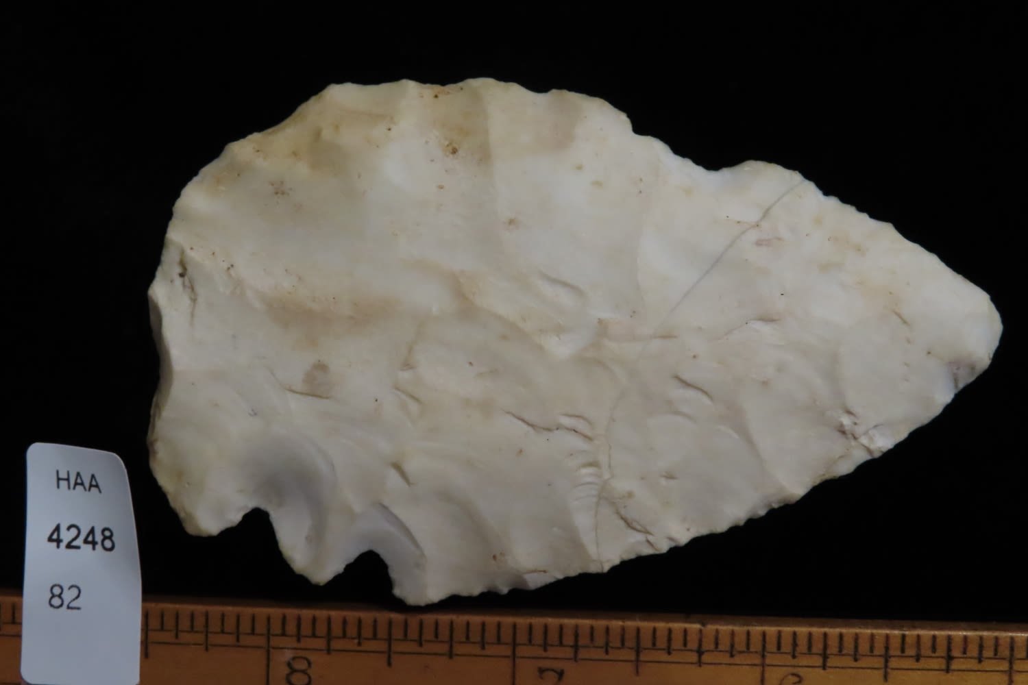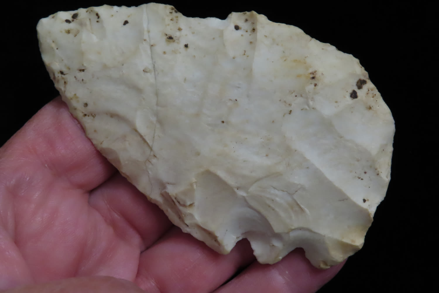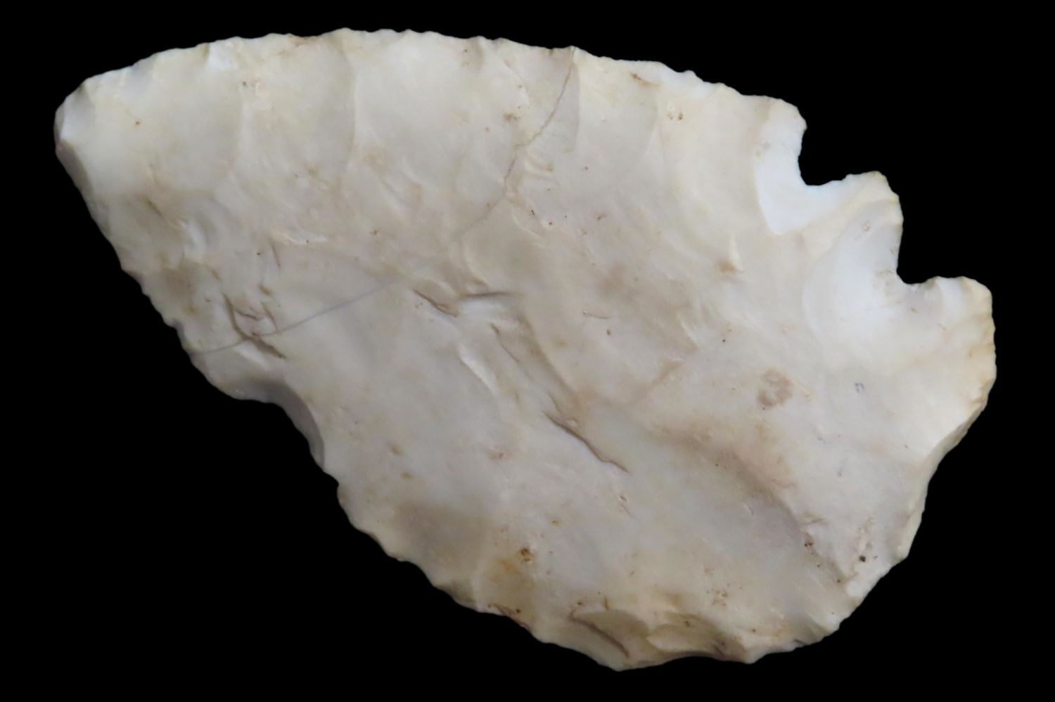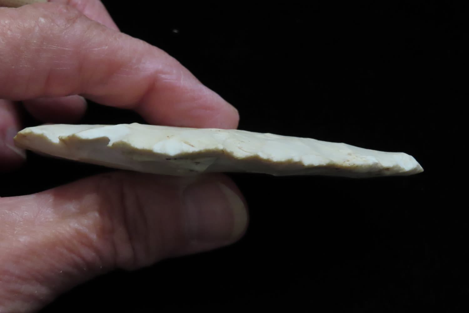 3 1/2″ Northblade made of White Burlington Flint found in Greene Co, Illinois.