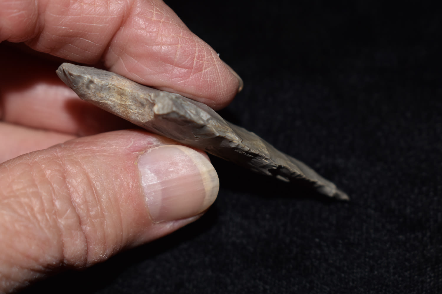 2 3/8" Dickson made from hornstone and found in the Midwest.