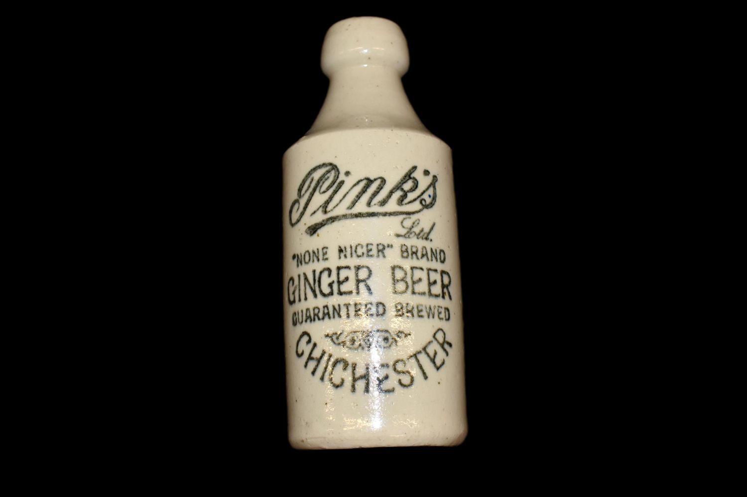 7″ Salt Glazed Antique Pink’s Ginger Beer Bottle.