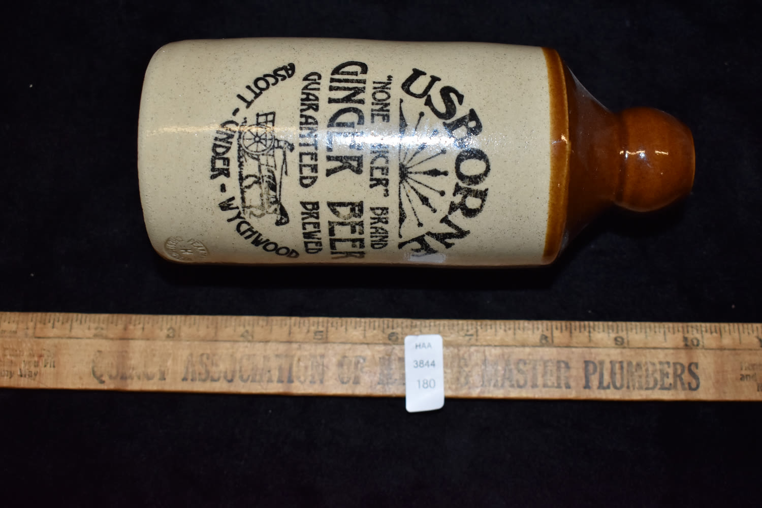 6 1/2″ Usborne in Ascott-Under-Wychwood “None Nicer” Brand Guaranteed Brewed Ginger Beer Salt Glazed Bottle No Chips or Cracks, Cork pushed inside bottle