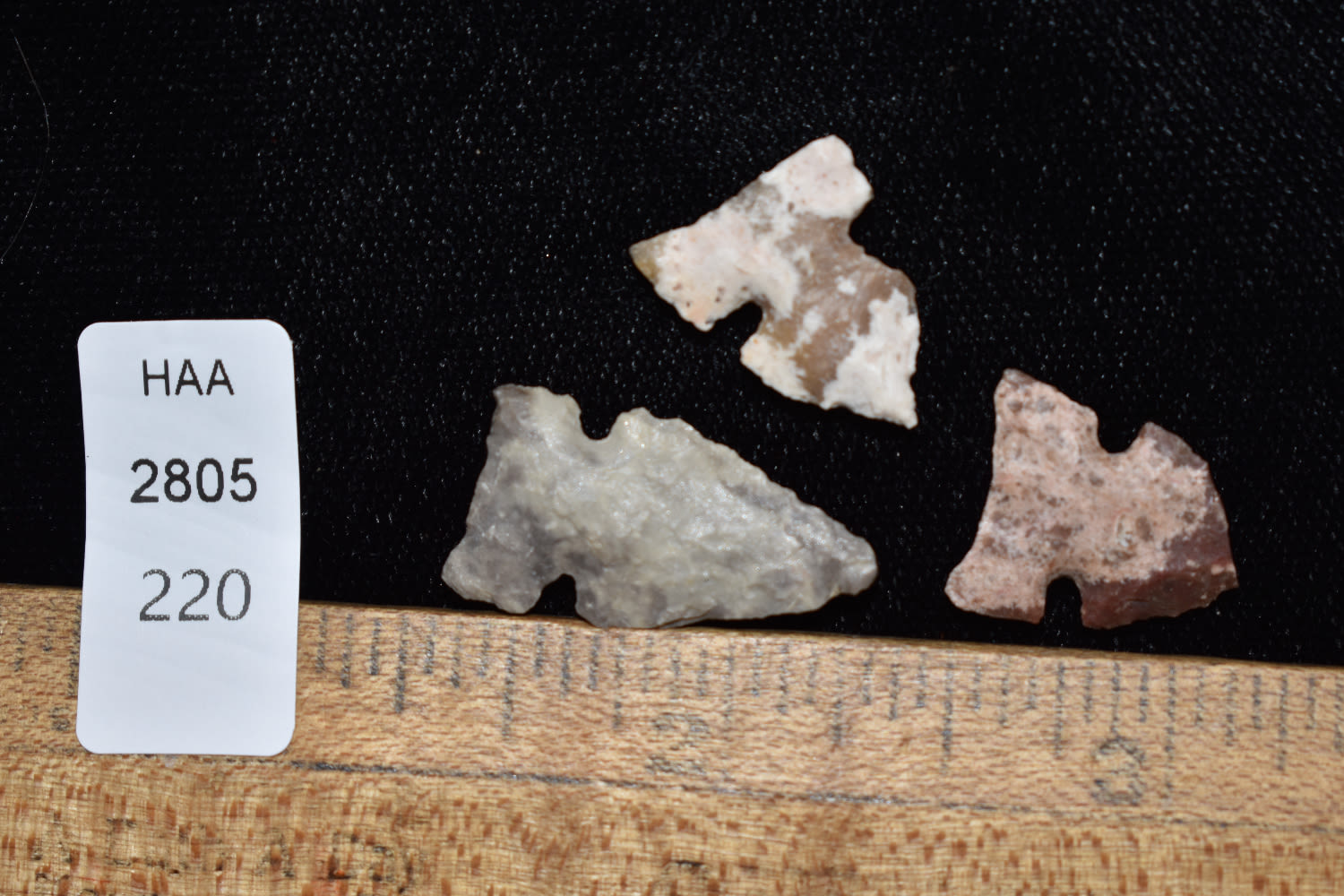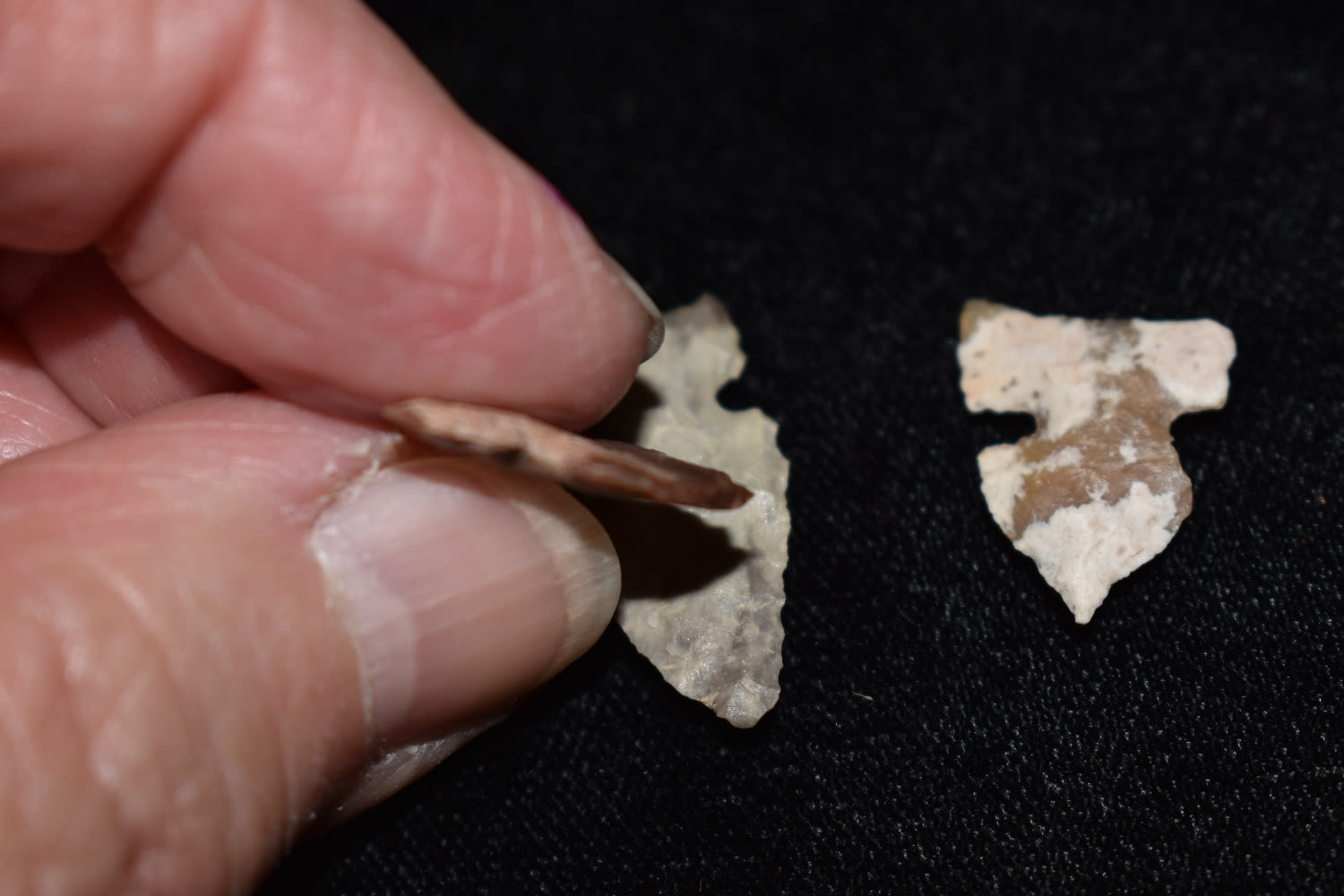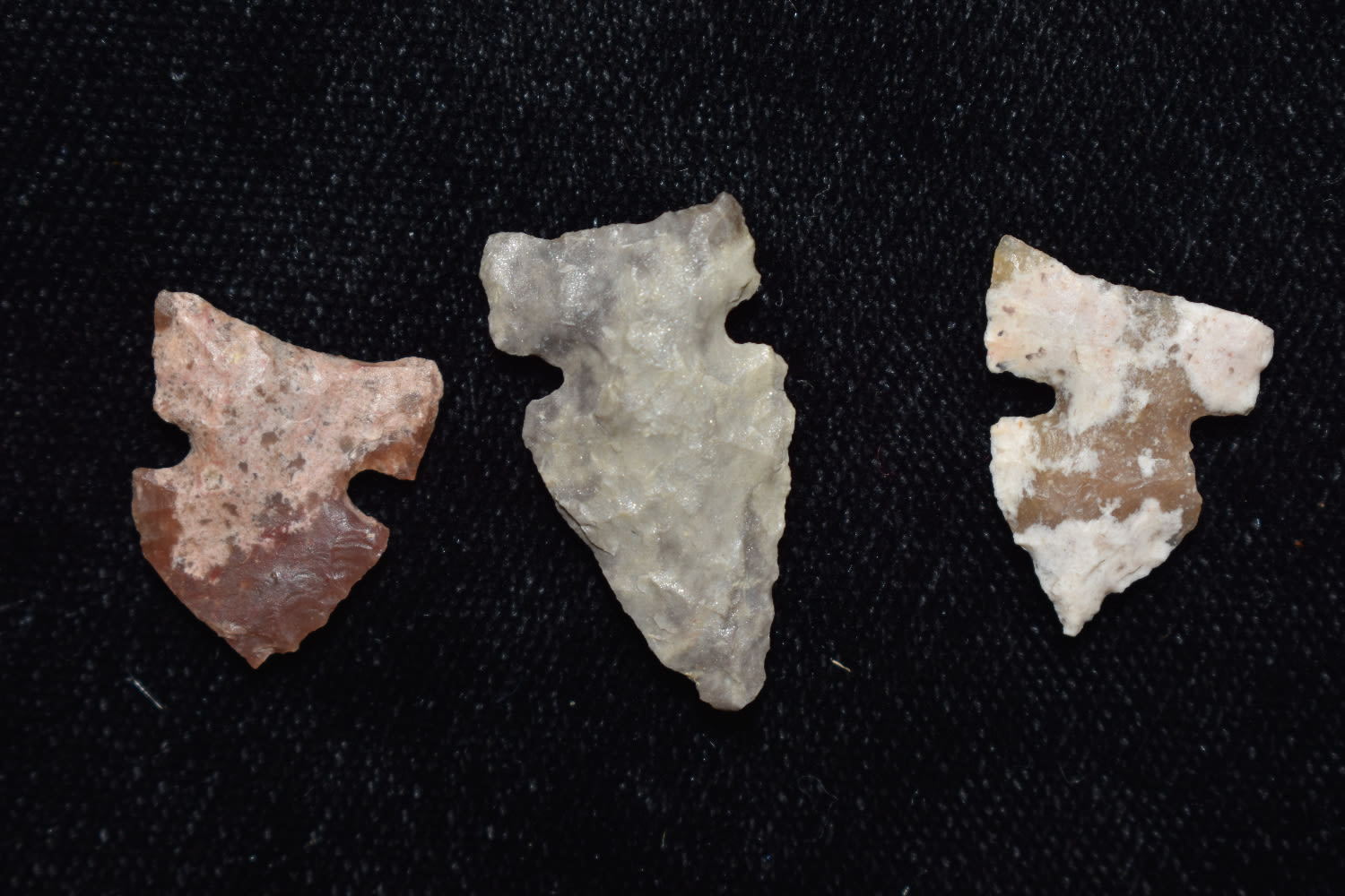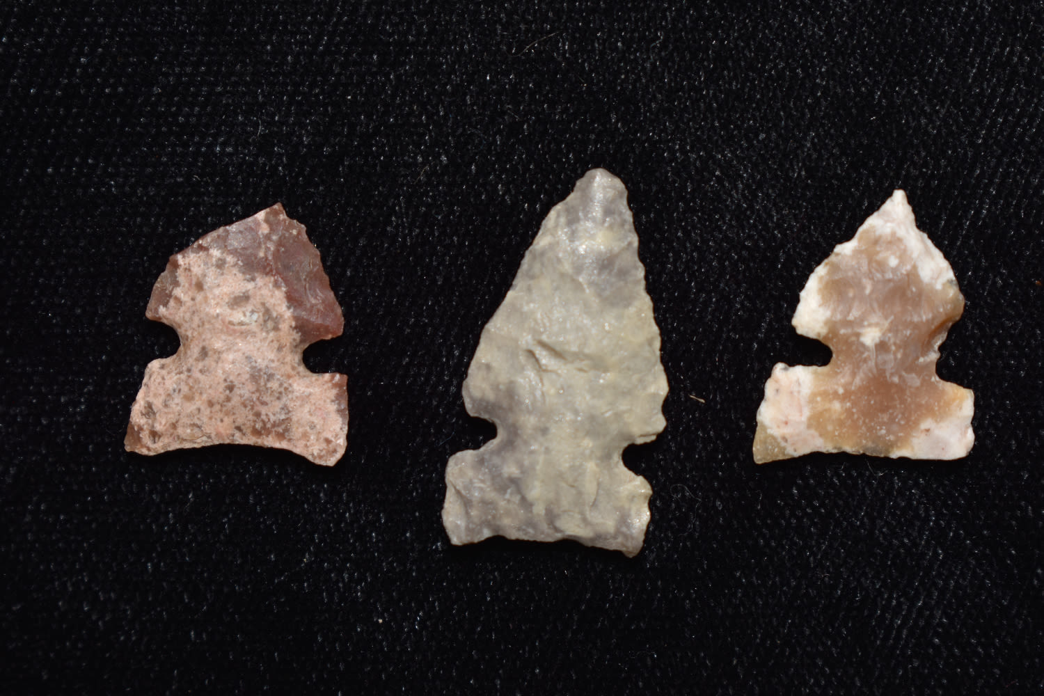 Grouping of 3 Bird Points found in Sully Co, South Dakota. Ex. Ernie Sid Collection.