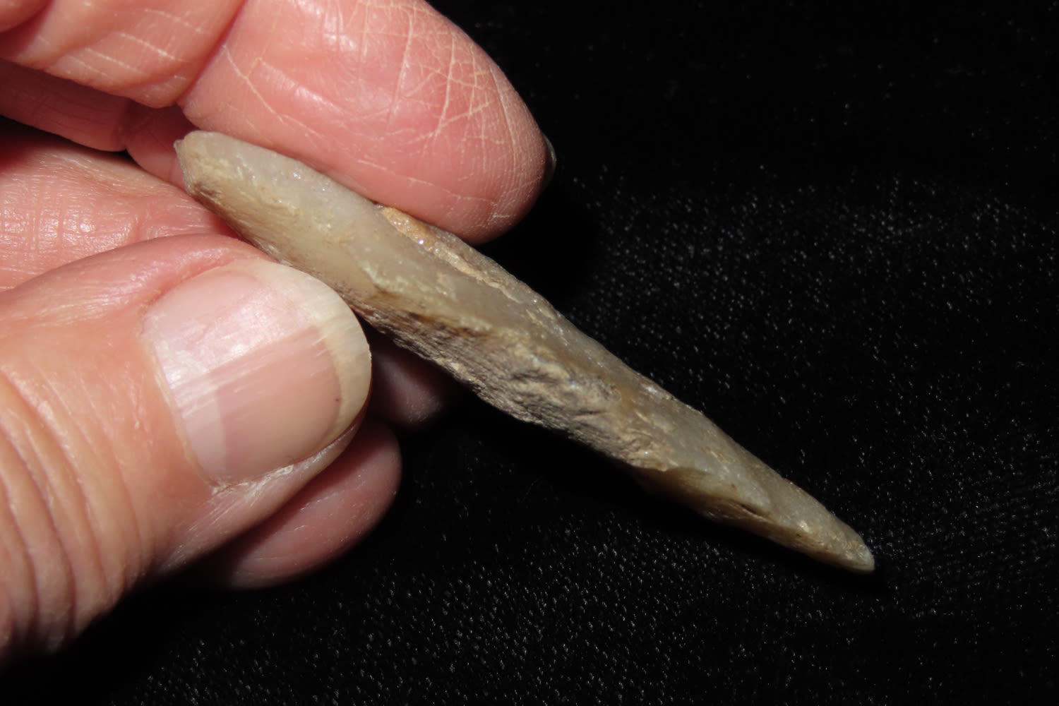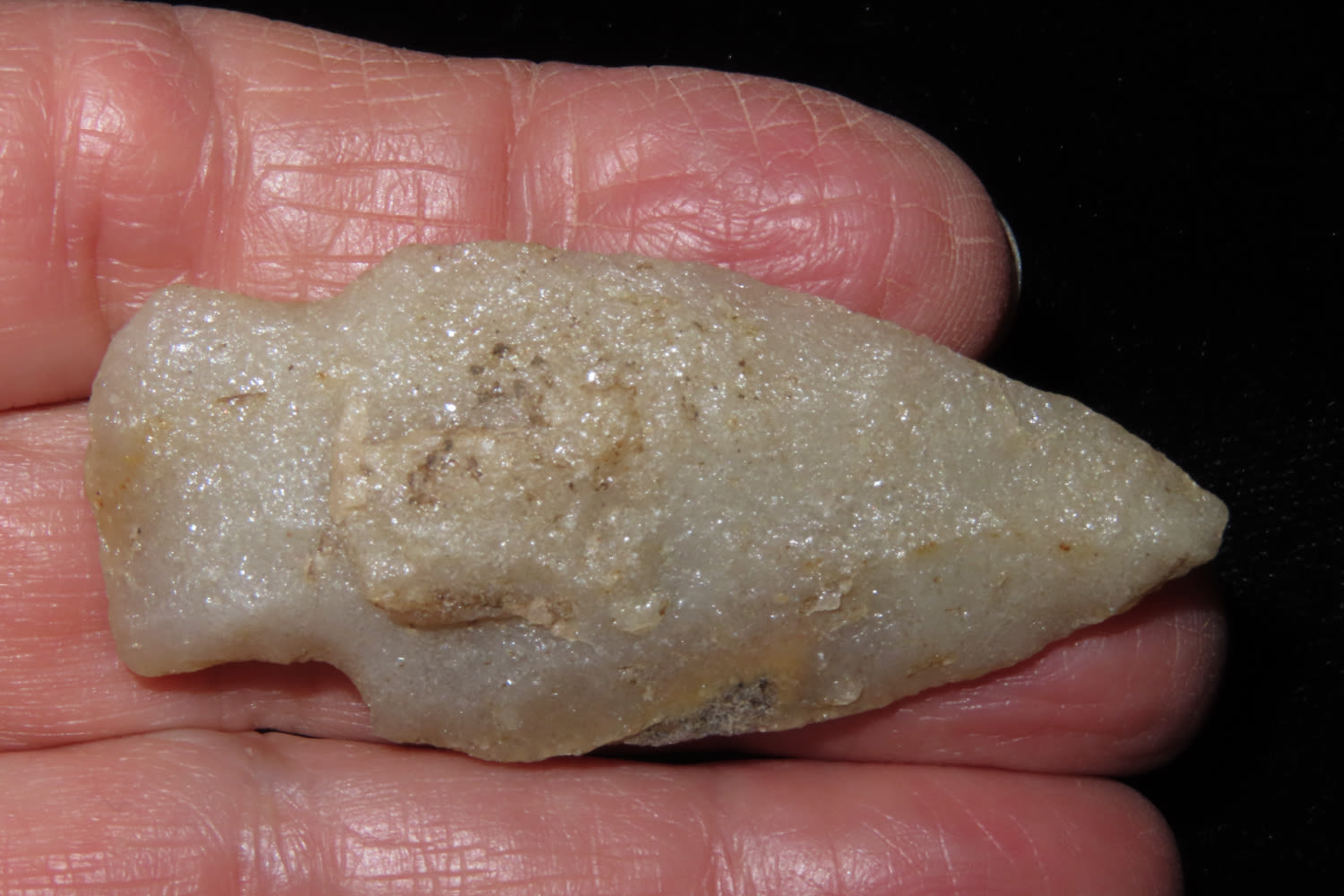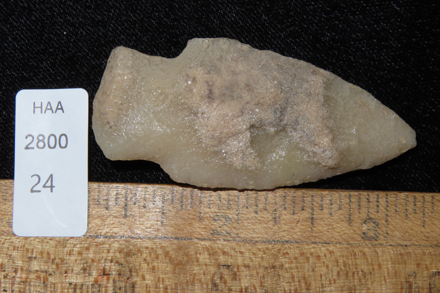 2 1/8" Stone Squared Stem point made of Hixton found in Wisconsin.