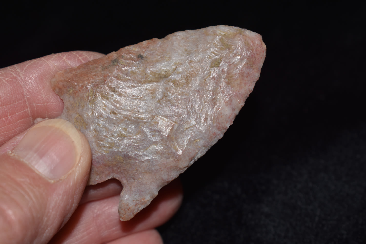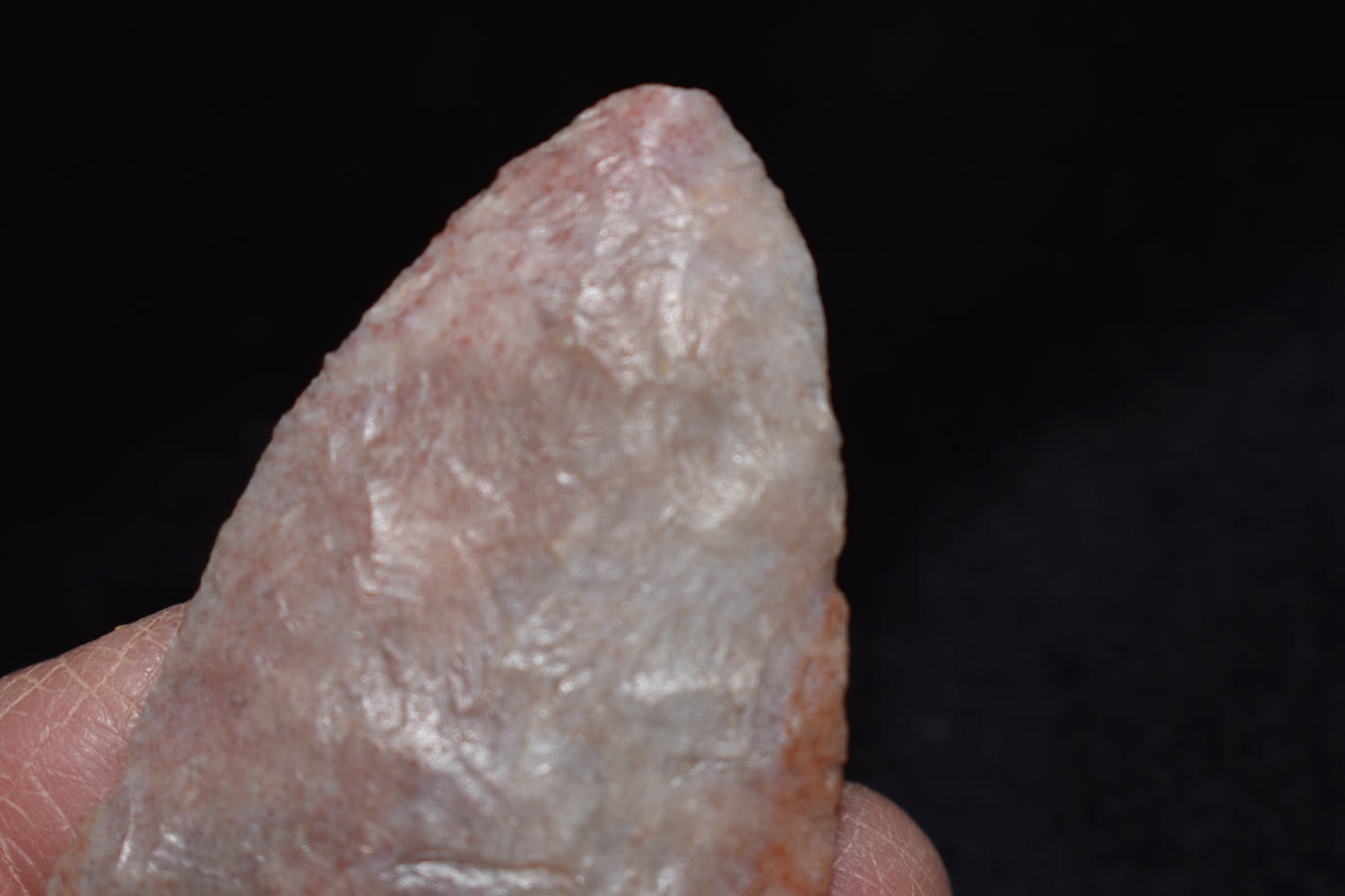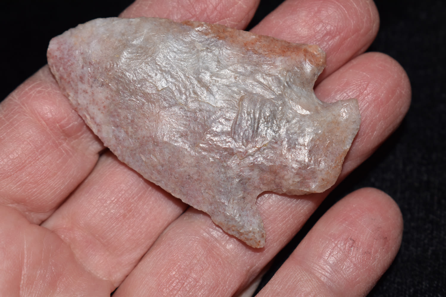 2 1/4" Hopewell point with creamy pink color found in Macon Co, Missouri.