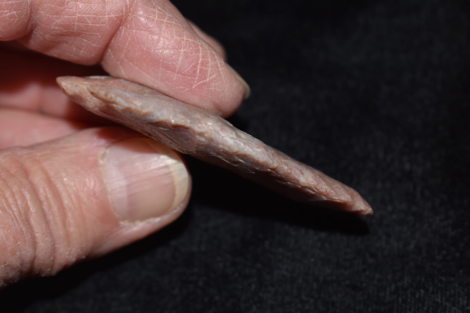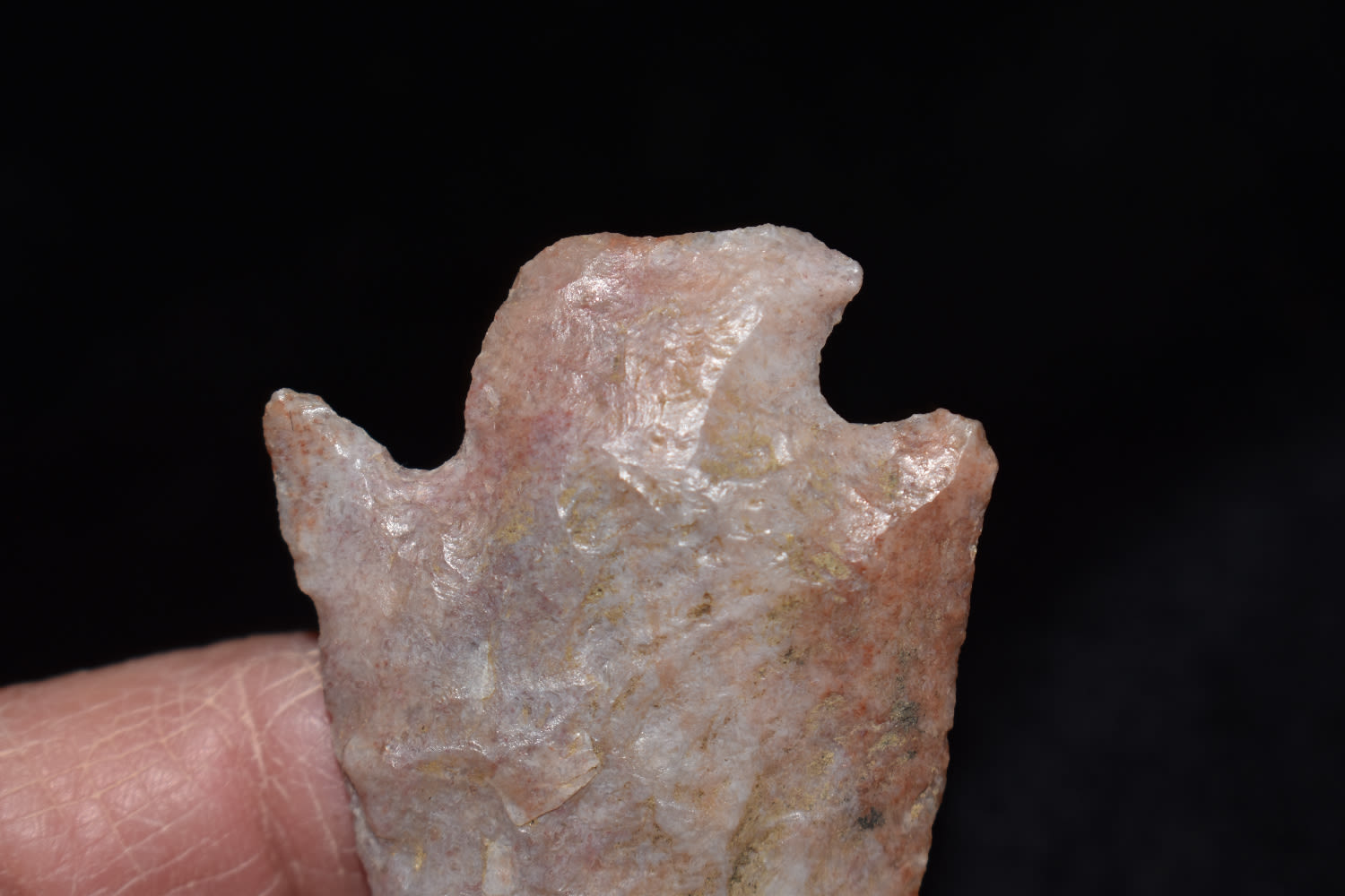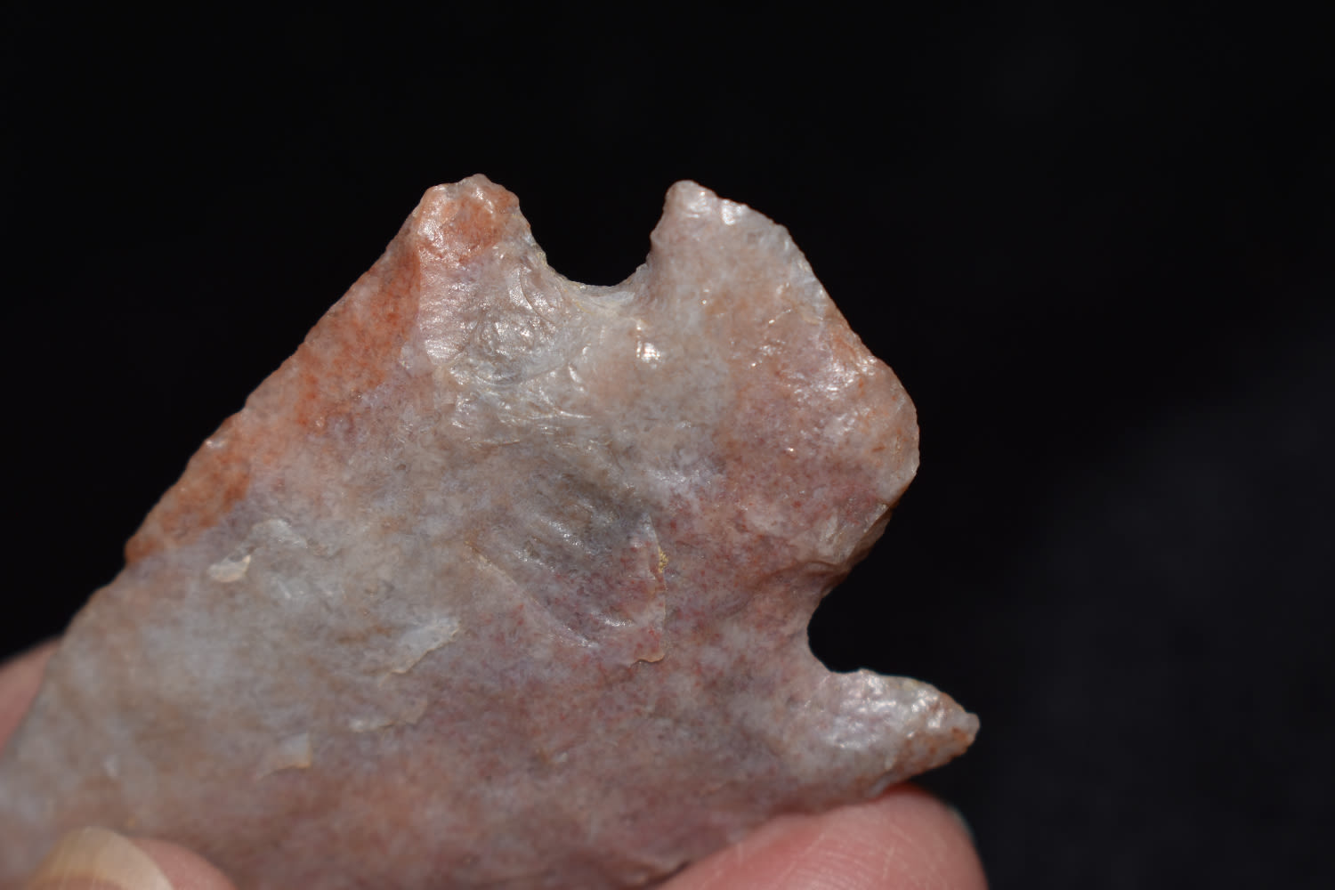 2 1/4" Hopewell point with creamy pink color found in Macon Co, Missouri.