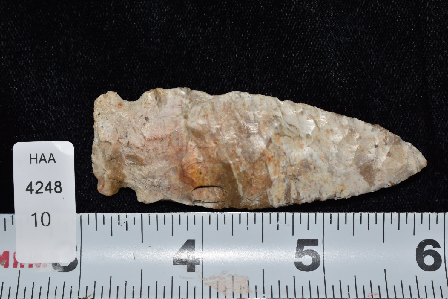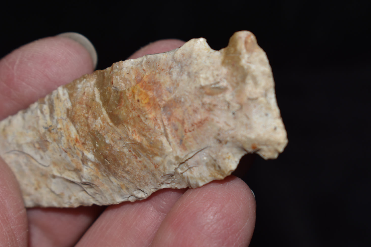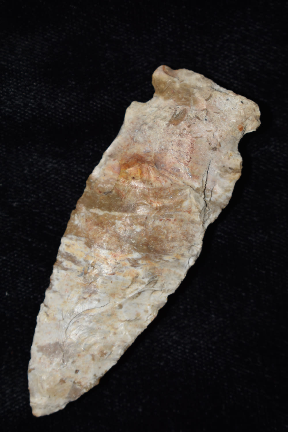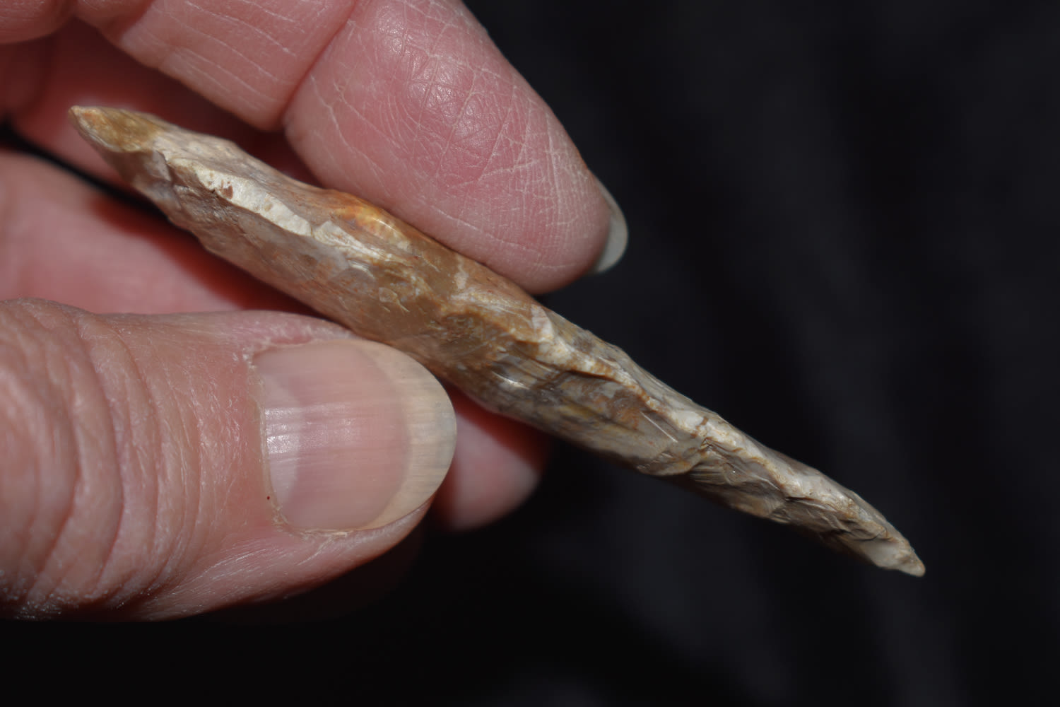 2 13/16″ Knight Island made from a banded Burlington flint found by Trenton Gosnell in Lee Co, Iowa.