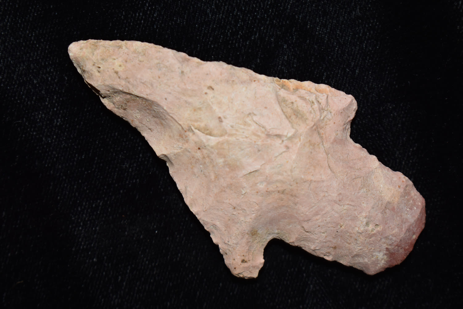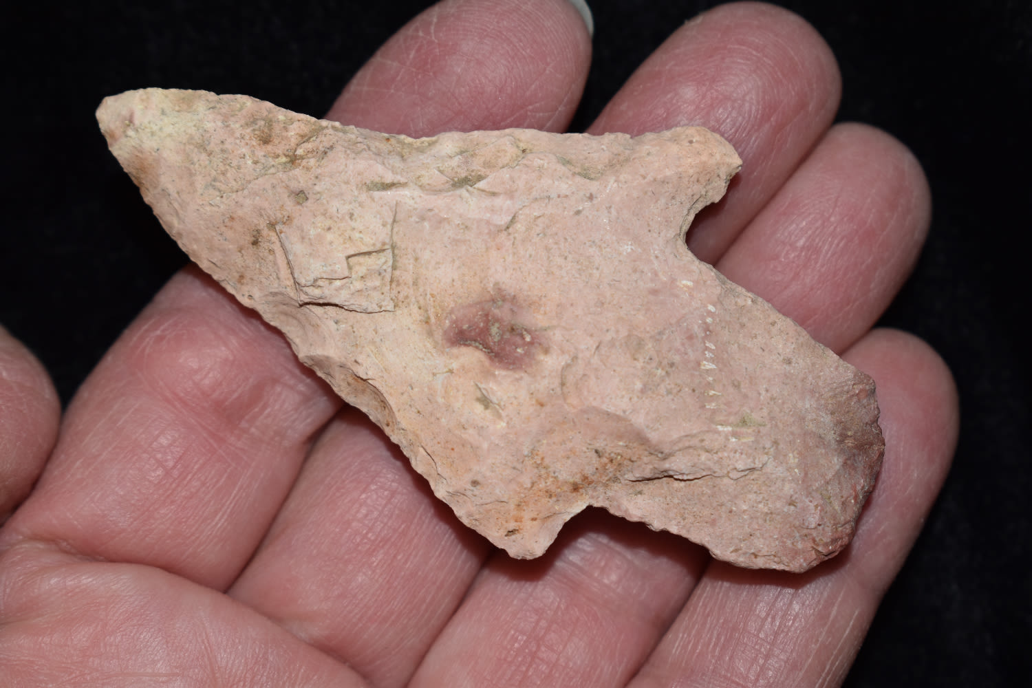 2 7/8″ Adena made from a pink heat treated flint found in Stoddard Co, Missouri.