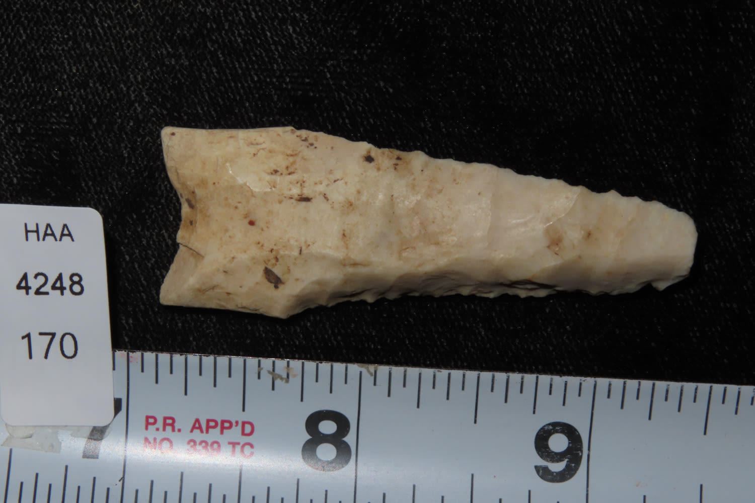 2 1/4″ Heartbreaker Dalton beveled on both sides found in Stoddard Co, Missouri.