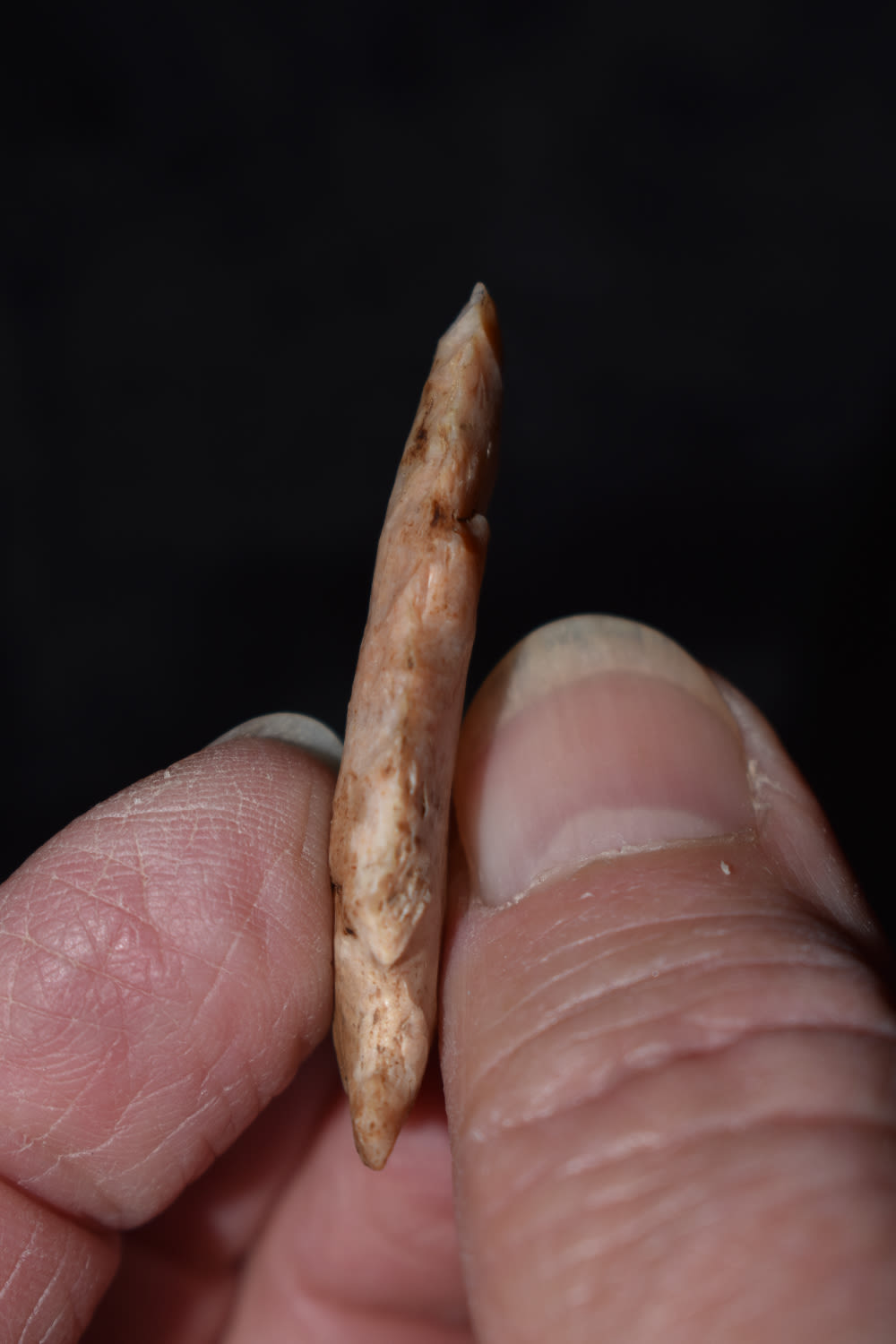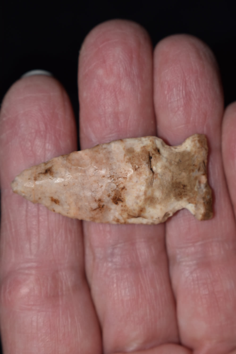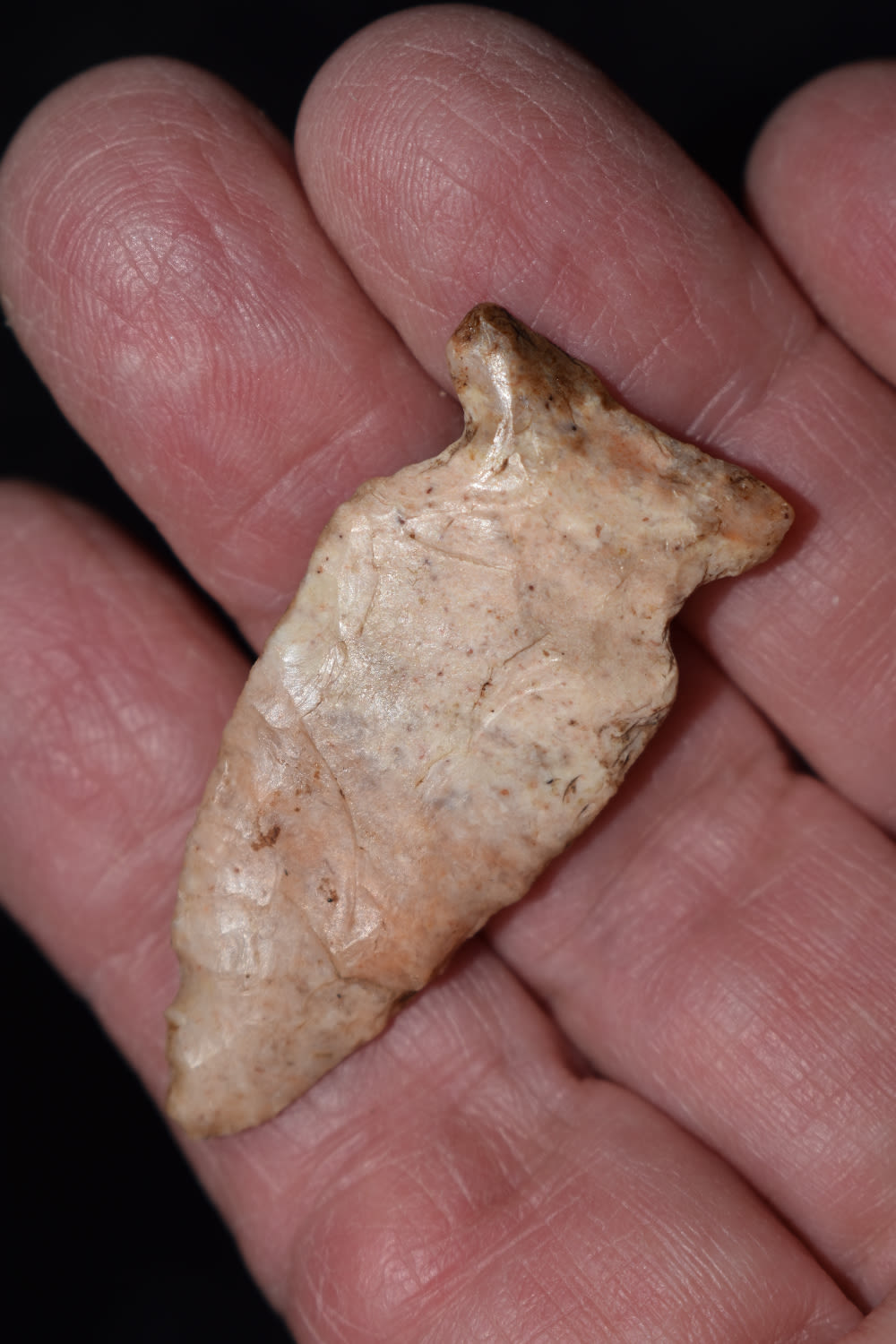 1 5/8″ Jacks Reef made from a colorfull creek stained Burlington flint found in Pike Co, Illinois.