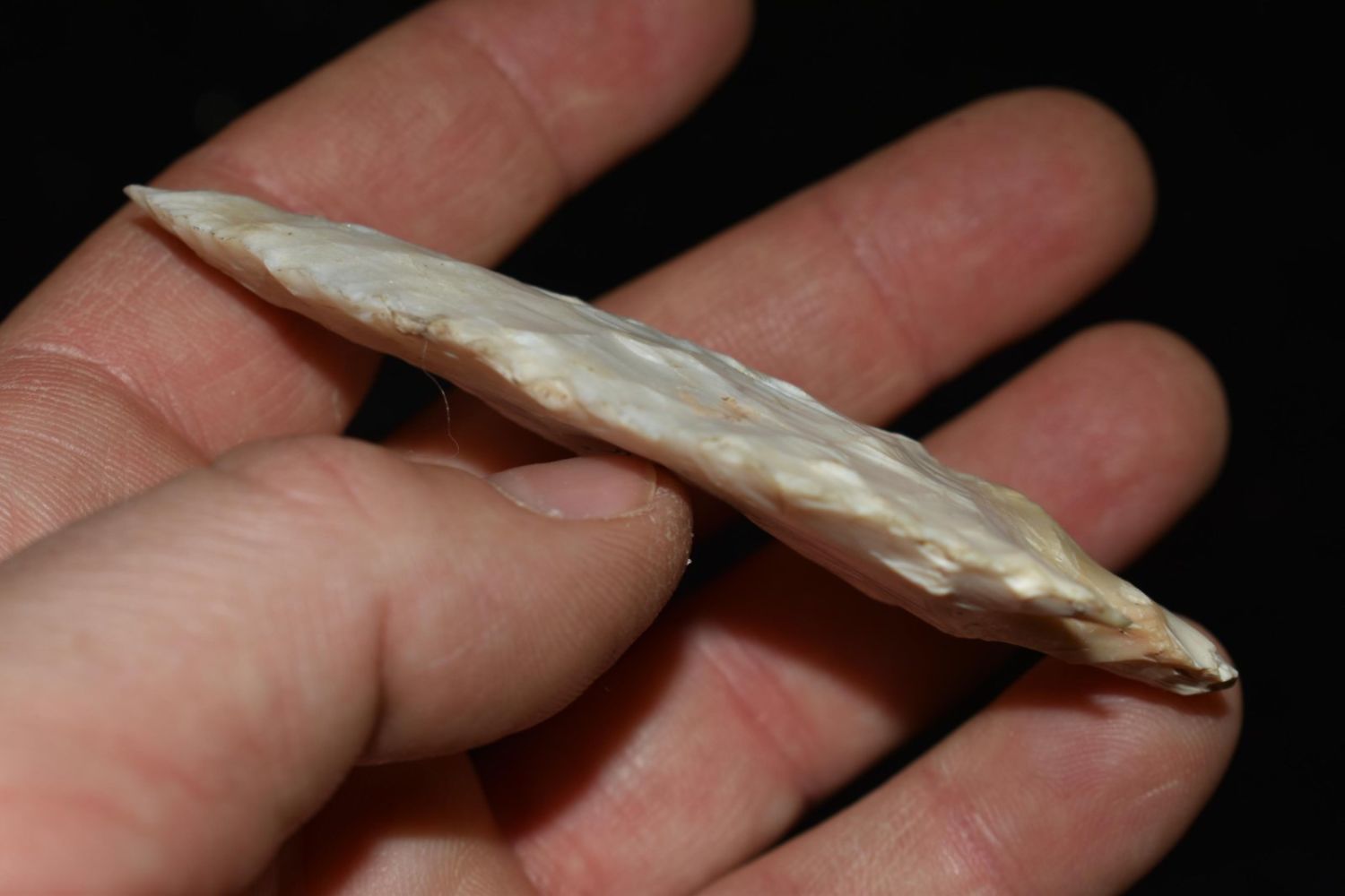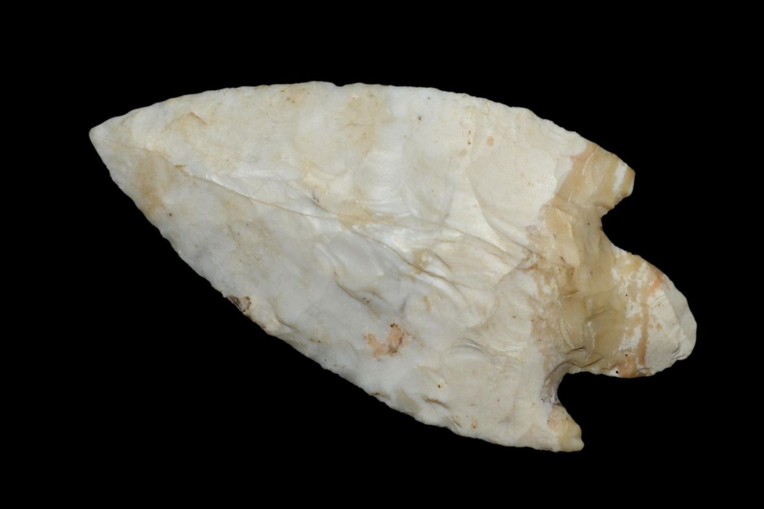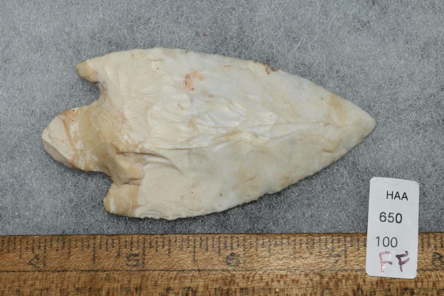 3 1/2″ Base Notched Spear, found in Green Lake, Winnebago County, WI in 1964, Ex Robert Hruska, Milwaukee, WI