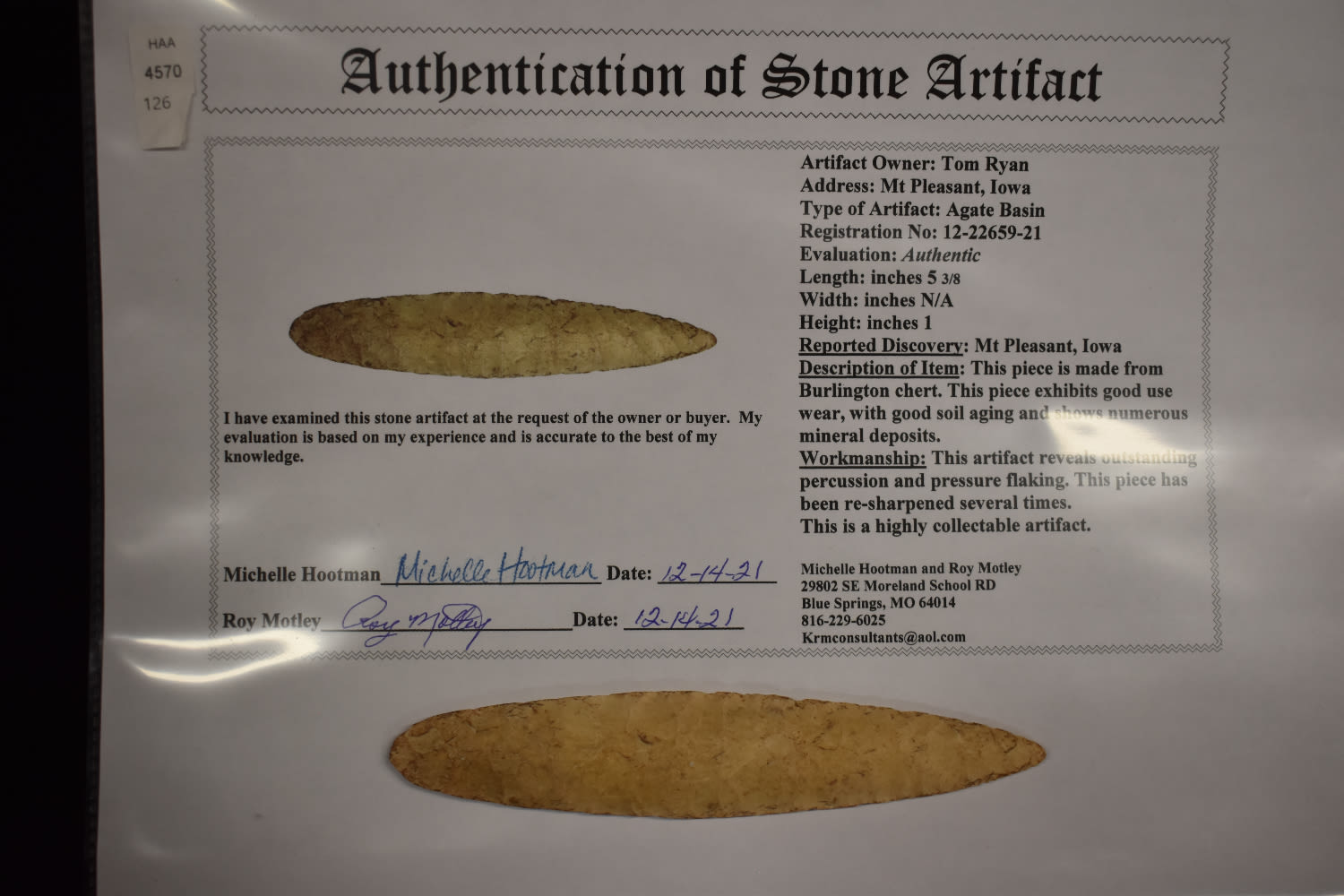 5 3/8″ Agate Basin, Motley COA-Extremely Thin, Mt Pleasant Iowa Area, Very Well Made.