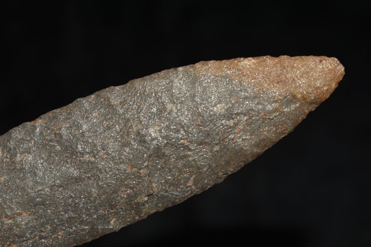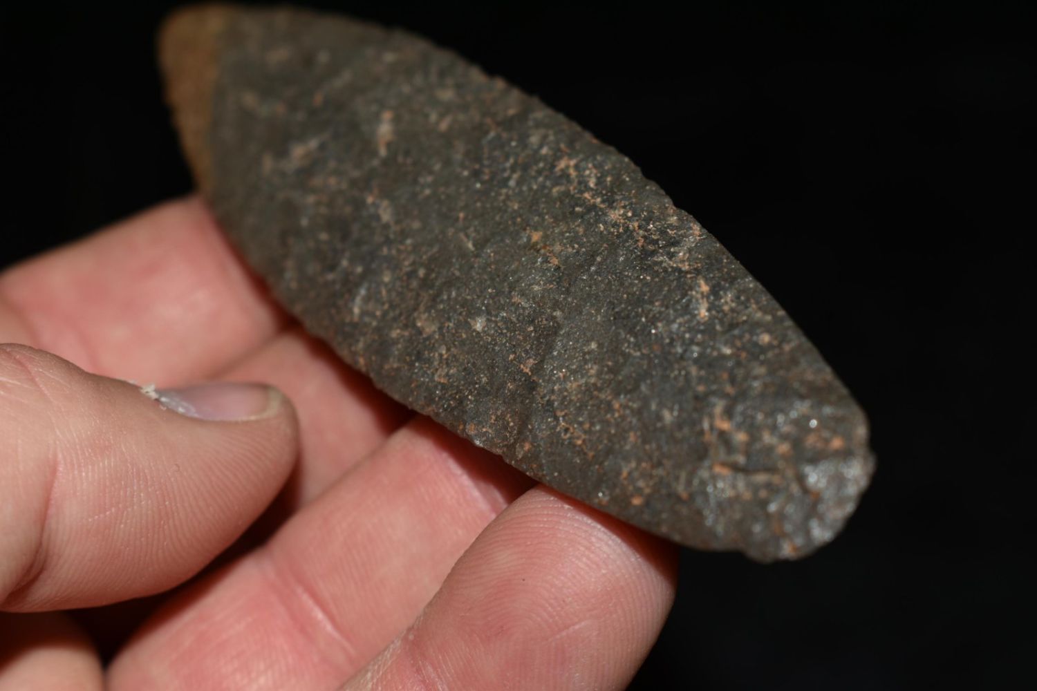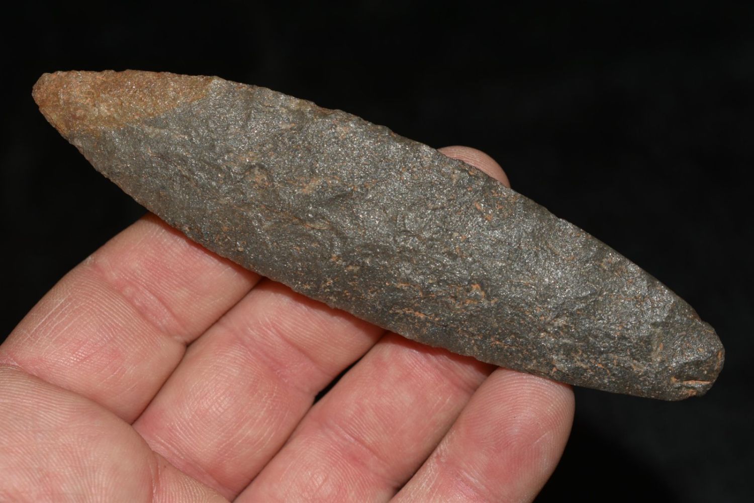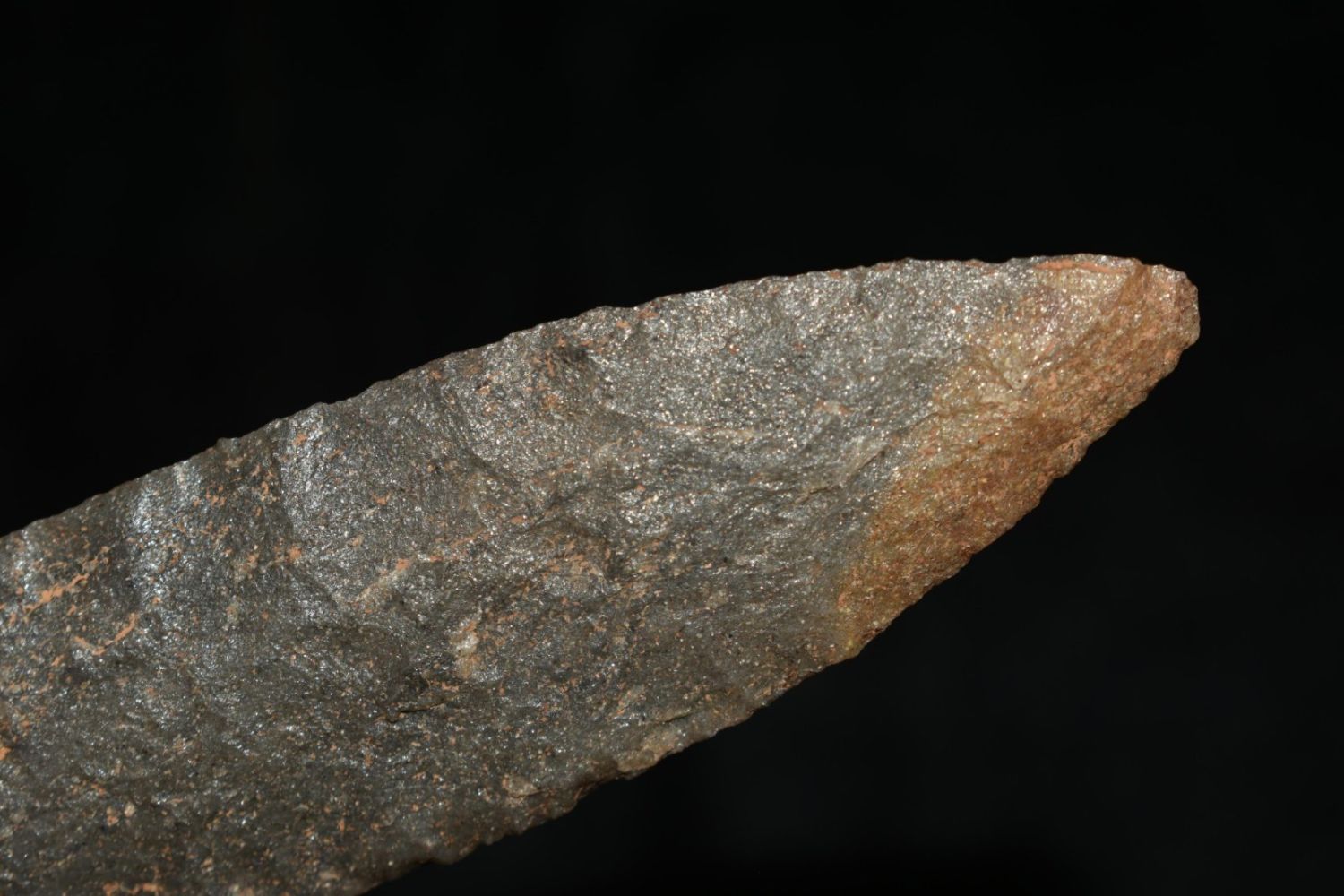 4 9/16″ Agate Basin, Stermer COA, made of Hixton Quartzite, Well Ground Base and Nicely flaked-found near Lyon Co Iowa
