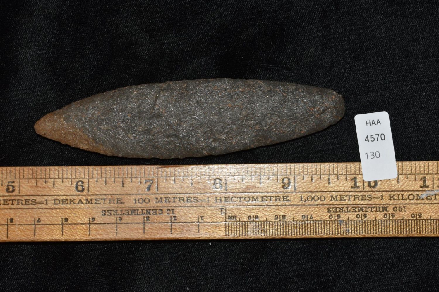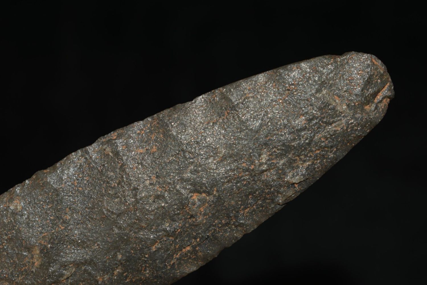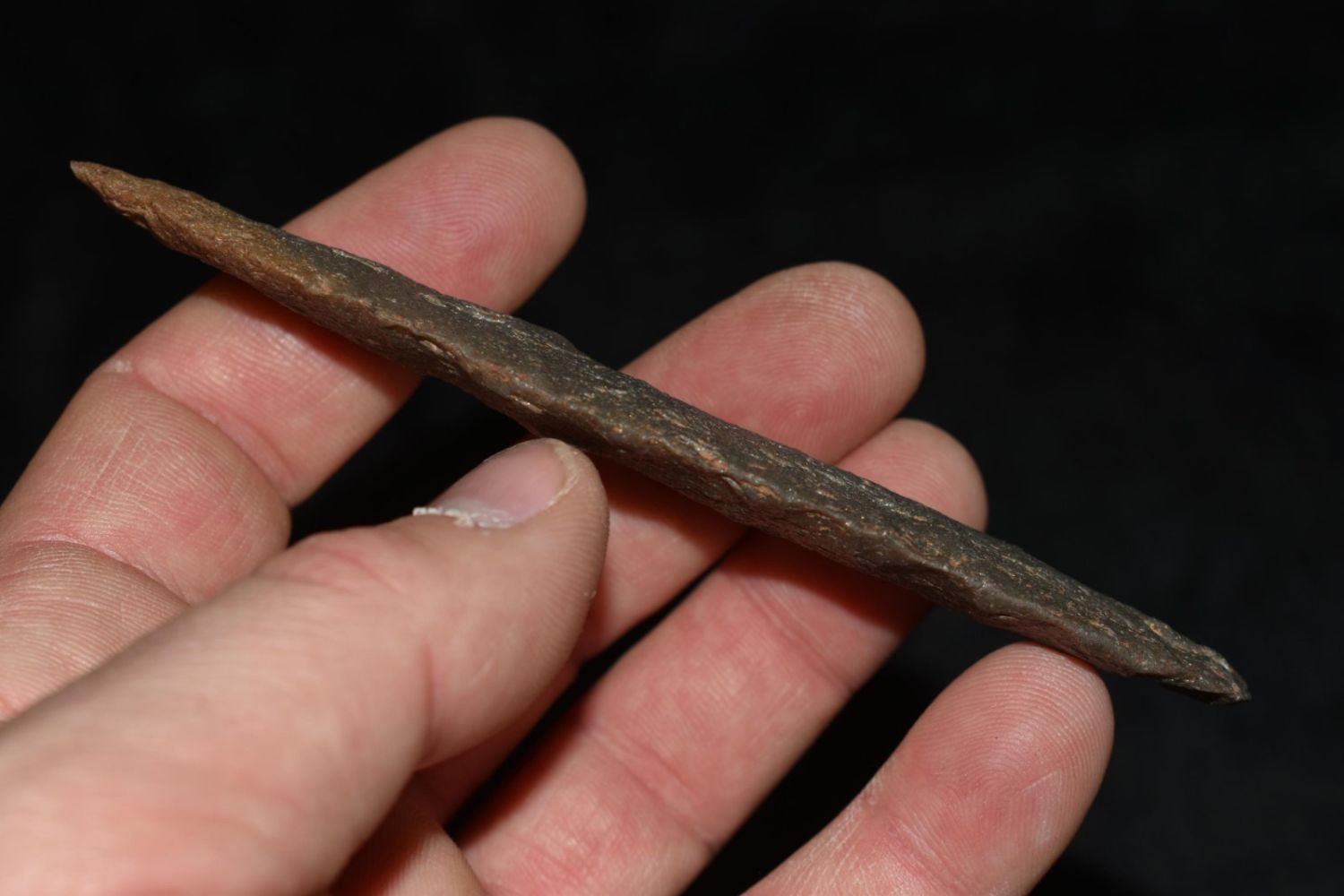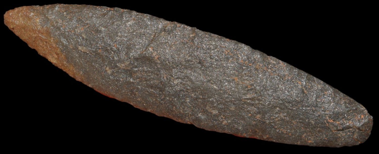 4 9/16″ Agate Basin, Stermer COA, made of Hixton Quartzite, Well Ground Base and Nicely flaked-found near Lyon Co Iowa