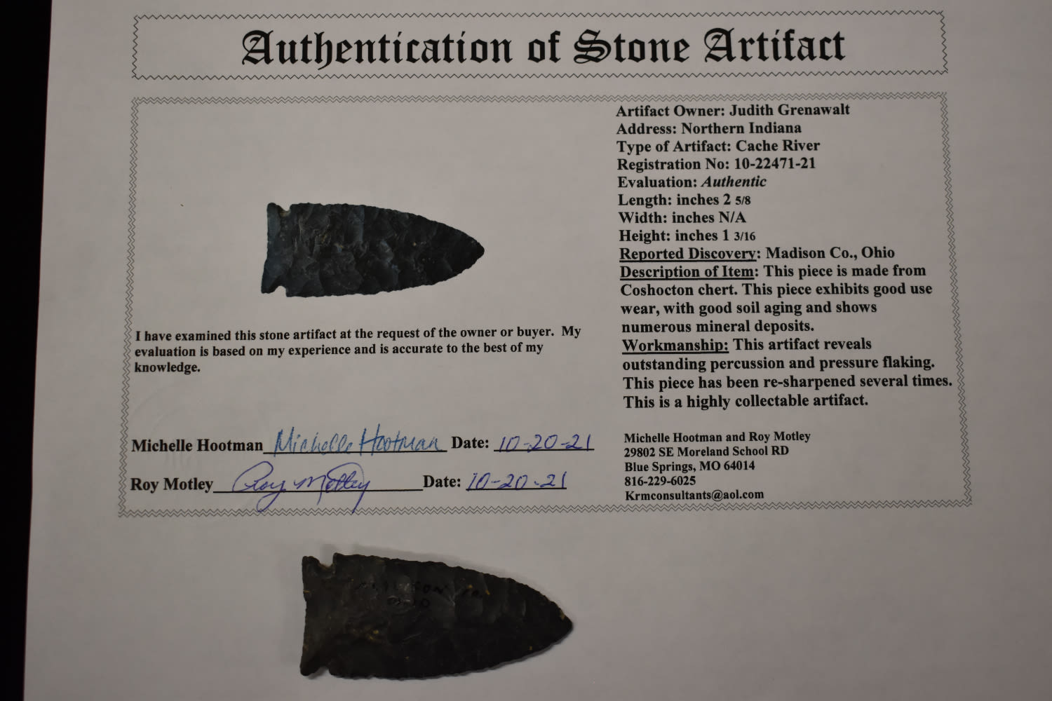 2 5/8″ Cache River, Motley COA, found in Madison Co. Ohio