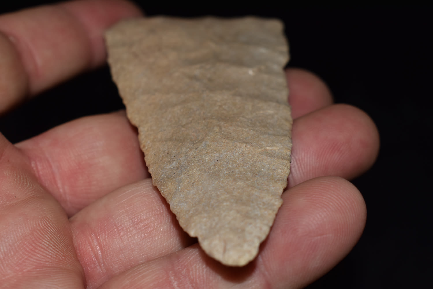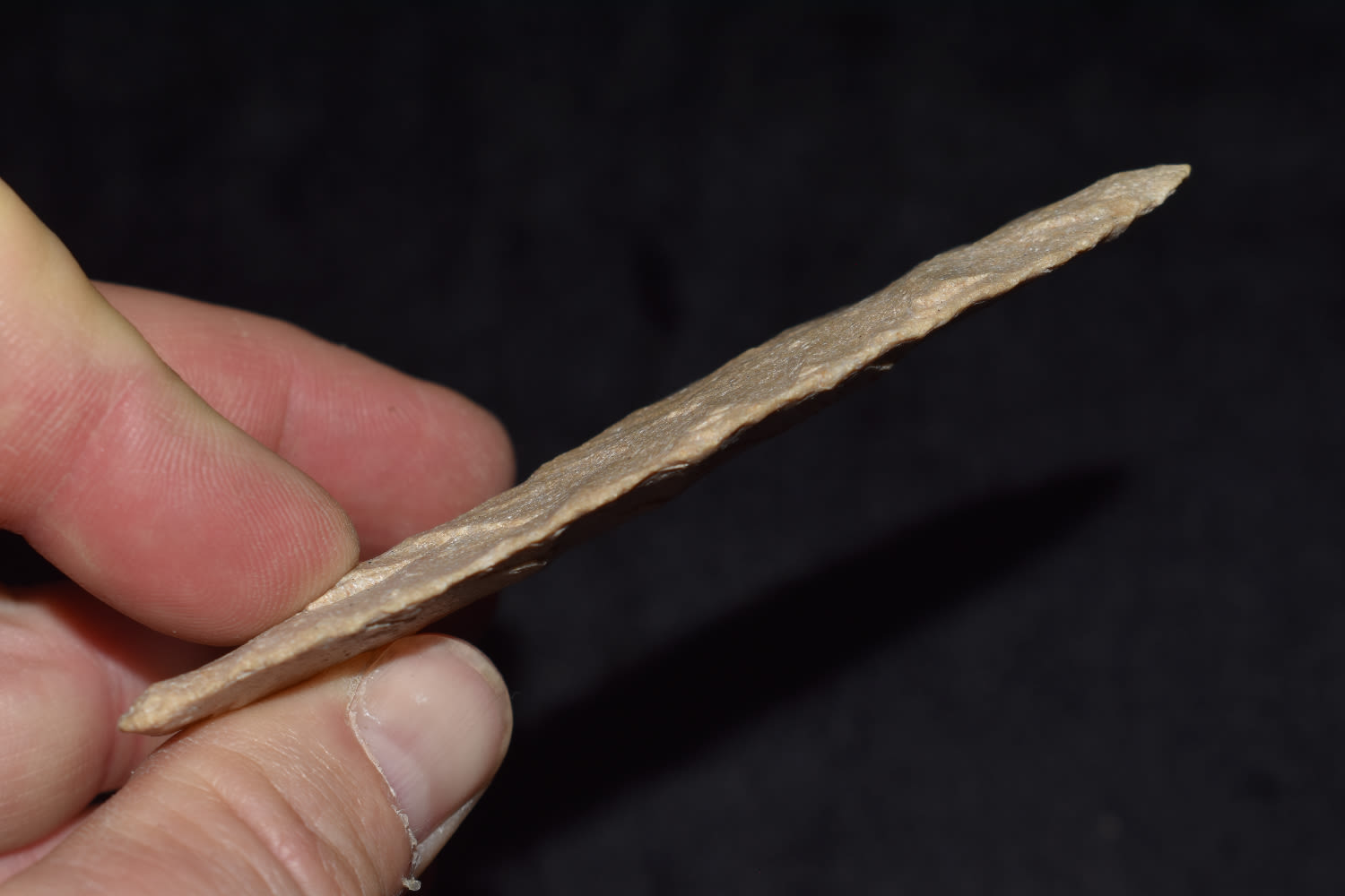 3 7/8" Dalton Knife, Heavily Ground Base, Lightly Beveled, Found by Johnny Kidd near the Arkansas River in Kay Co. Arkansas