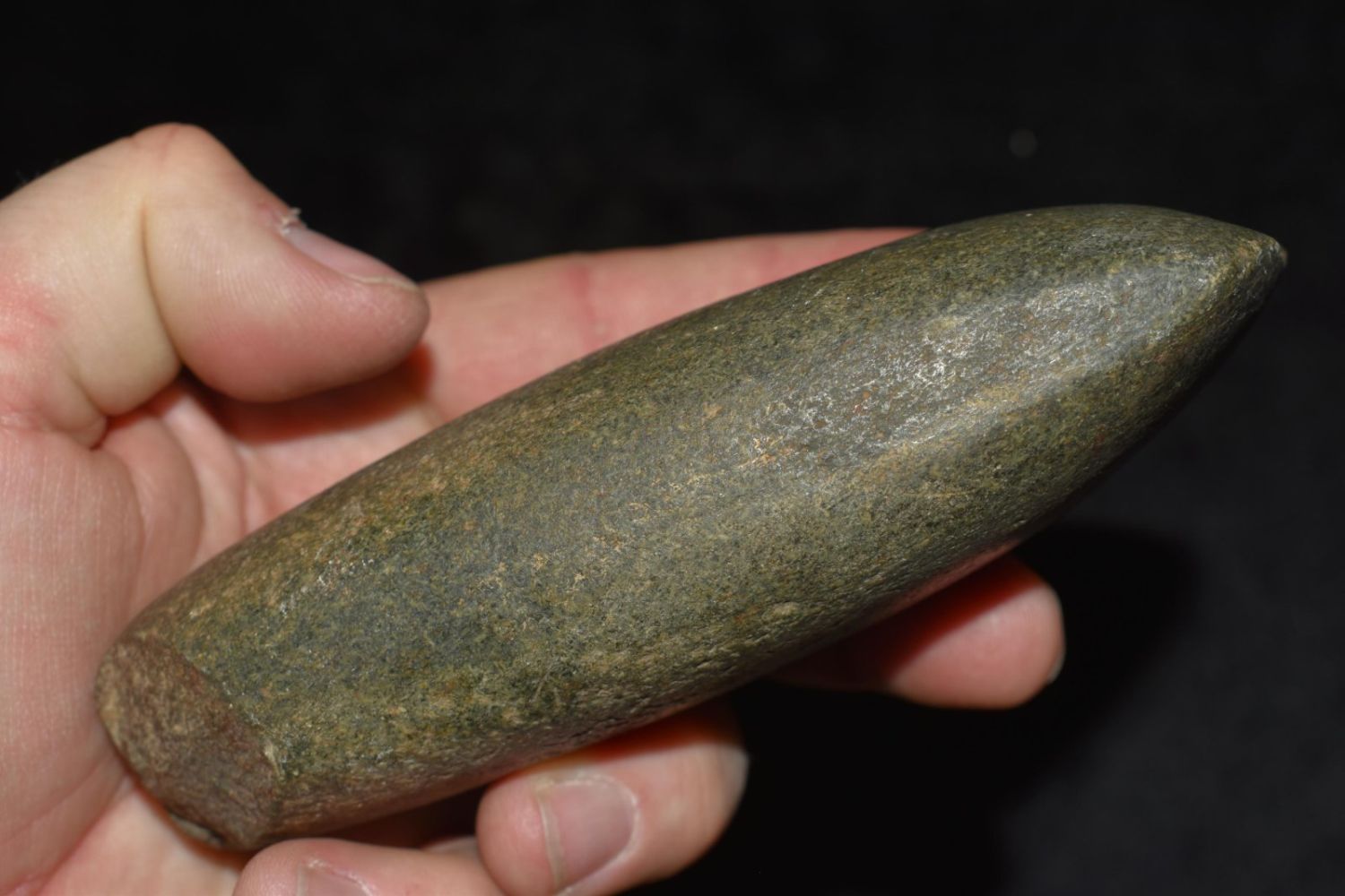5 1/8″ Square Back Celt, found in Adams Co. Illinois, Nice High Polish and Bit-Good Green Color- Ex. Matt Lay Collection
