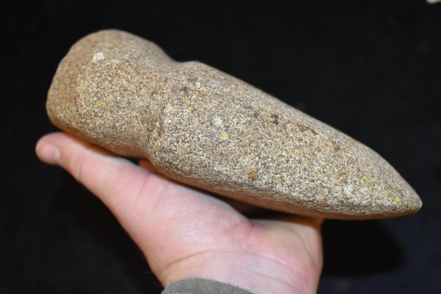 7 1/2″ Humongous 3/4 Groove Axe made of Porphery Granite, Illinois River Style, Stands on its back,