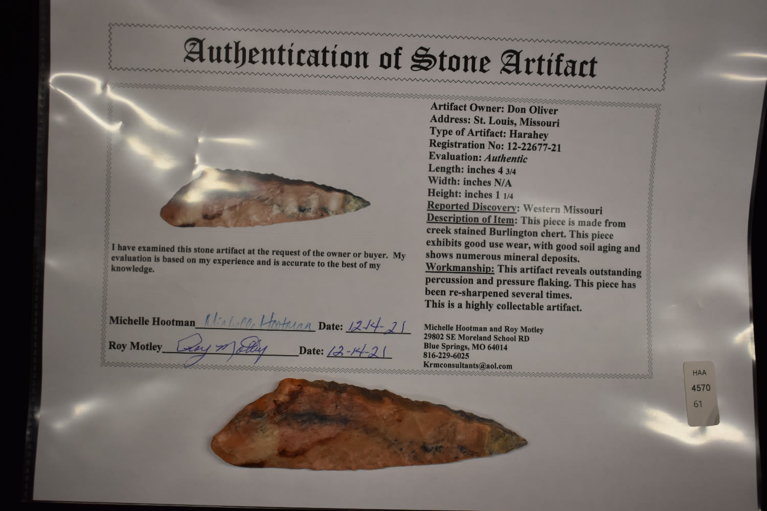 4 3/4″ Harahey, Motley COA, Amazing Color, Found in Western Missouri