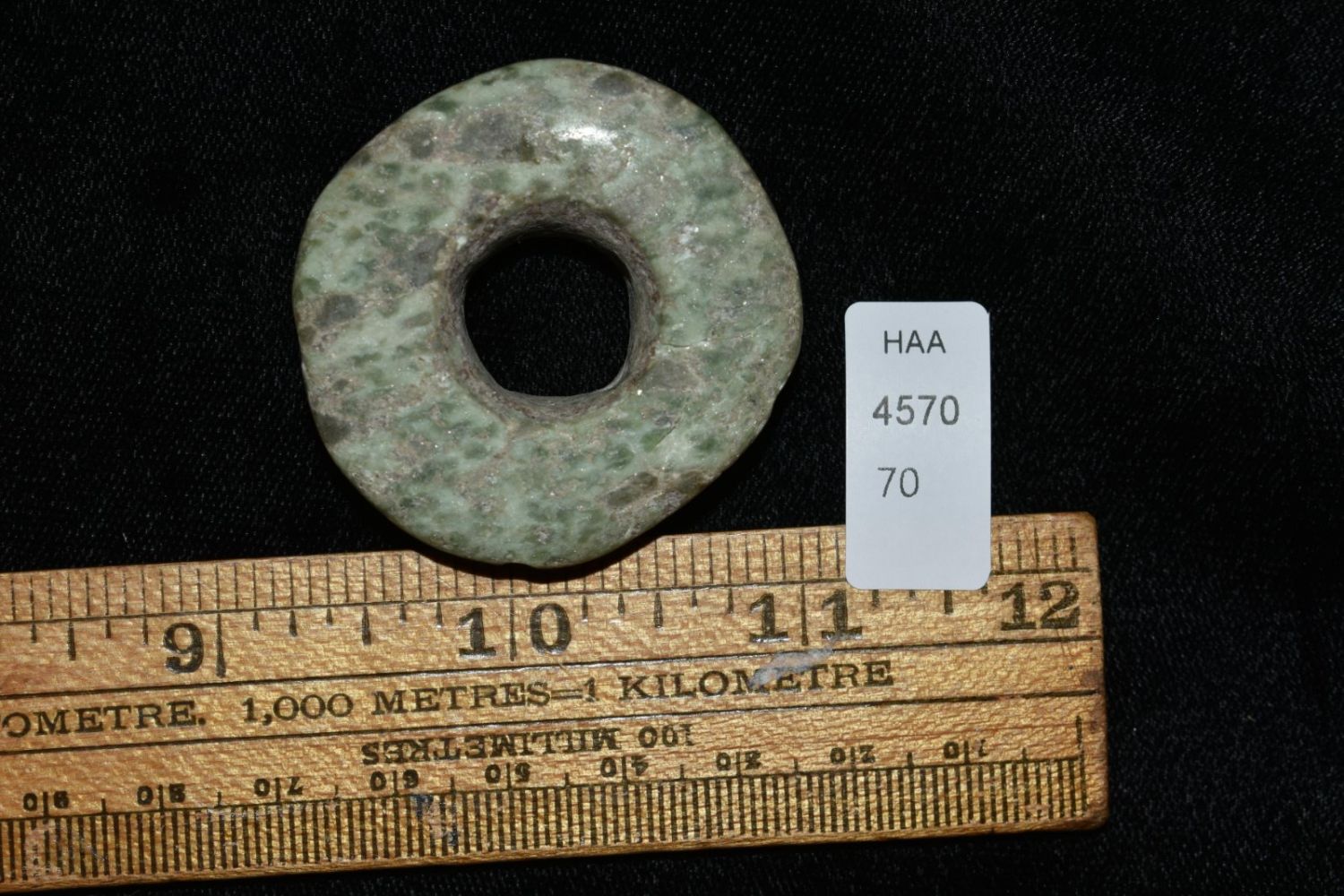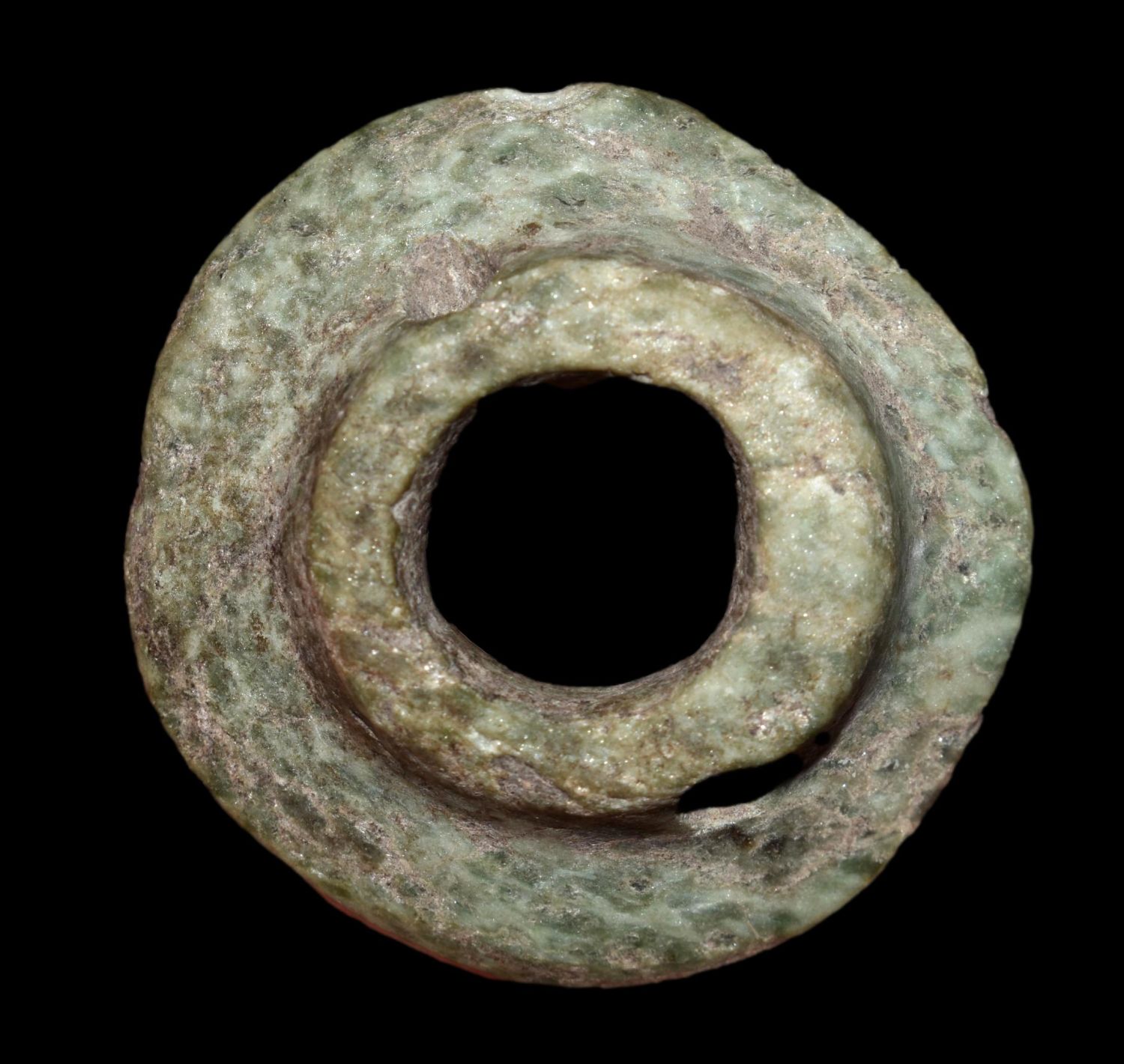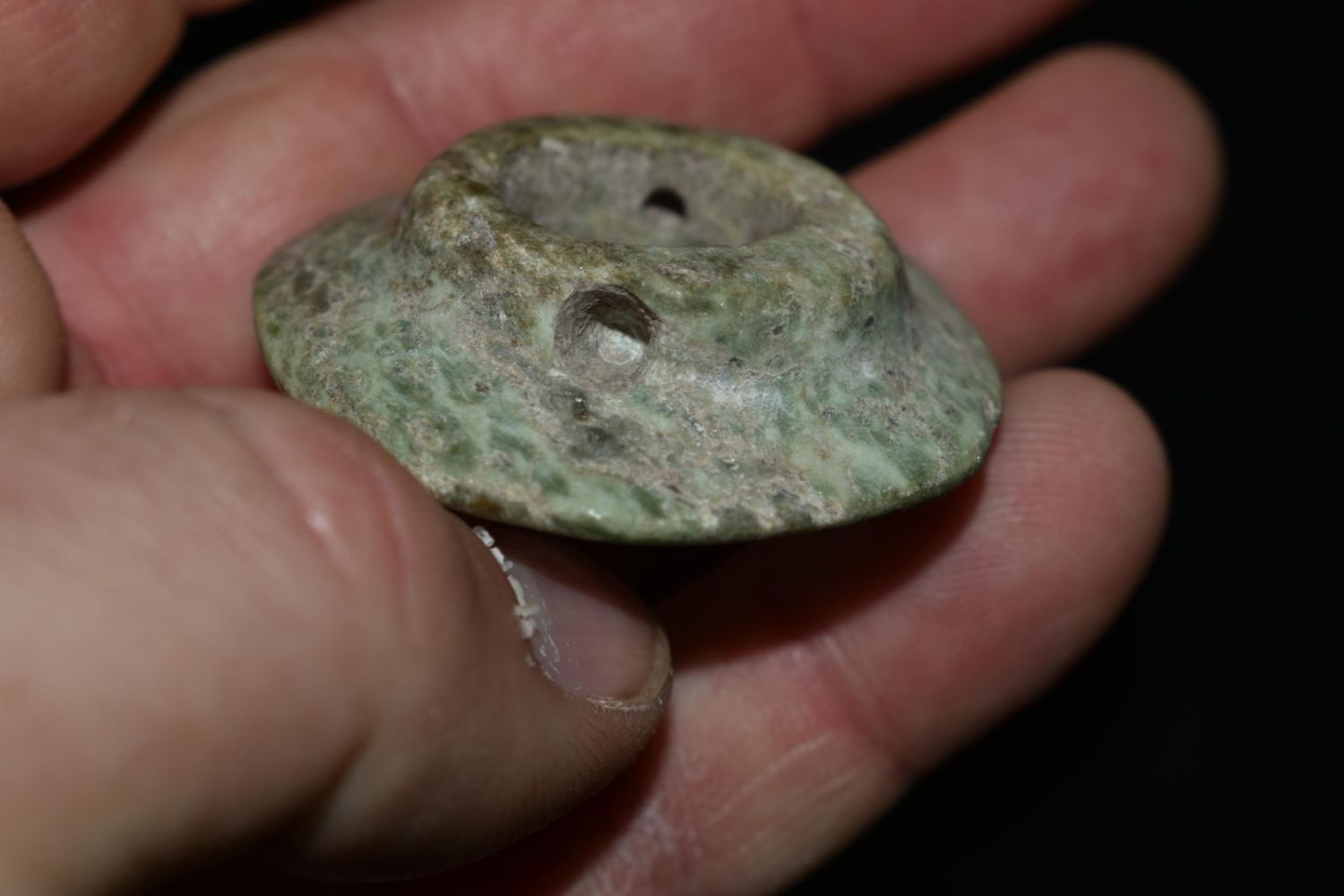 1 3/4″ Pre-Colombian Jade Drilled and Polished Ear Spool, Ex Greg Perdun and Chuck Adams