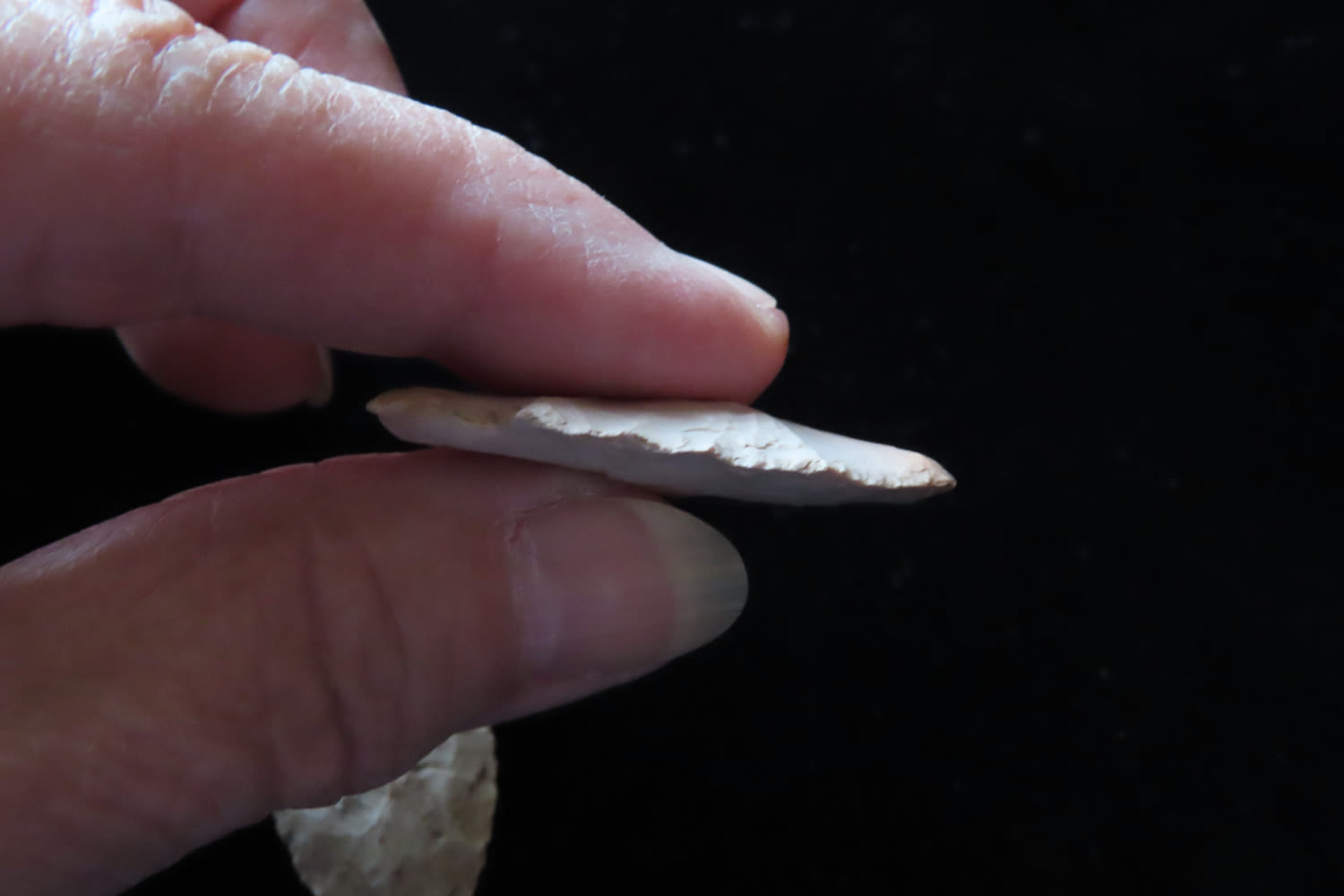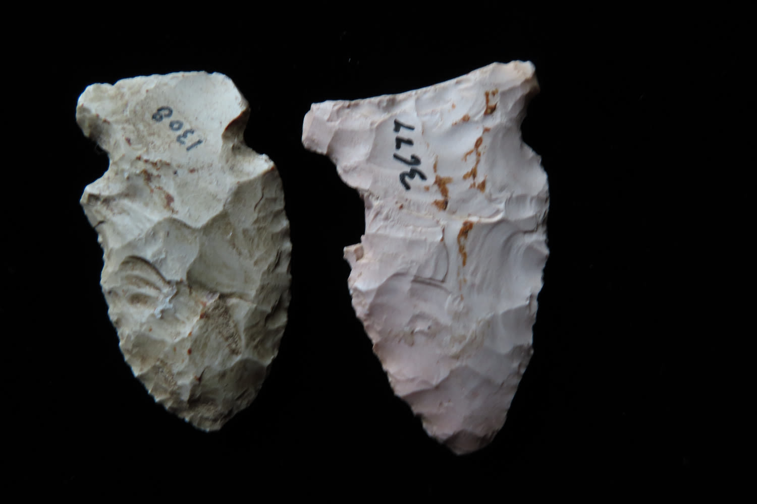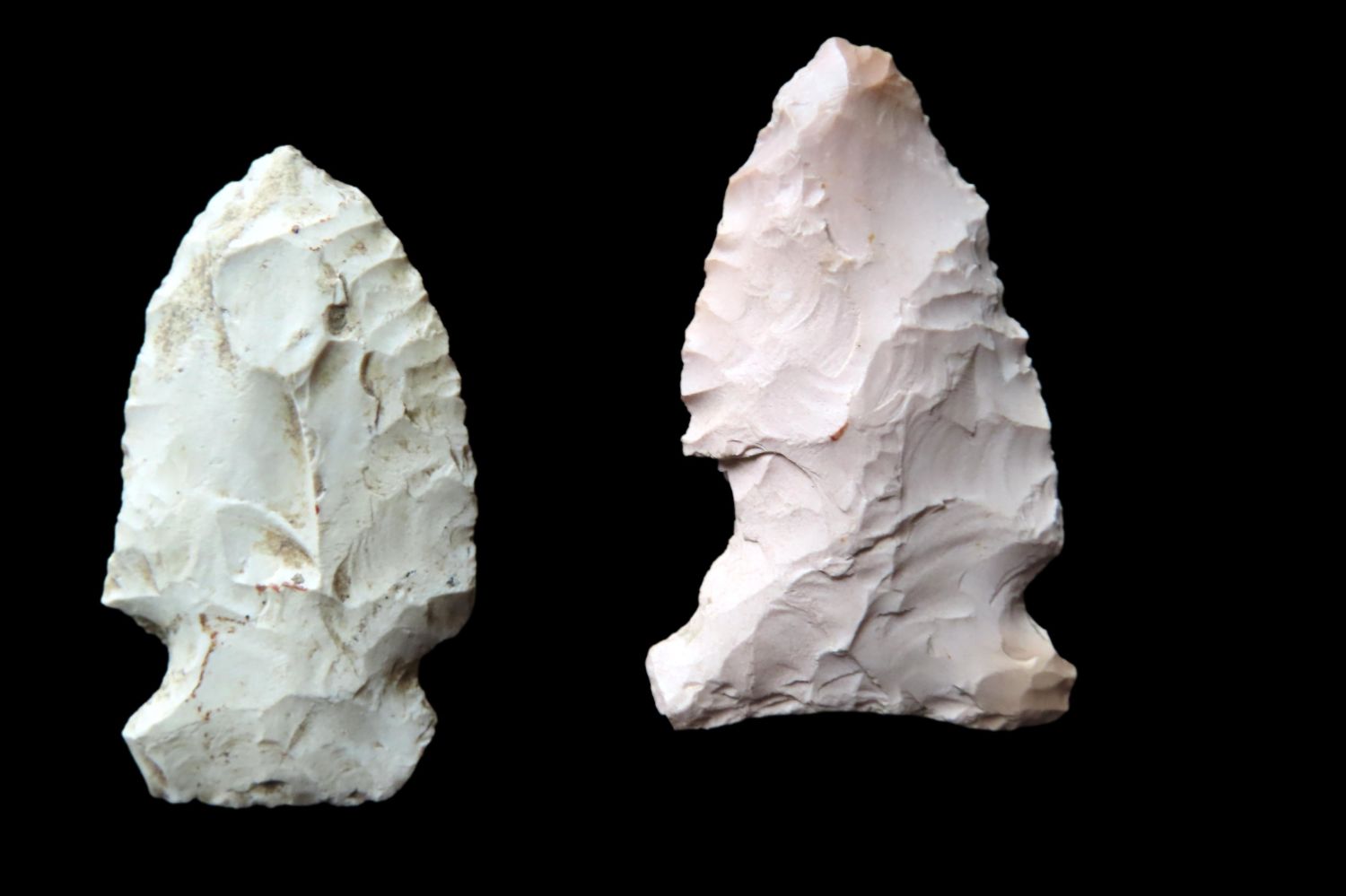 Two 1 7/16″ Sidenotch points from the late Bruce Cox collection of Hamilton, Illinois.
