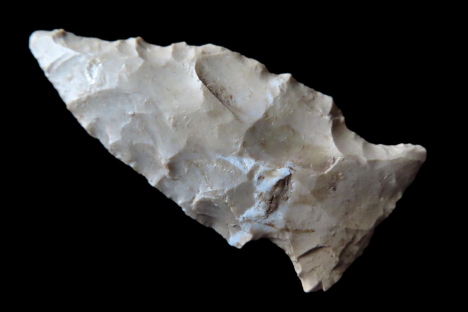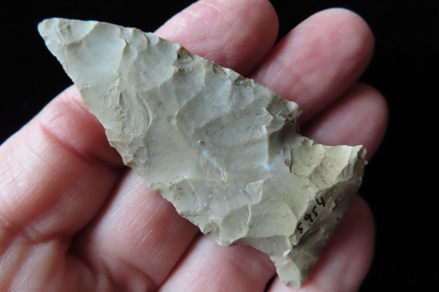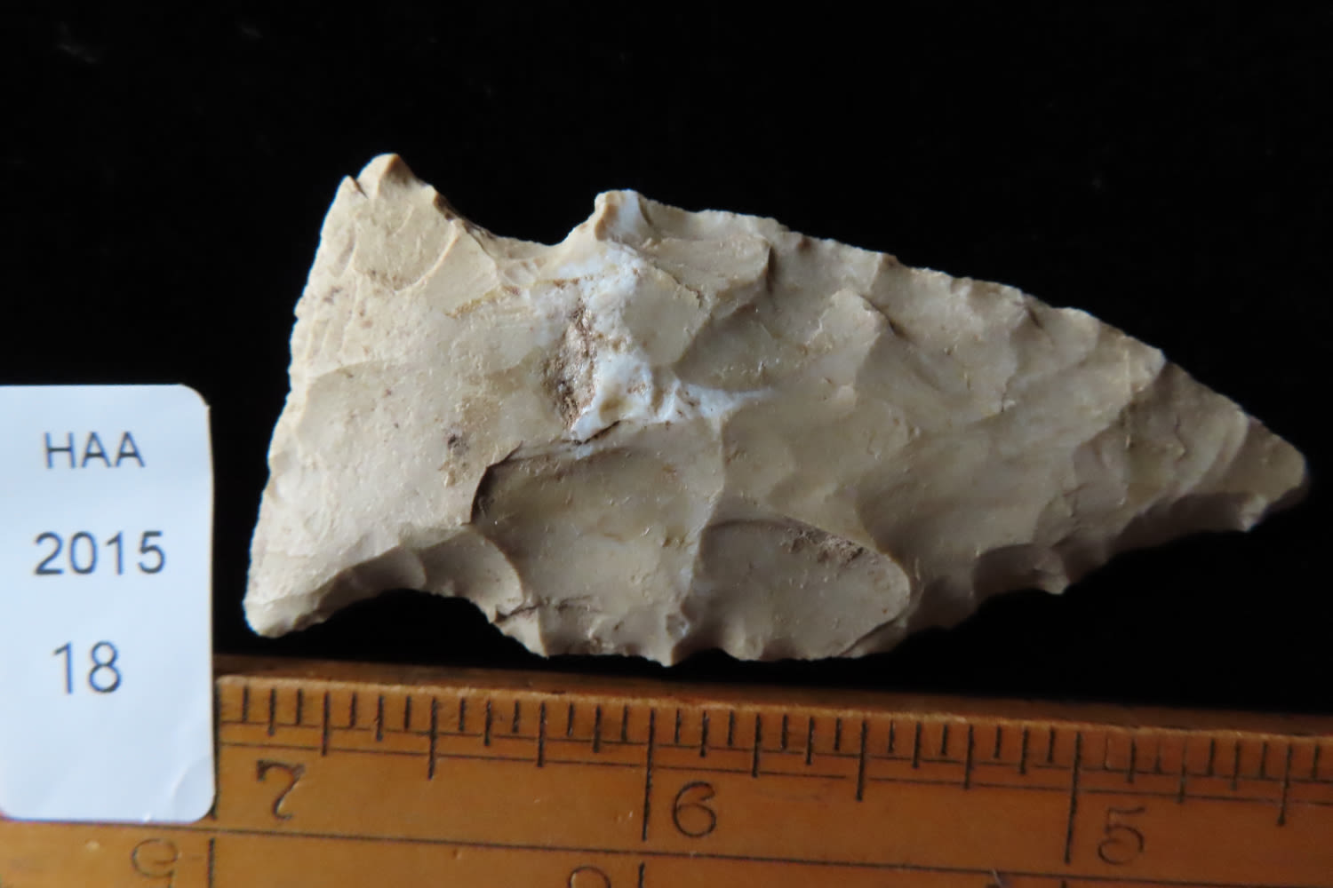 2 1/2″ Rice Side-Notched found in Missouri. From the collection of Bob Zimmerman St. Joseph/ Warsaw, Missouri.