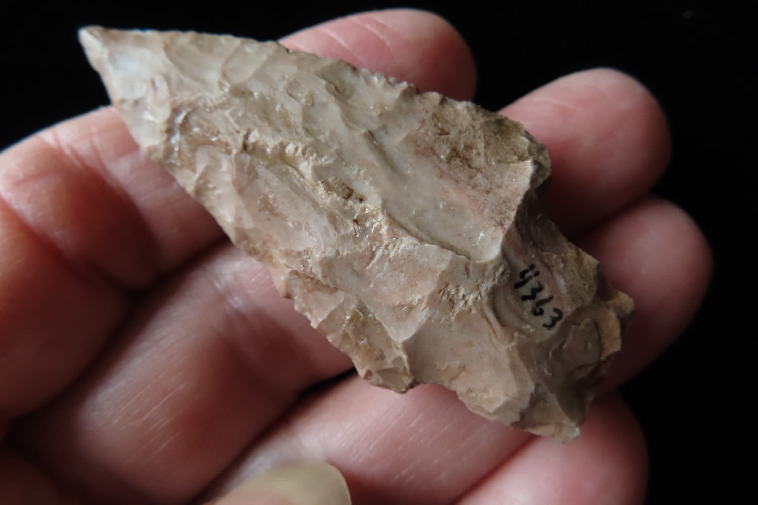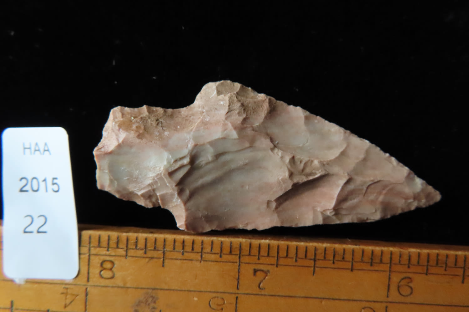 2 3/8″ Square Stemmed Adena. From the late Bruce Cox Collection Hamilton, Illinois.