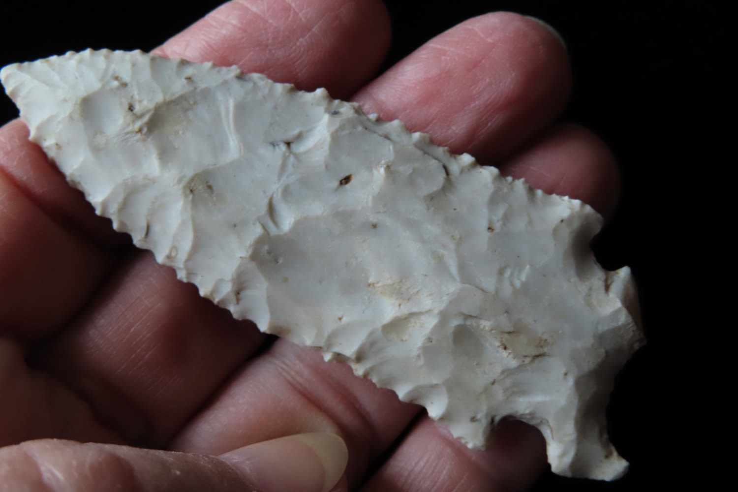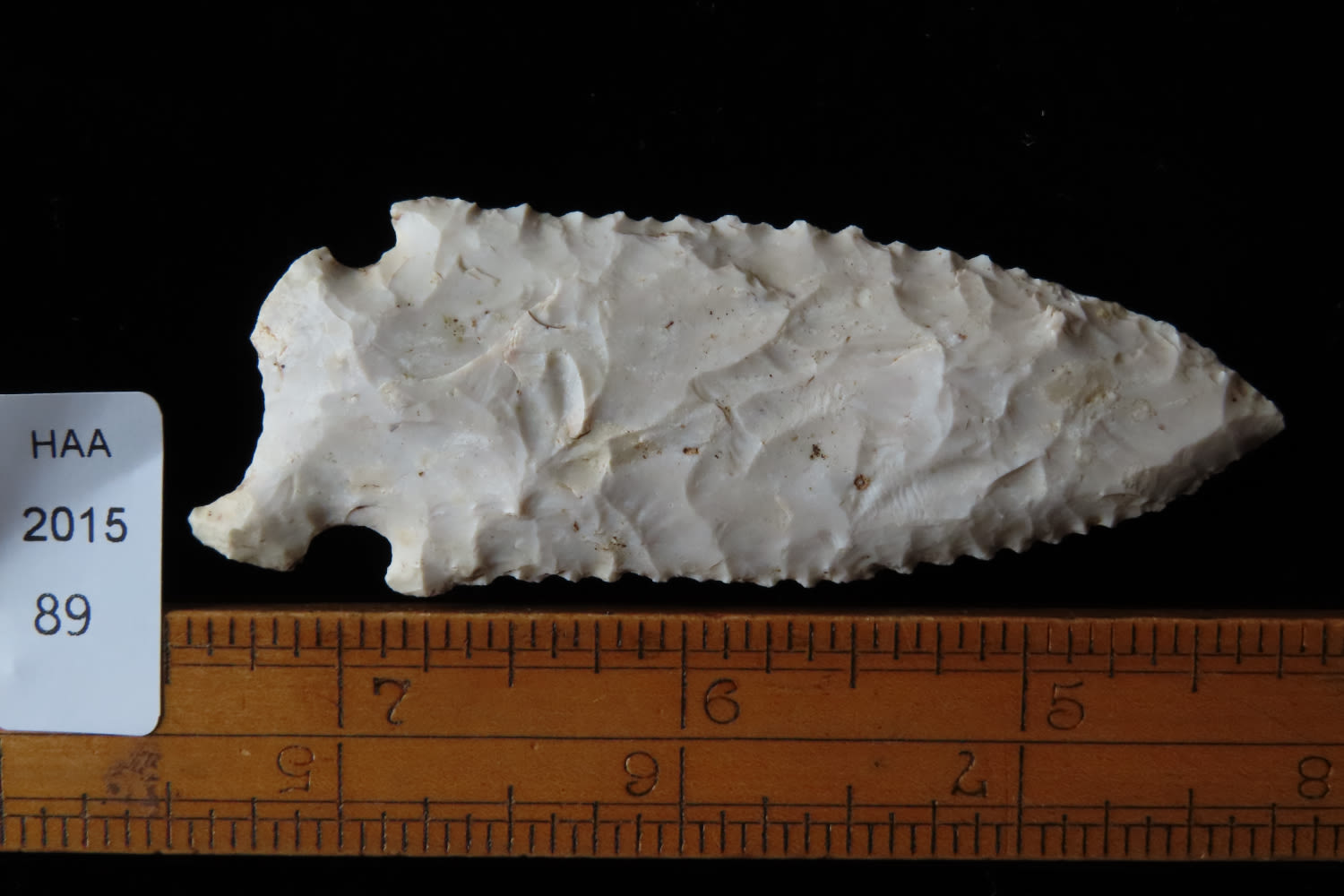 3 1/4″ Graham Cave made from Burlington very Serrated found in the Midwest.