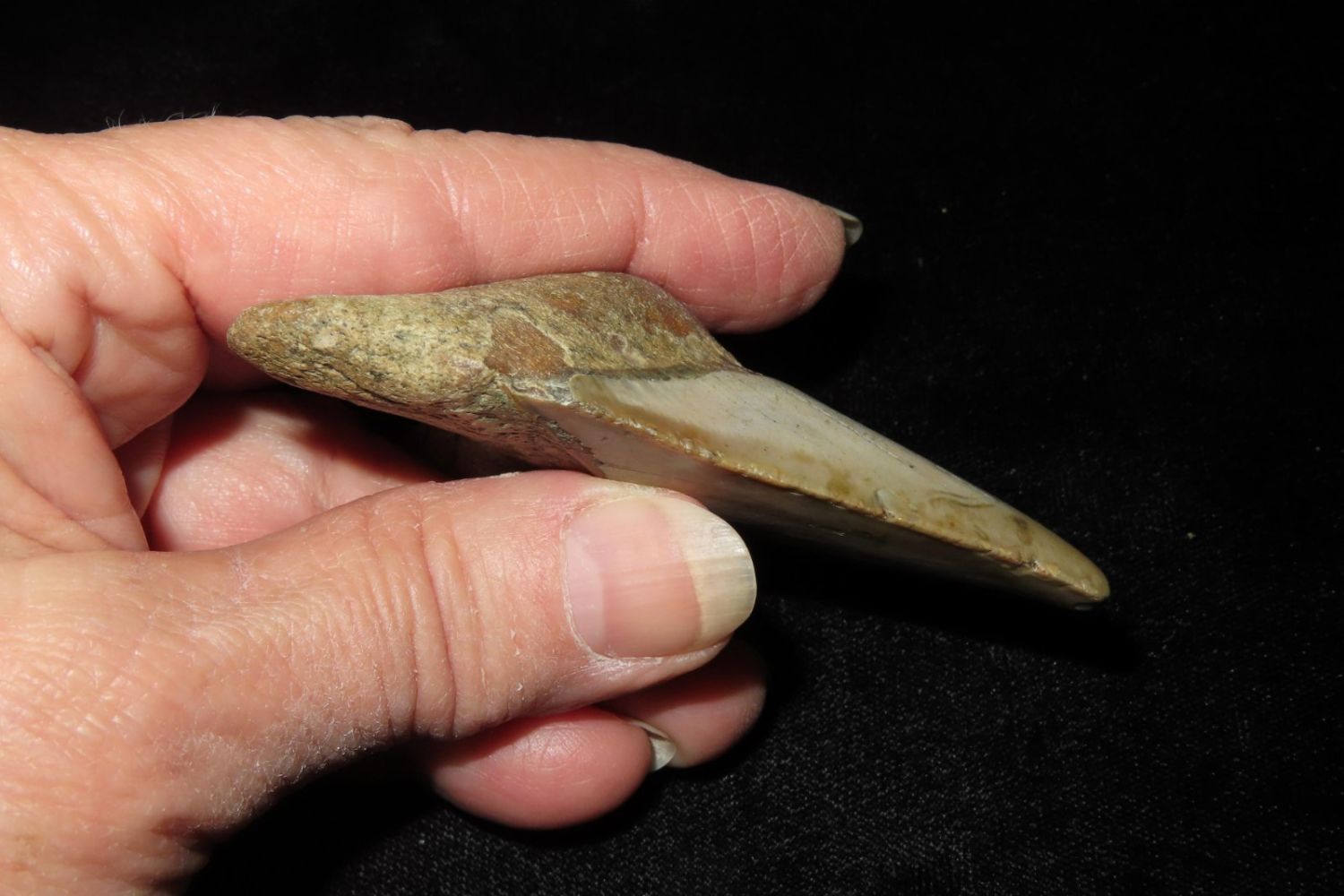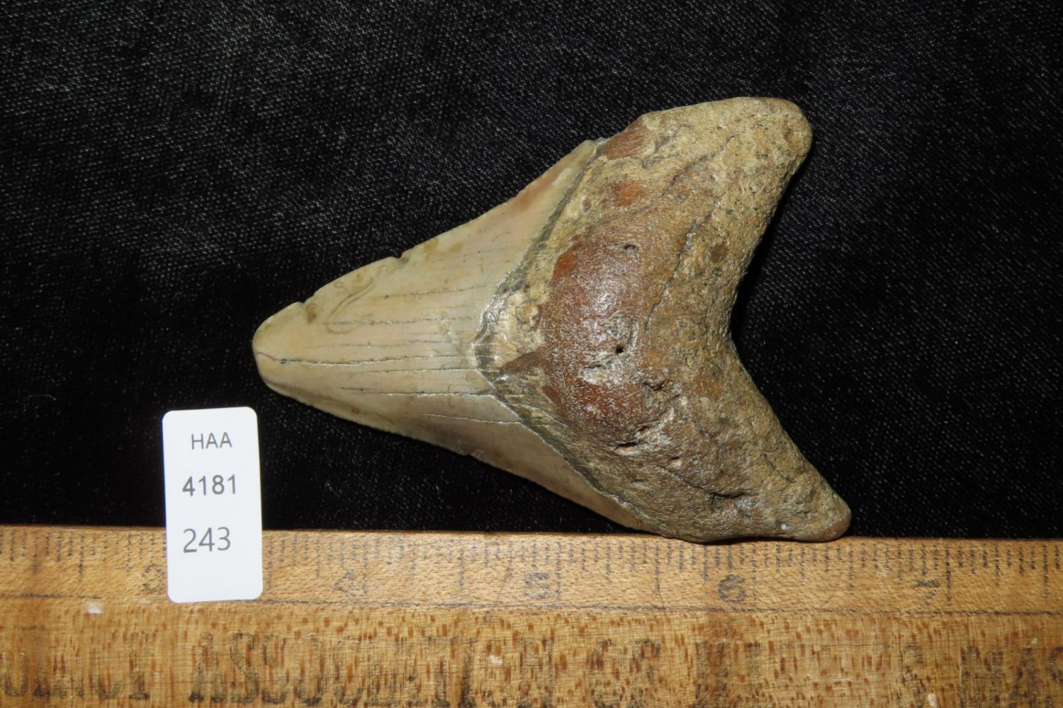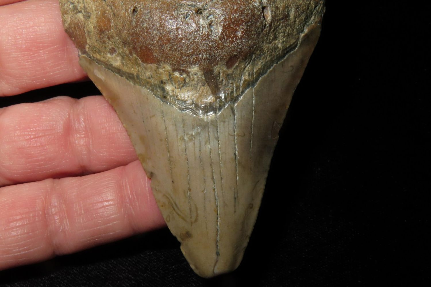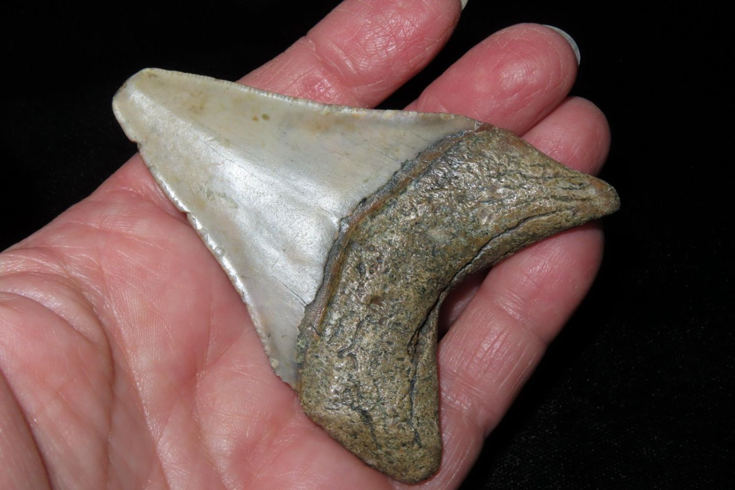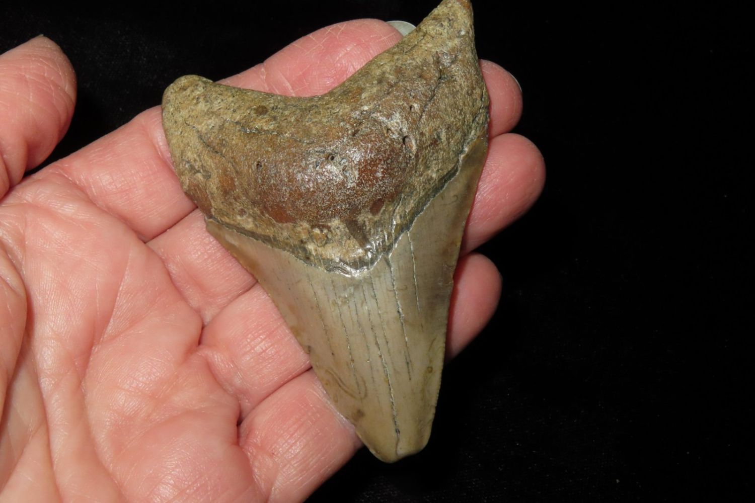 3 1/4″ Megaladon Shark Tooth Fossil, South Carolina Megalodon (Otodus megalodon), meaning “big tooth”, is an extinct species of mackerel shark that lived approximately 23 to 3.6 million years ago.