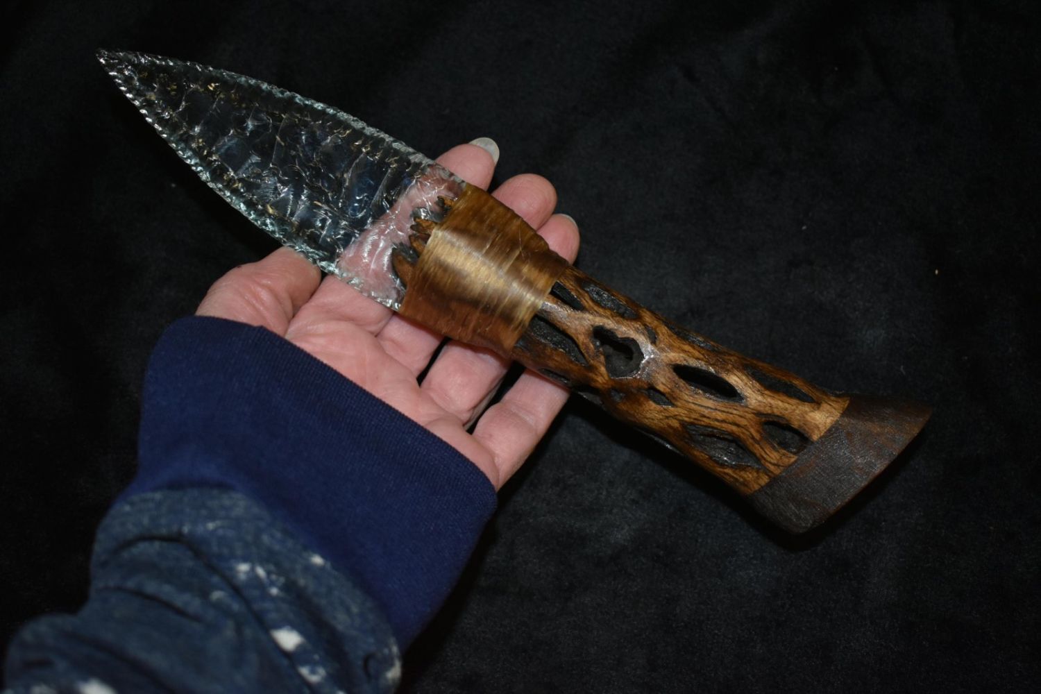Hand Made Glass Modern Arrowhead with Wood Handle