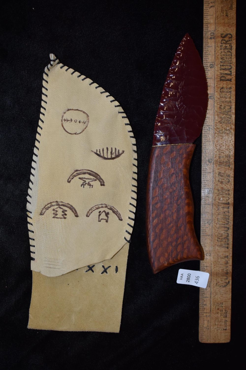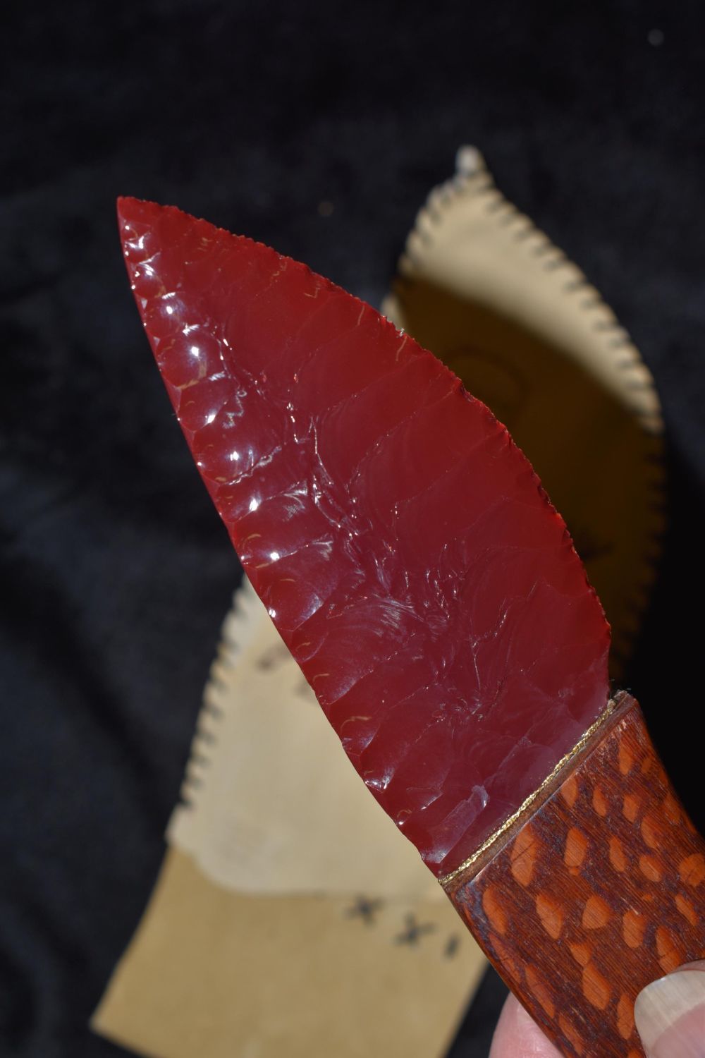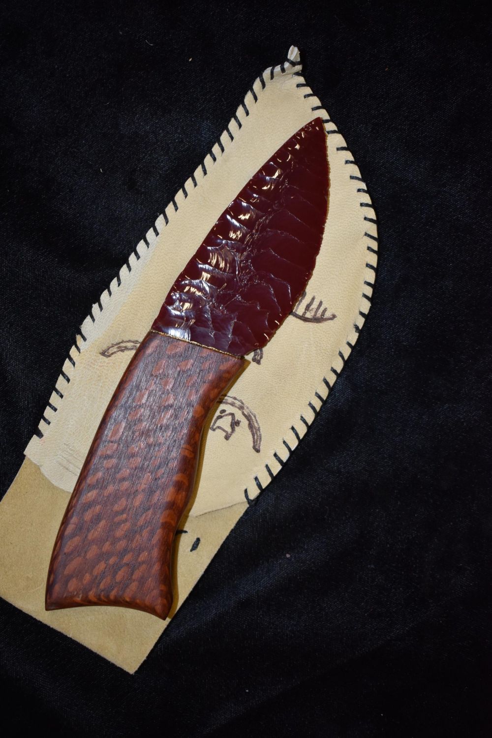 Hand Made Glass Modern Arrowhead with Wood Handle and Hand Made Leather Sheath
