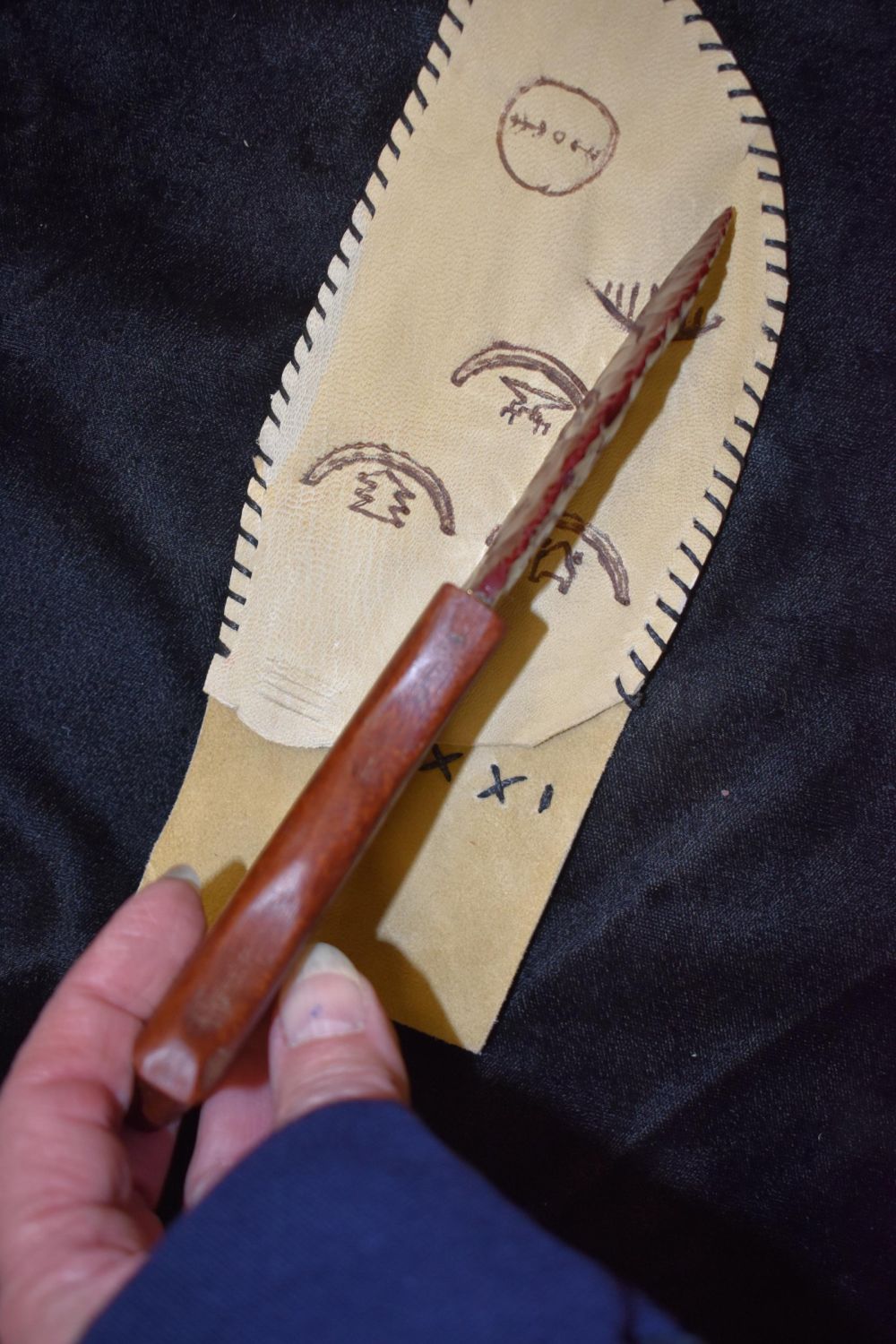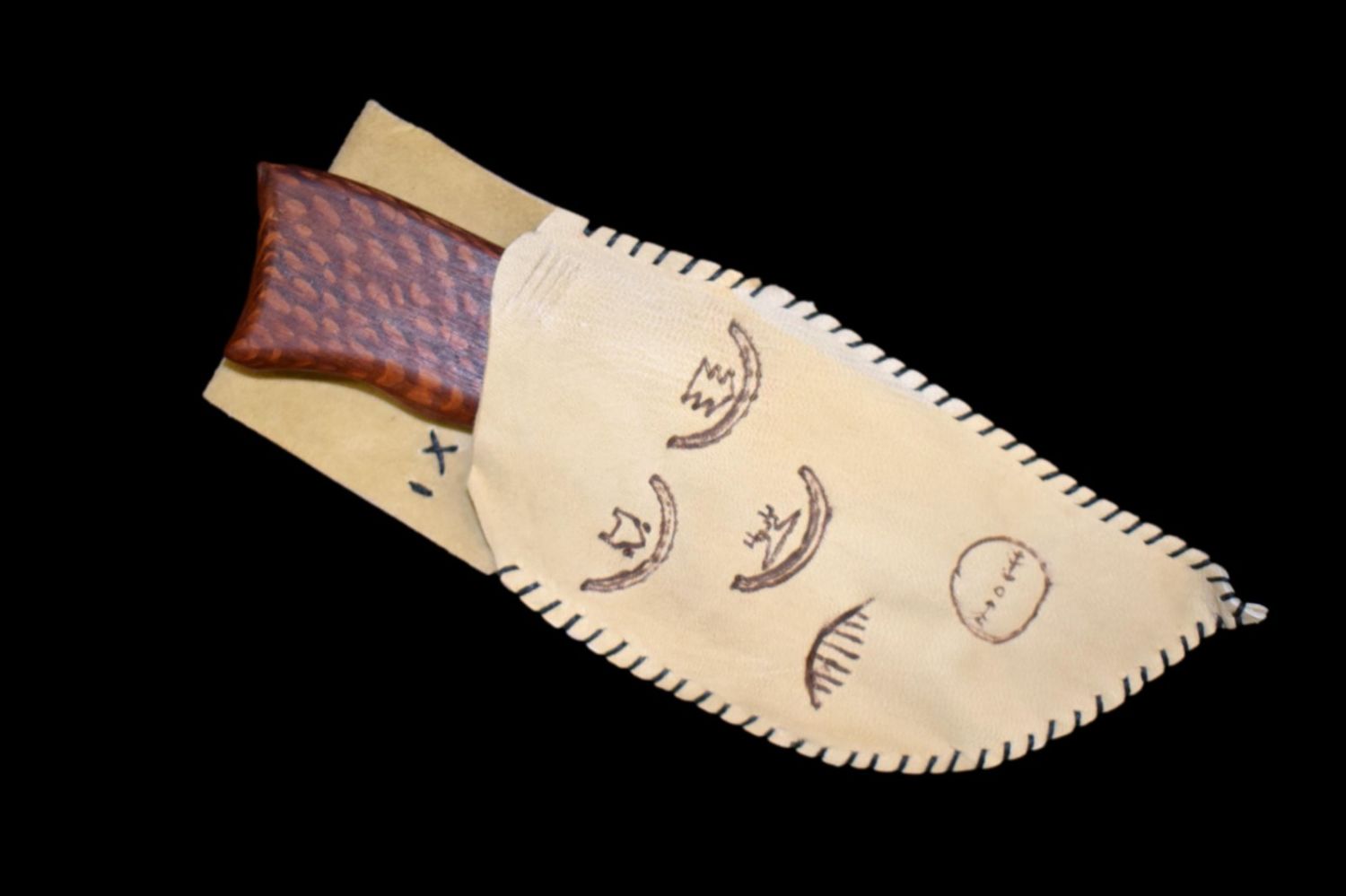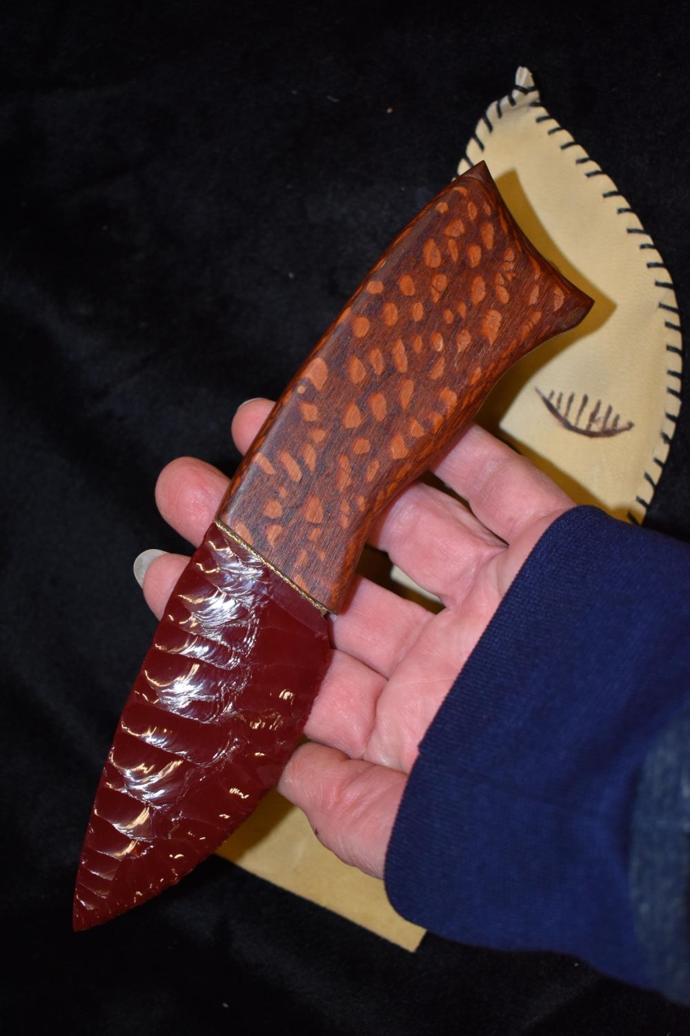 Hand Made Glass Modern Arrowhead with Wood Handle and Hand Made Leather Sheath