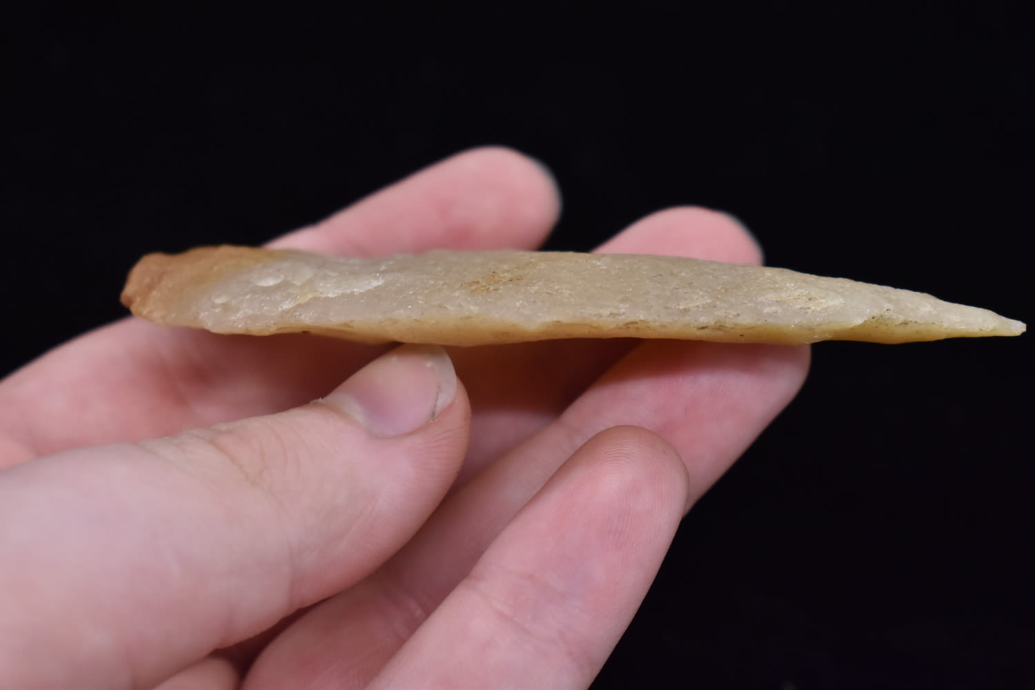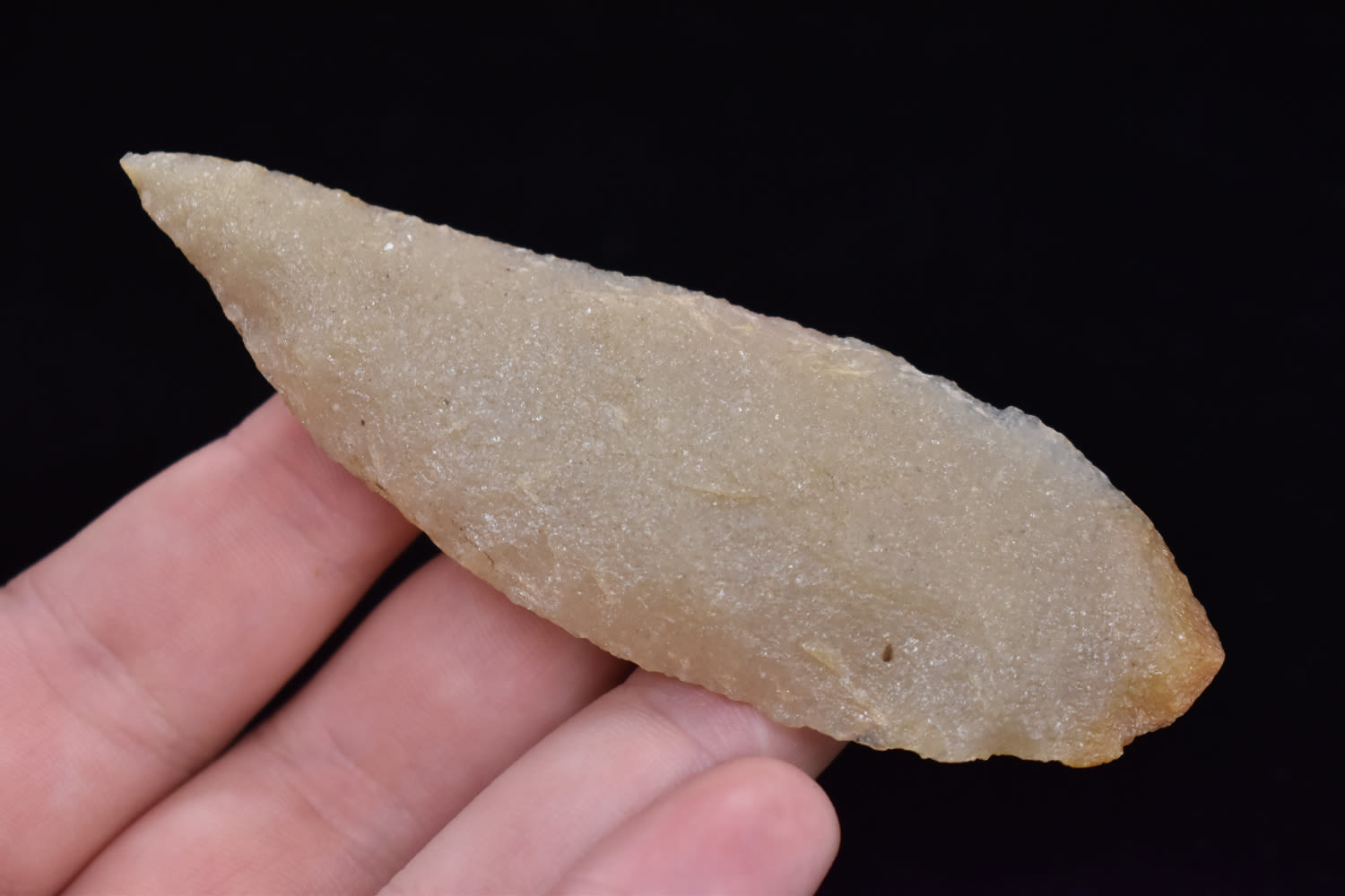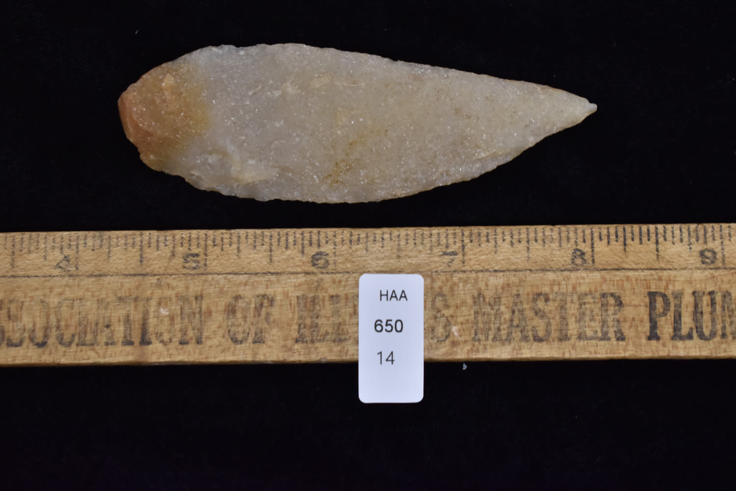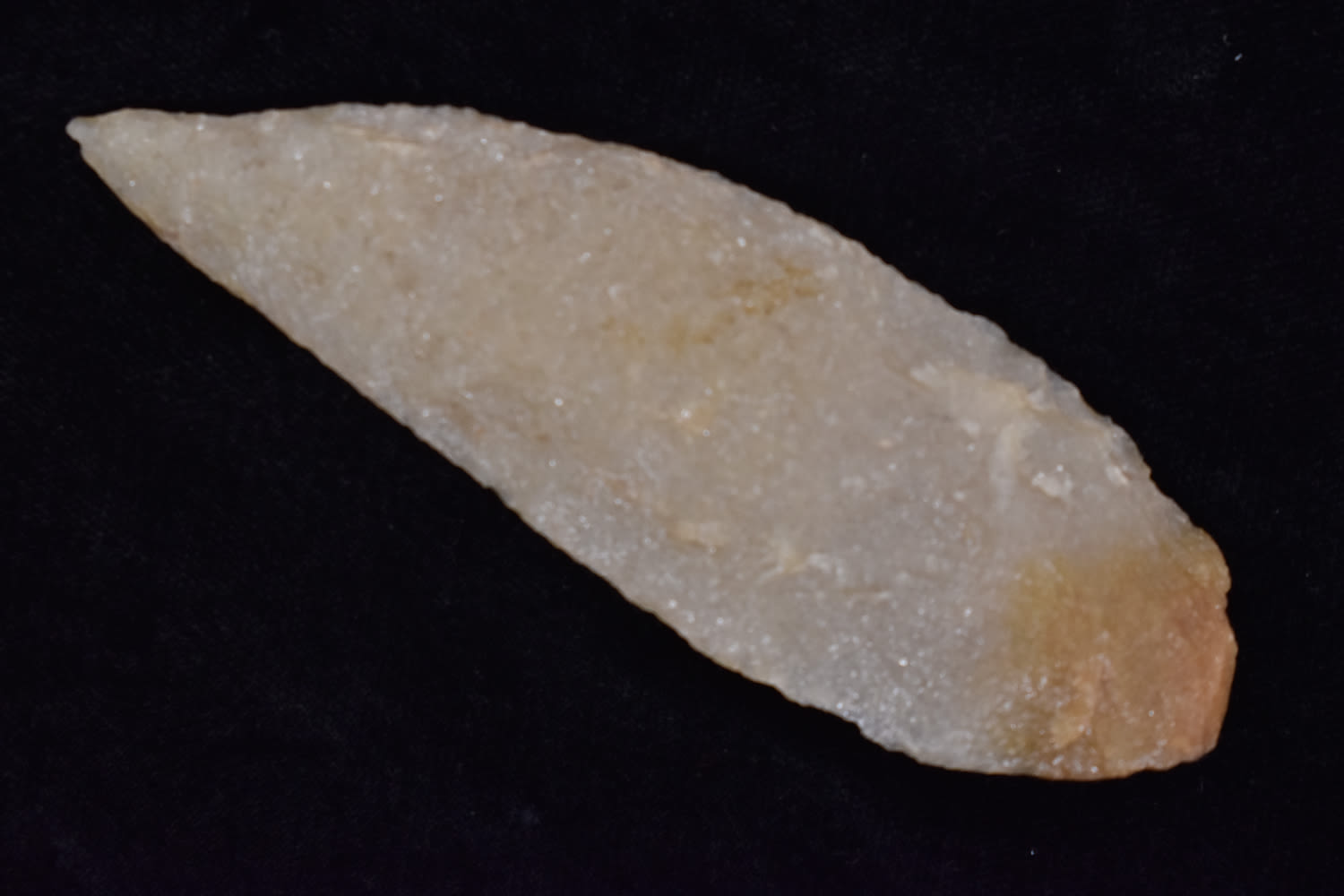 4 3/4″ Hixton Quartz Archaic knife, Ex Robert Hruska Collection, Milwaukee, Wisconsin