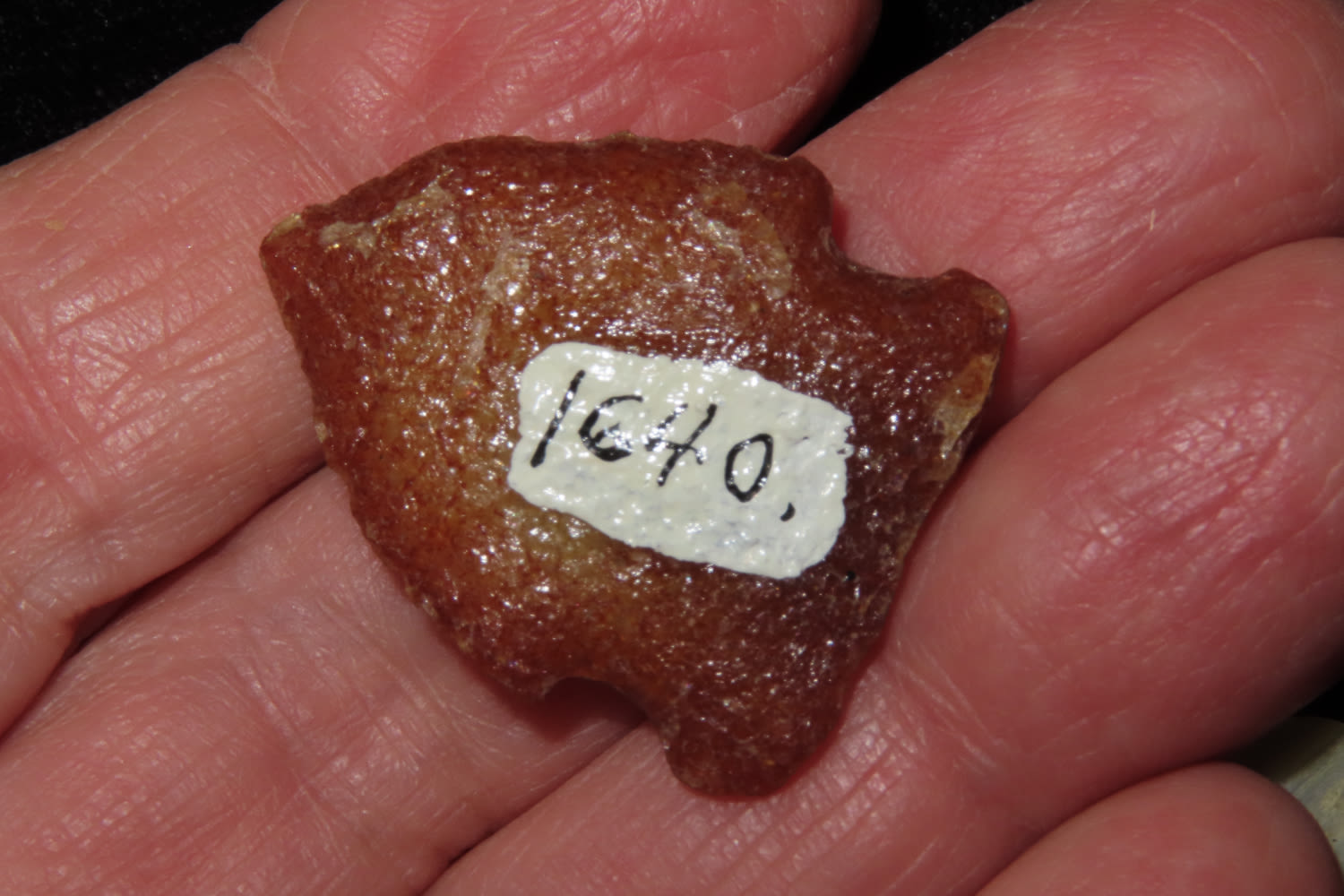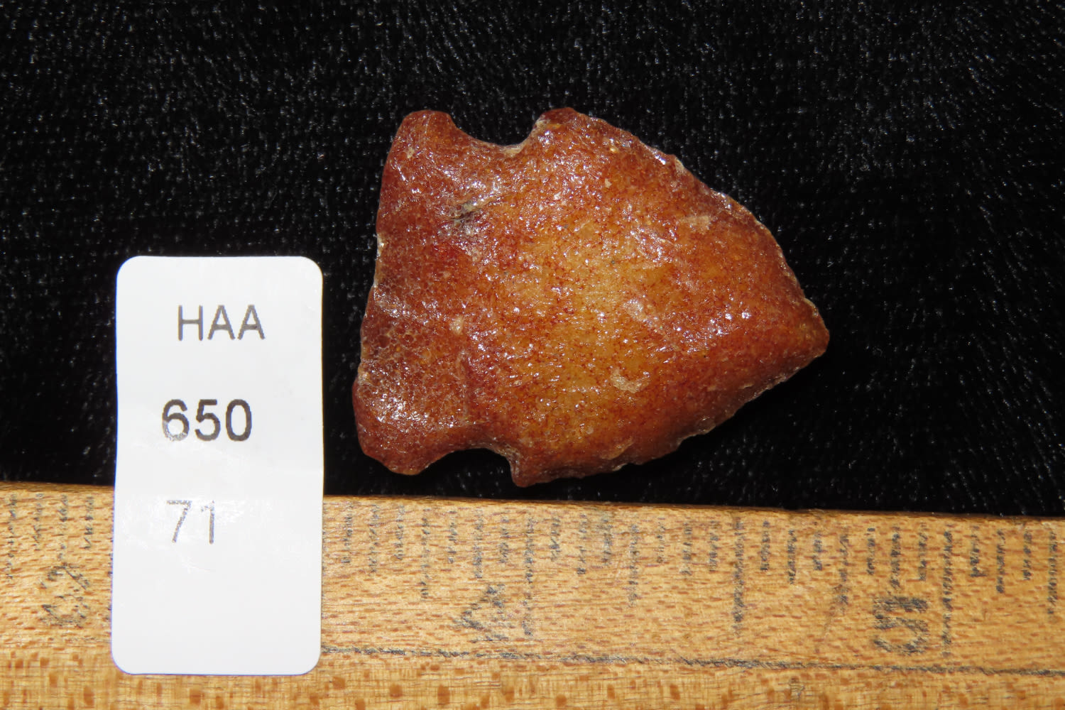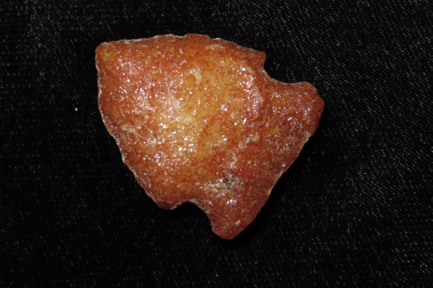 1″ Side Notch of Orange colored Hixton Quartz personal find from Menominiee Co Michigan, Ex Robert Hruska Collection, Milwaukee, Wisconsin