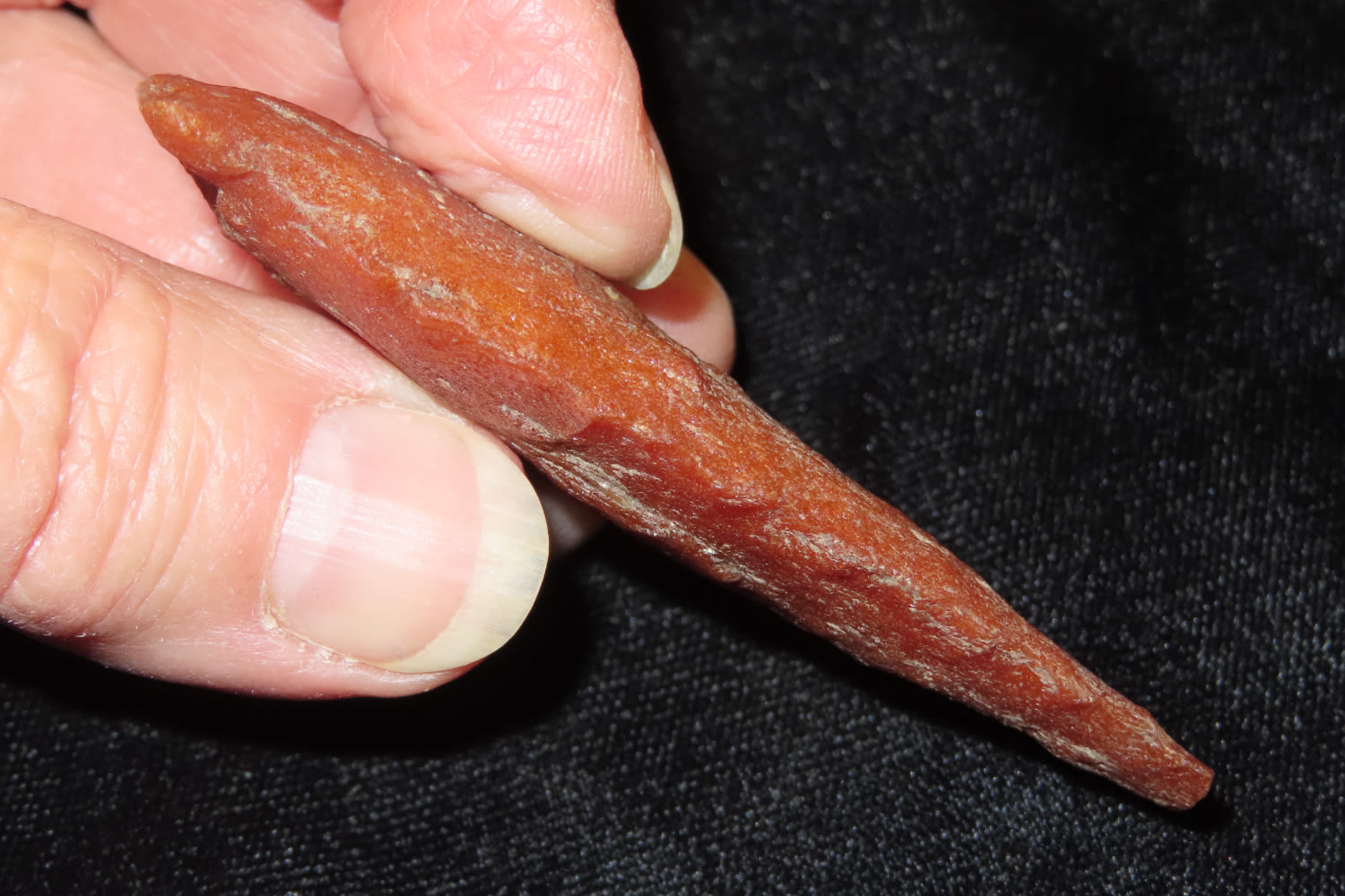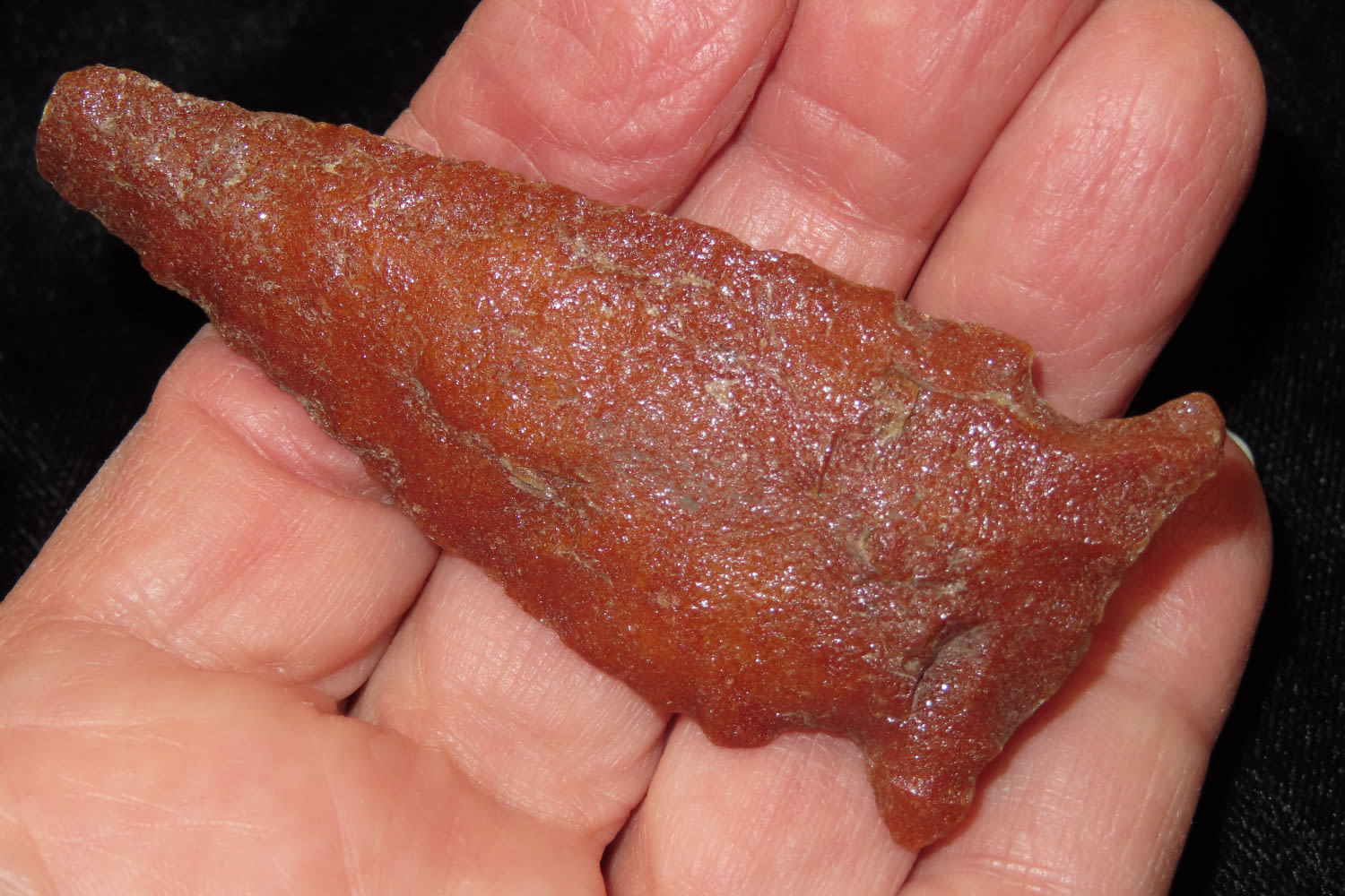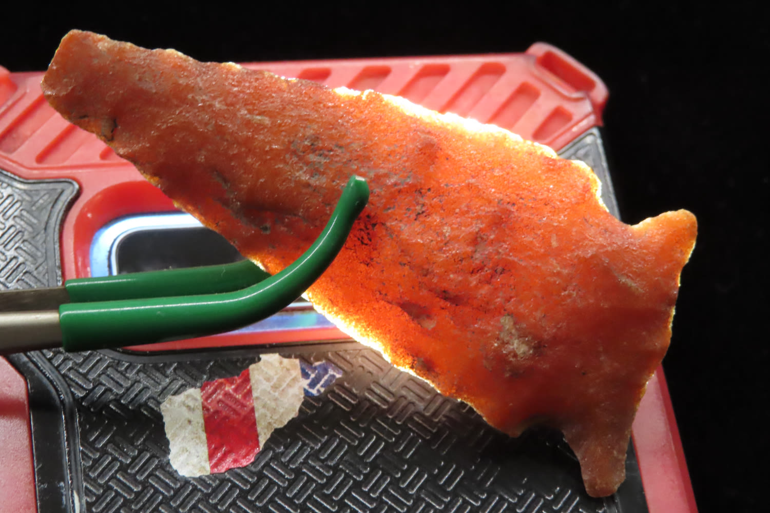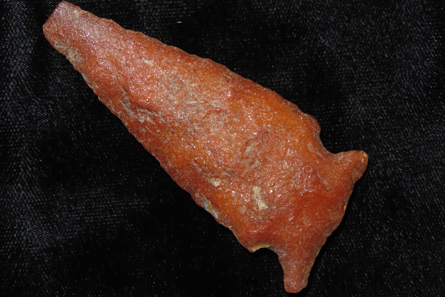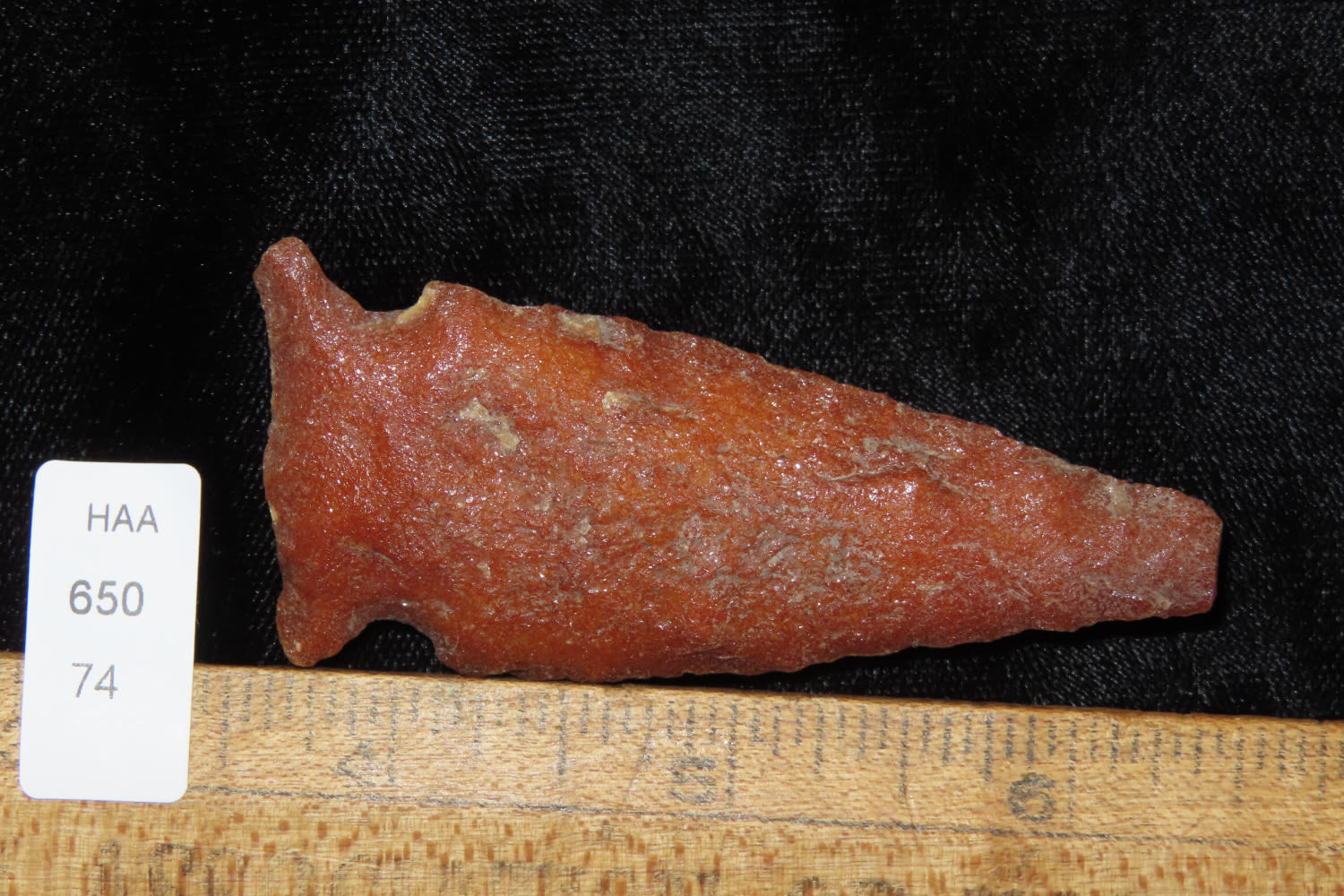 3 3/4″ Orange Hixton Quartz Side Notch, Ex Robert Hruska Collection, Milwaukee, Wisconsin