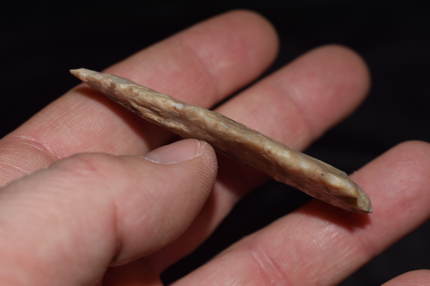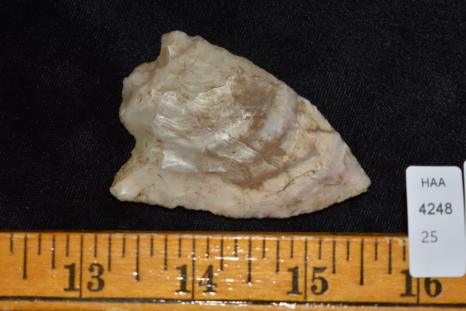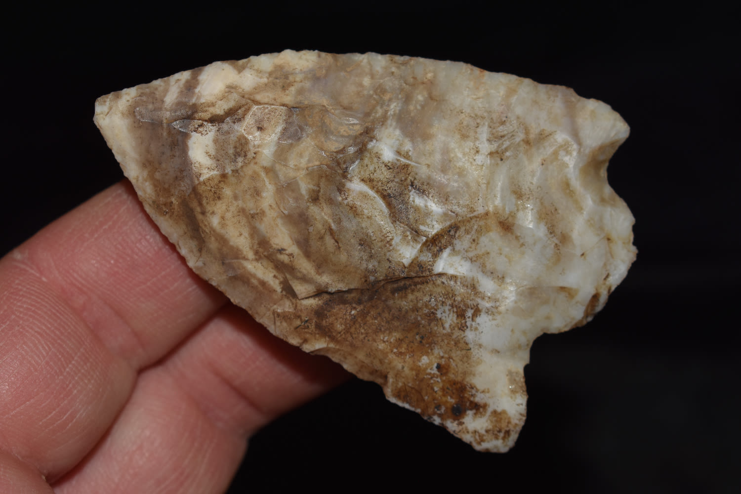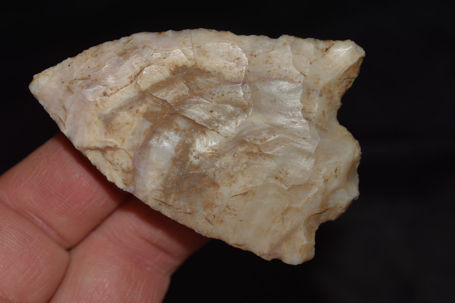 2 5/8″ Smetley made from a buetifull Mozarkite flint found by Ben Bauer in Polk Co, Missouri.