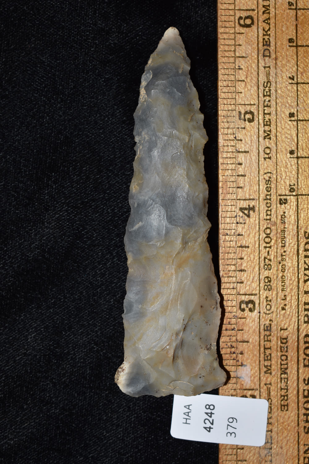 3 7/8″Authentic Indian Arrowhead found by Ben Bauer in Polk Co, Missouri.