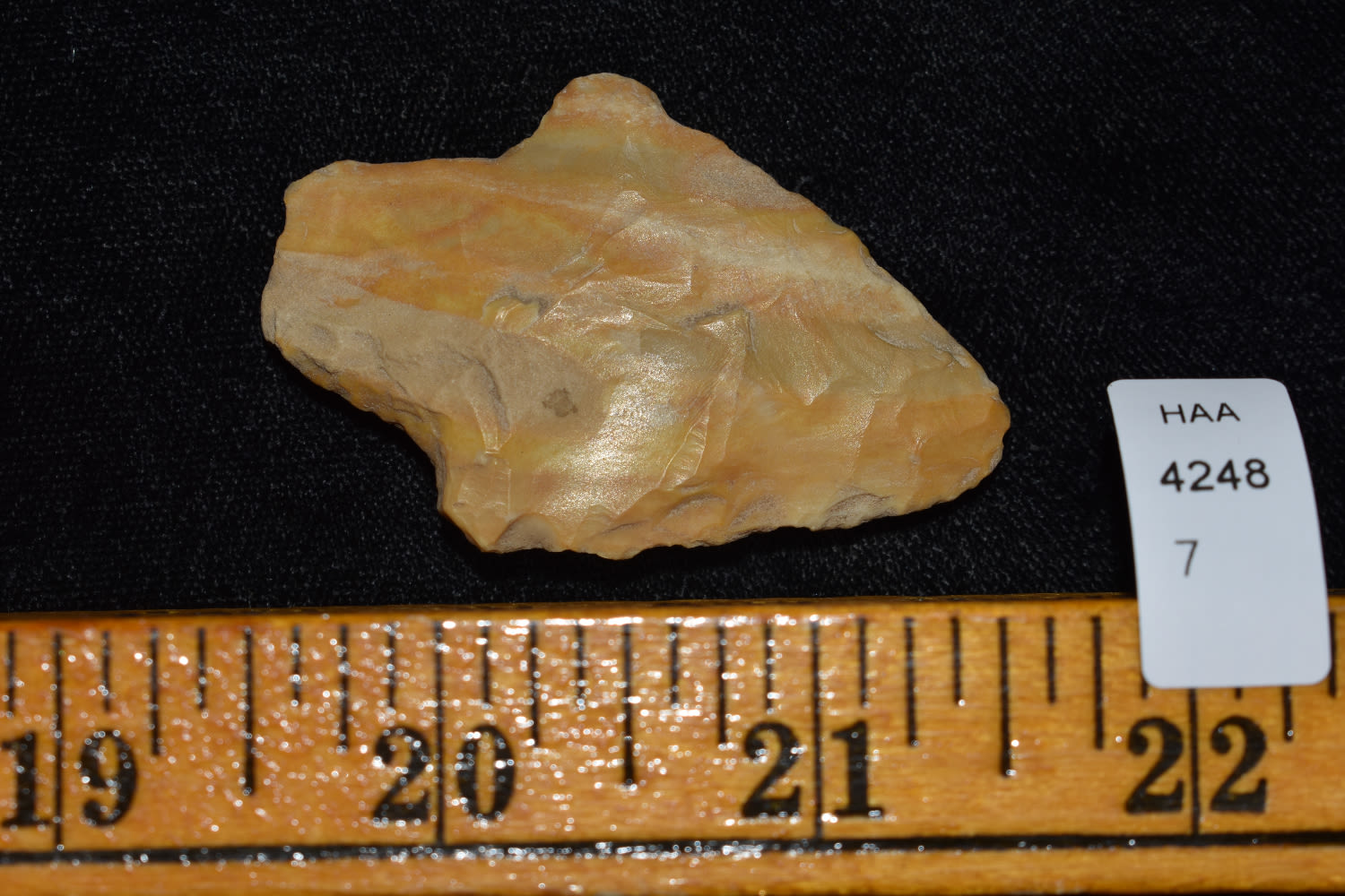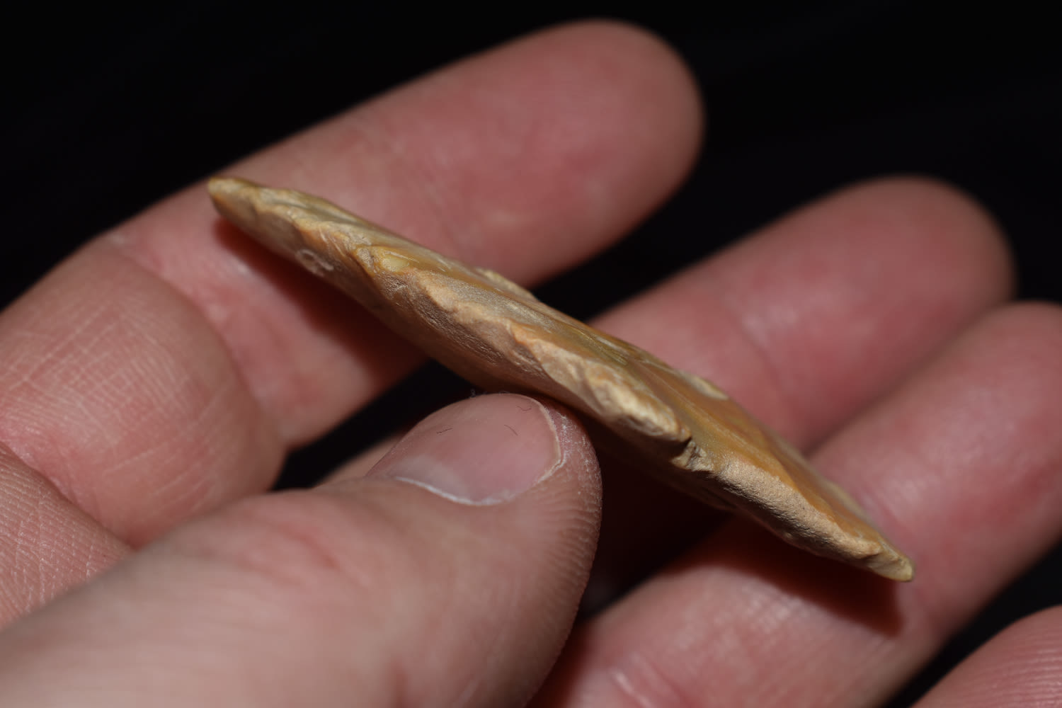 2 1/4″ Dickson made from river stained flint found by Ben Bauer in Polk Co, Missouri.