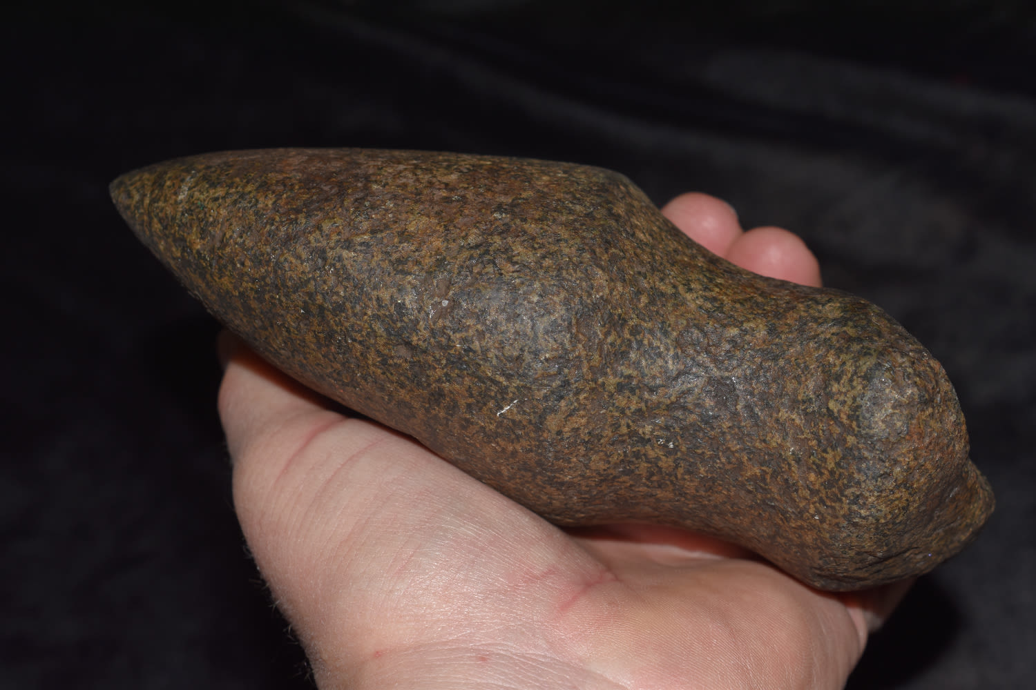 6 1/2″ Full Grooved Axe has good color shows good use ware on the bit and loaded with patina found in Adams Co, Illinois.