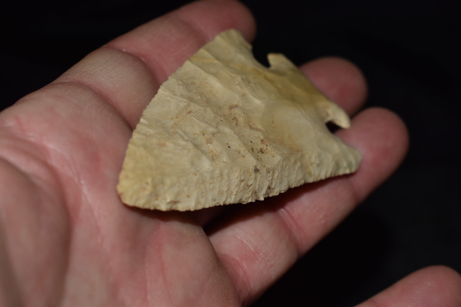 3 1/4″ Hardin an absolute stellar piece with no brainer deposits on both sides and heavily beveled was found by Robert Williams in Madison Co, Illinois.
