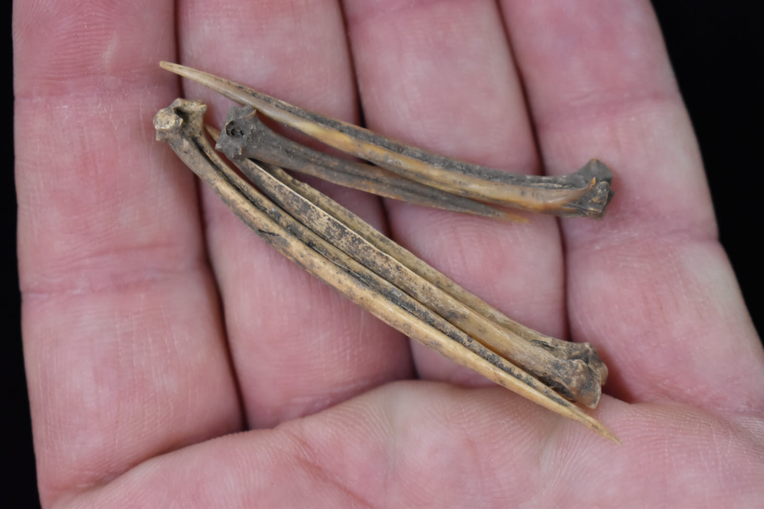 LOT OF 4 FISH BONE AWLS FOUND IN KENTUCKY BY LEROY WILLIAMS, ARROWHEAD INDIAN ARTIFACT