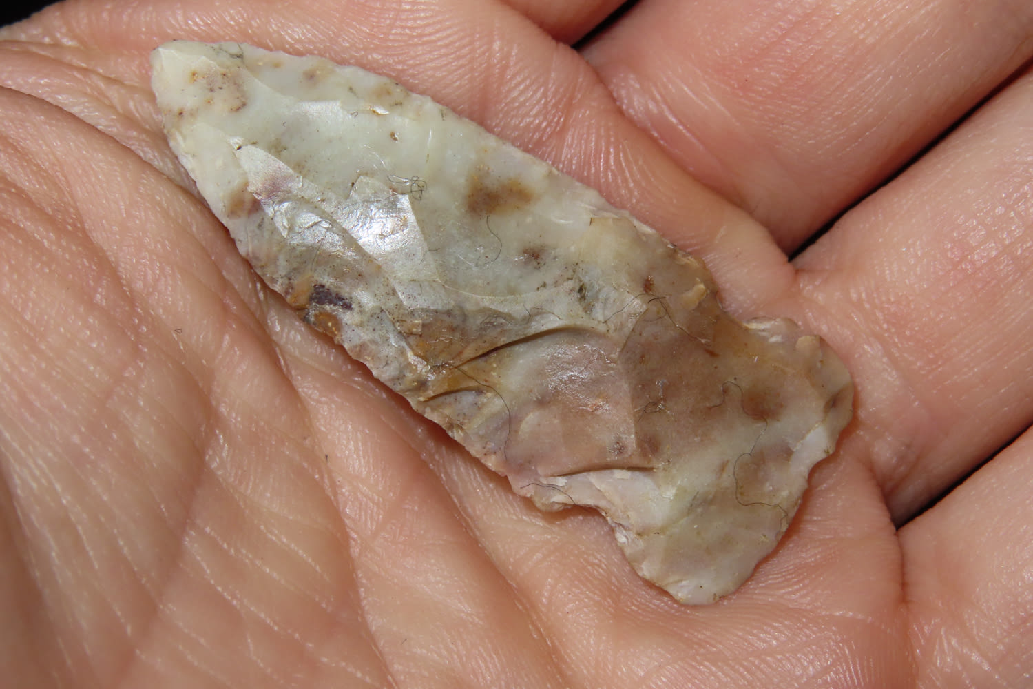 1 3/4″ COLORFUL BIG SANDY FOUND IN KENTUCKY BY LEROY WILLIAMS, ARROWHEAD INDIAN ARTIFACT