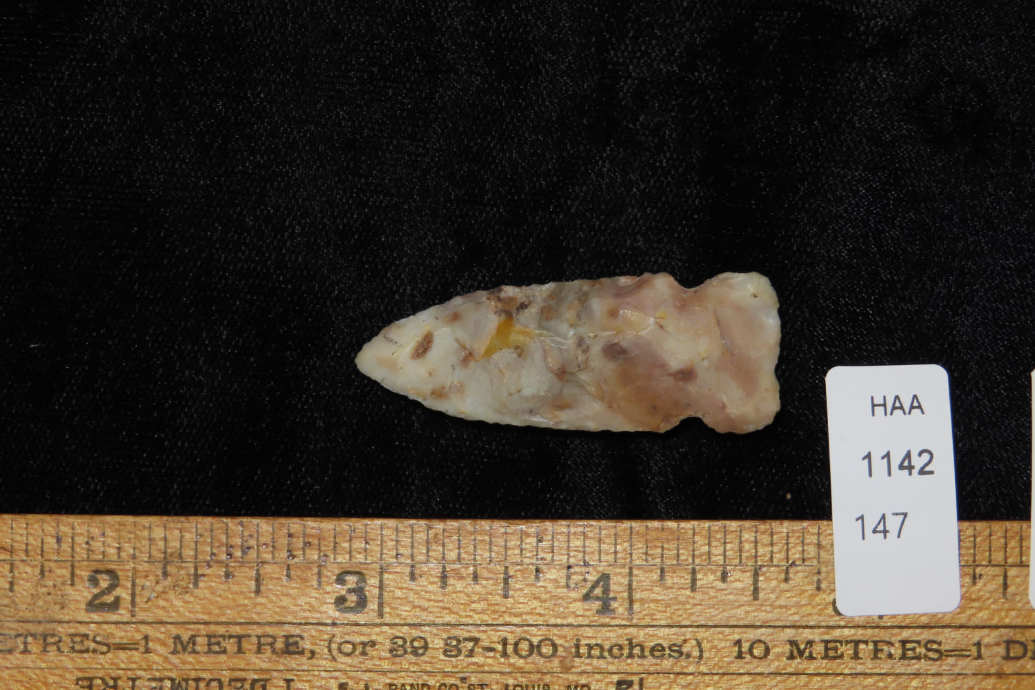 1 3/4" COLORFUL BIG SANDY FOUND IN KENTUCKY BY LEROY WILLIAMS, ARROWHEAD INDIAN ARTIFACT