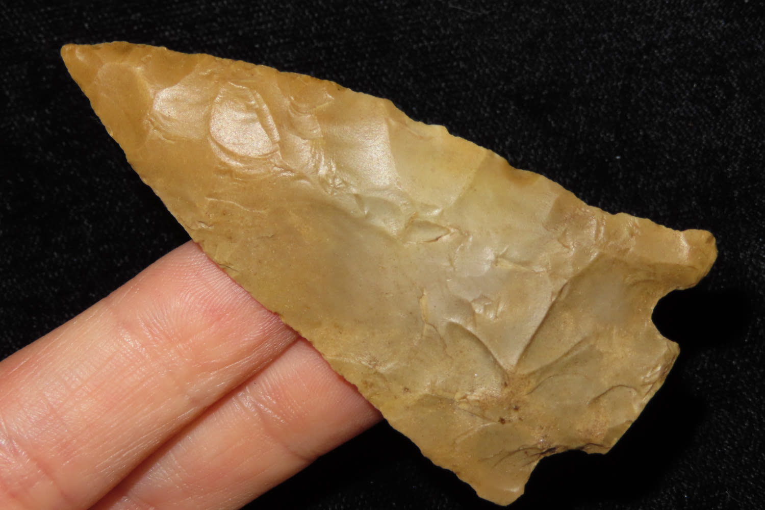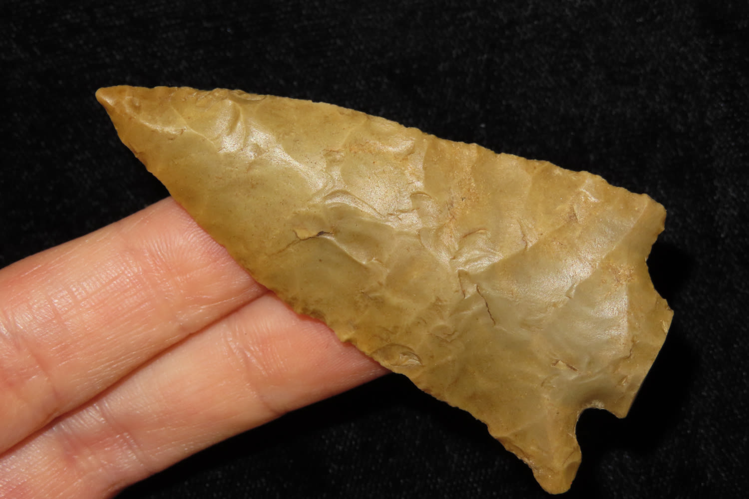 2 3/4″ SNAPPED BASE KIRK FOUND IN KENTUCKY BY LEROY WILLIAMS, ARROWHEAD INDIAN ARTIFACT