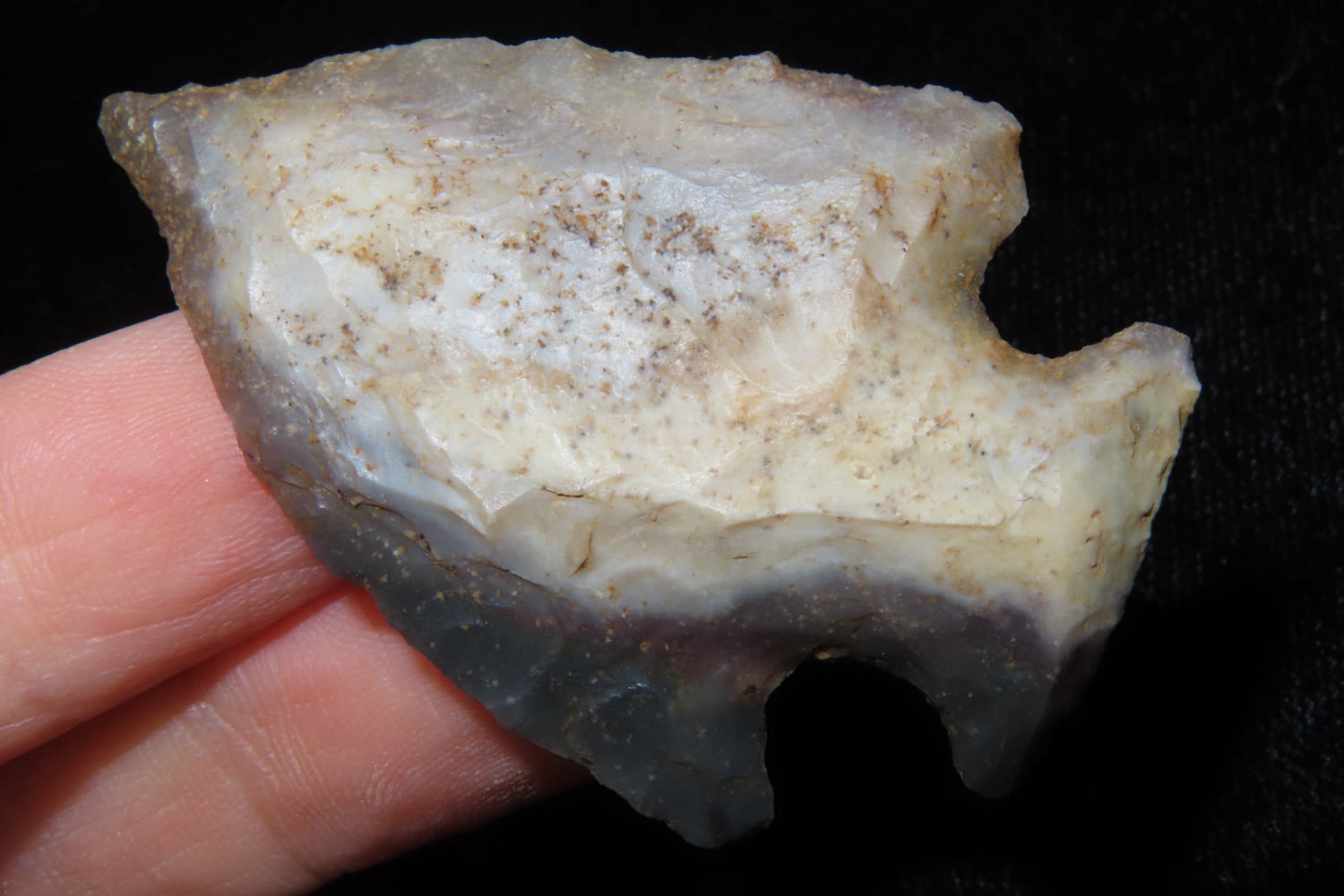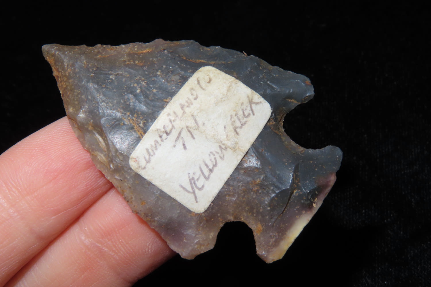 1 7/8″ PHENOMENAL CORNERNOTCH FOUND IN CUMBERLAND COUNTY TENNESSEE ALONG YELLOW CREEK, ARROWHEAD, INDIAN ARTIFACT