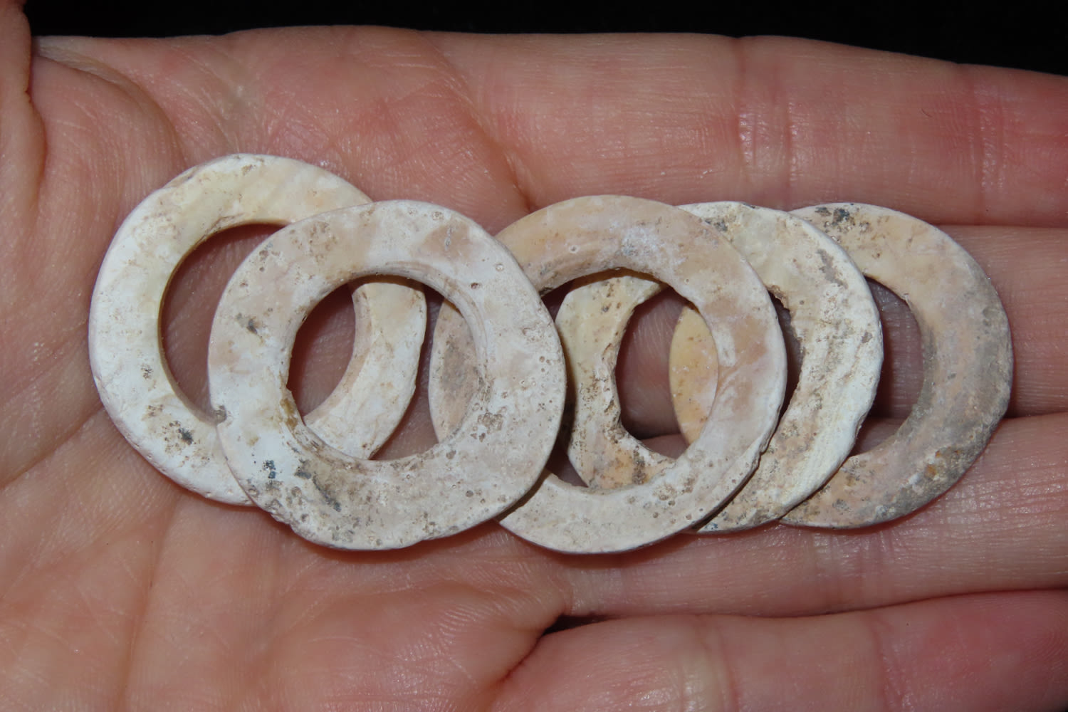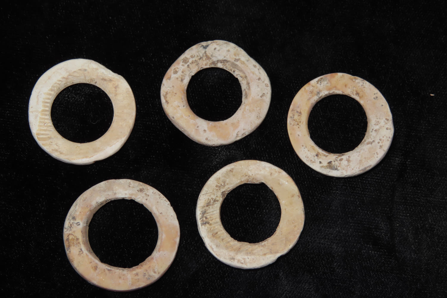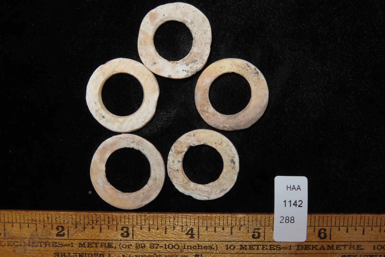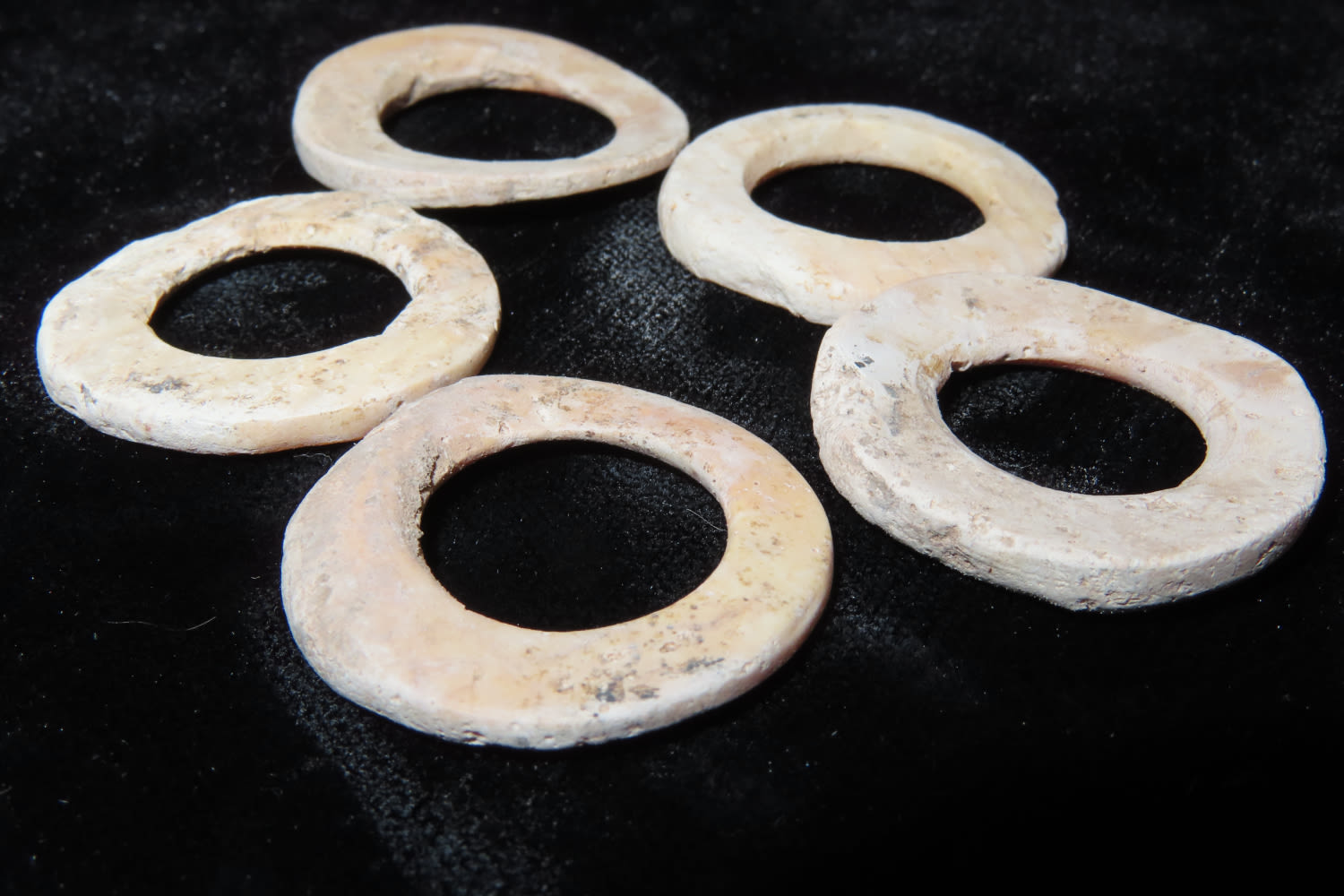 LOT OF 5 LARGE PRE-COLUMBIAN SHELL DISC BEADS FROM MEXICO