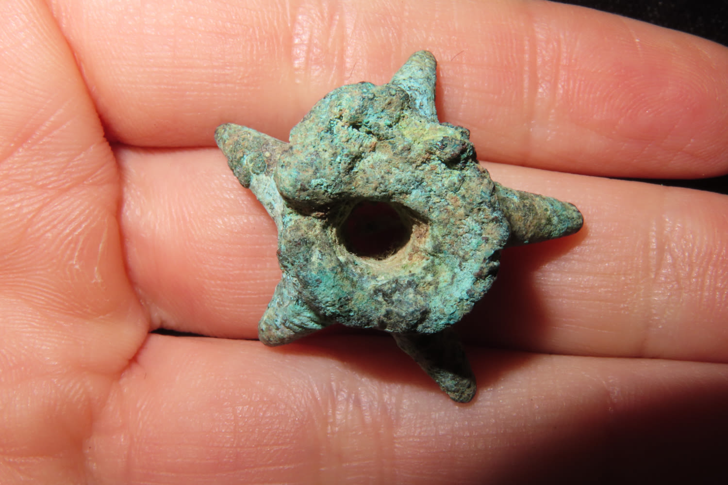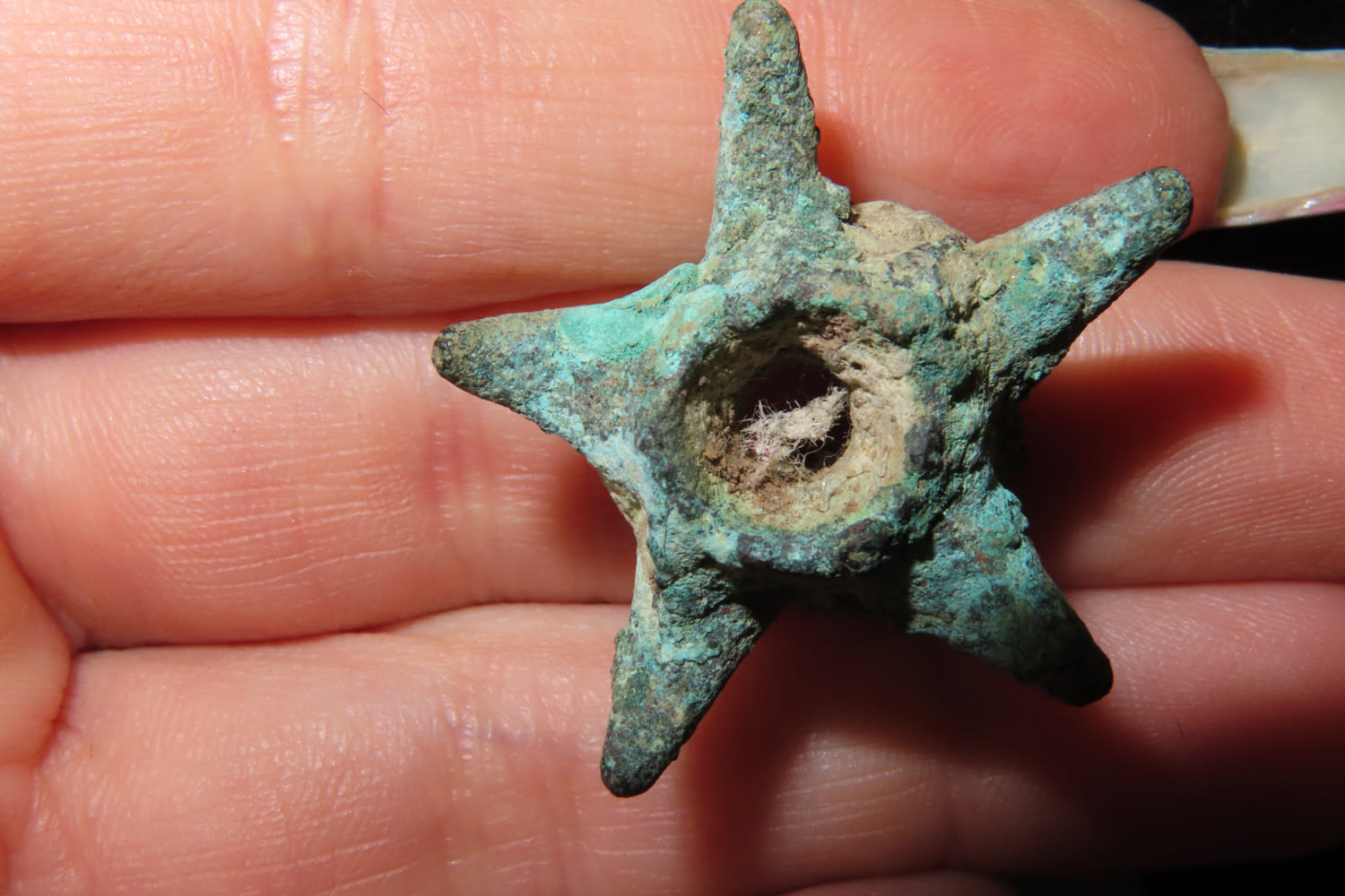 COPPER MACE EFFIGY BEAD, PRE-COLUMBIAN MOCHE / INCA FROM MEXICO