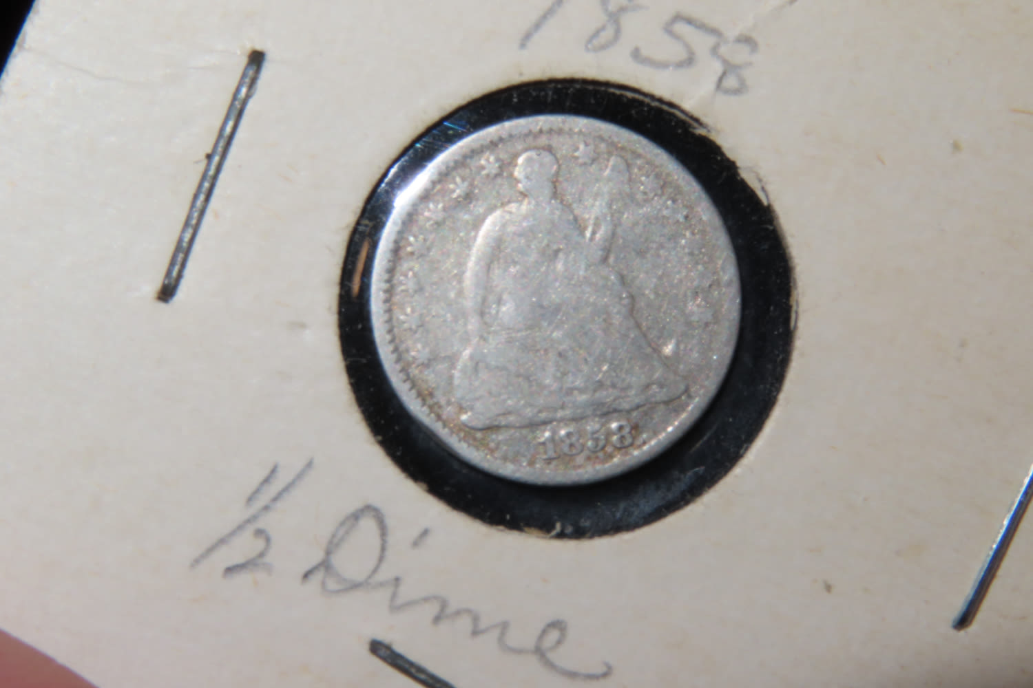 1858 HALF DIME, SEATED LIBERTY EARLY US FRACTIONAL COIN