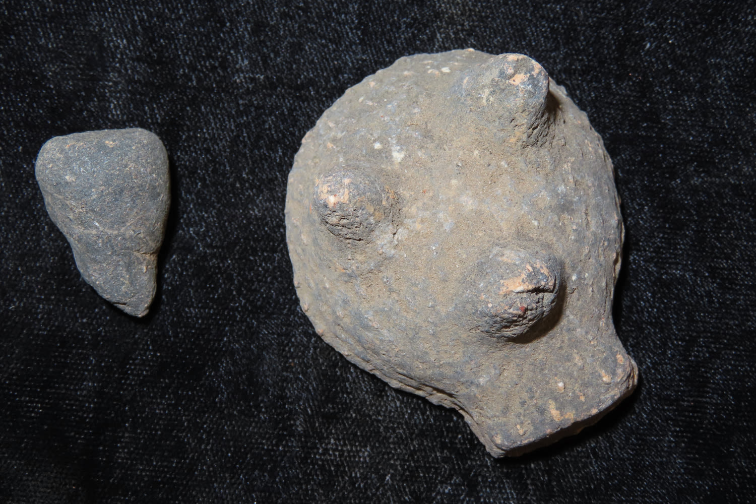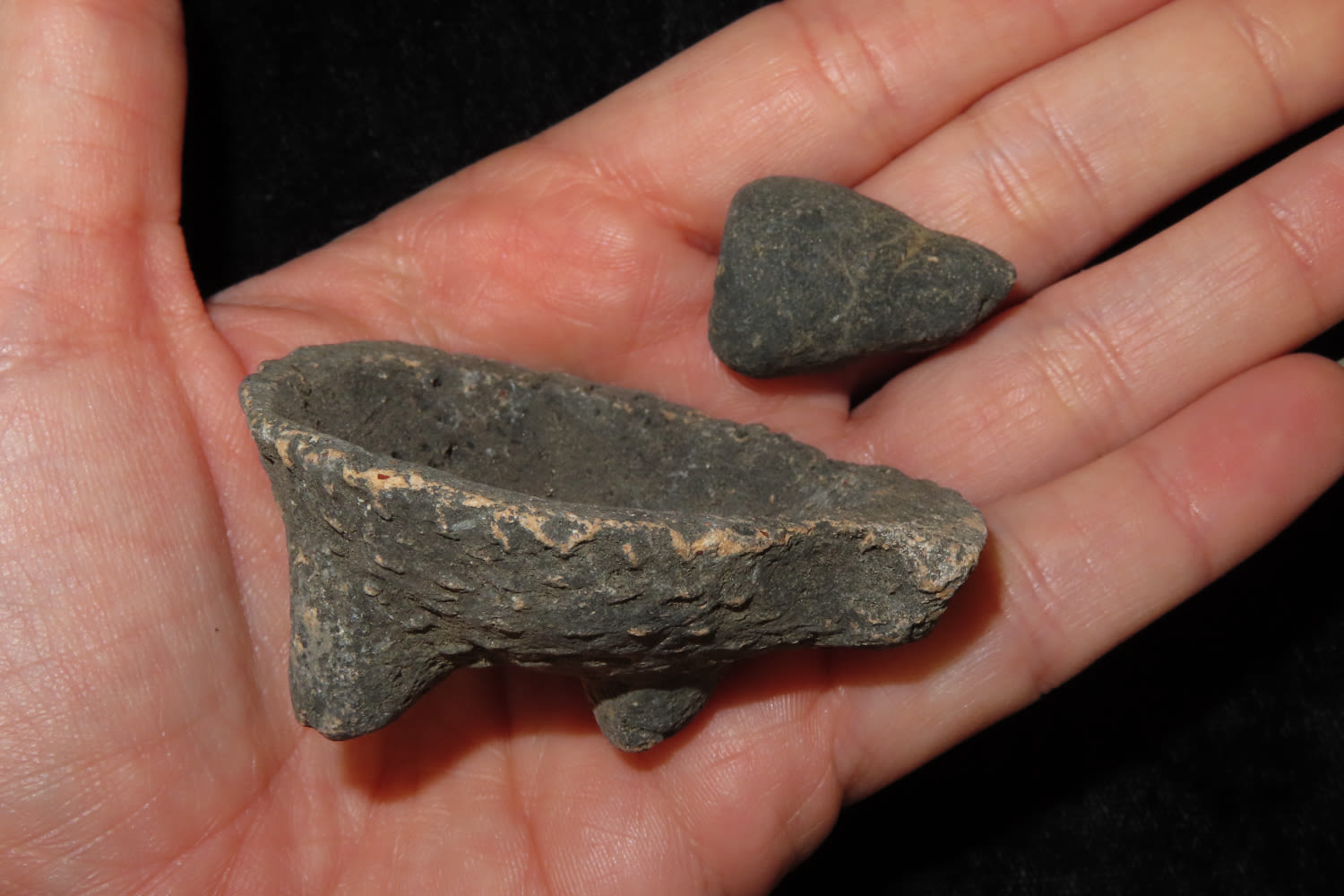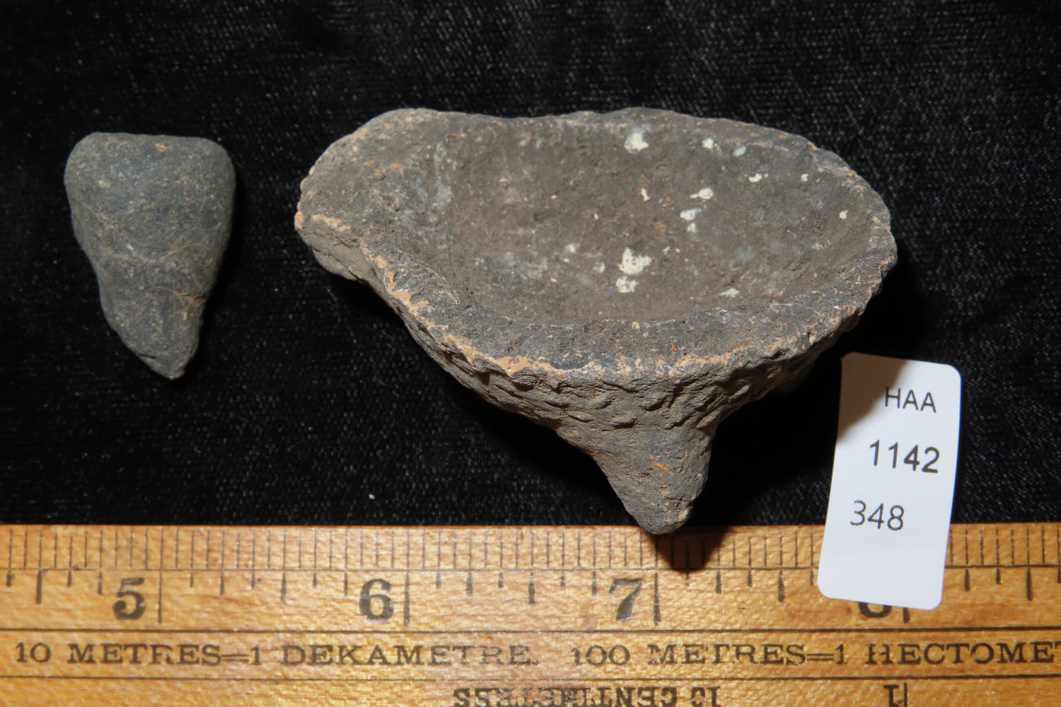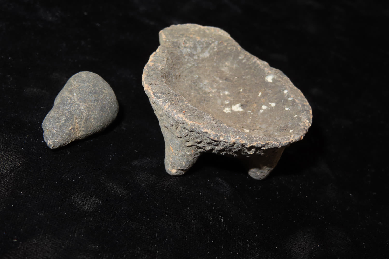 MINIATURE PRE-COLUMBIAN TRIPOD MORTAR & PESTLE SET, TOURIST TRADE ERA