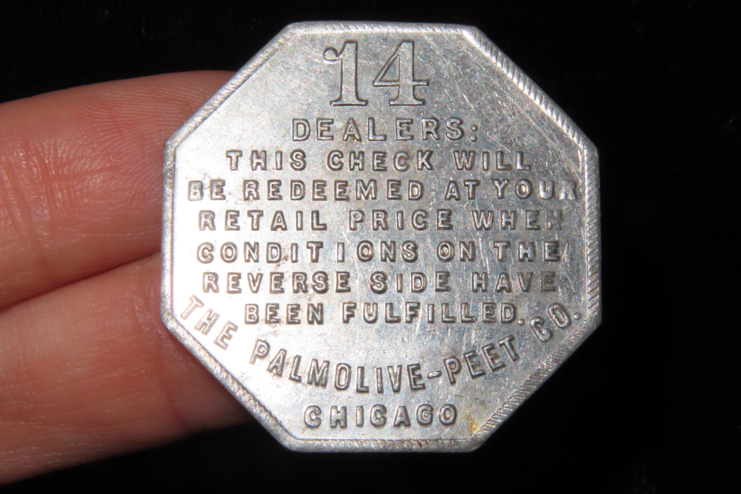 Vintage Palmolive-Peet Co, Chicago, Illlinois Token for Free Laundry Soap Cakes